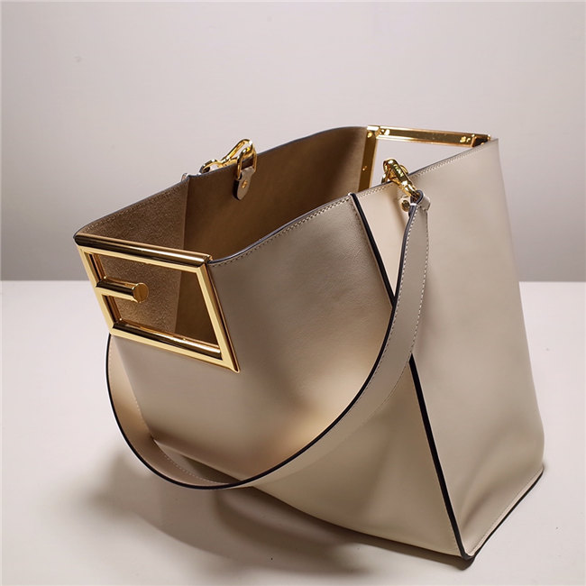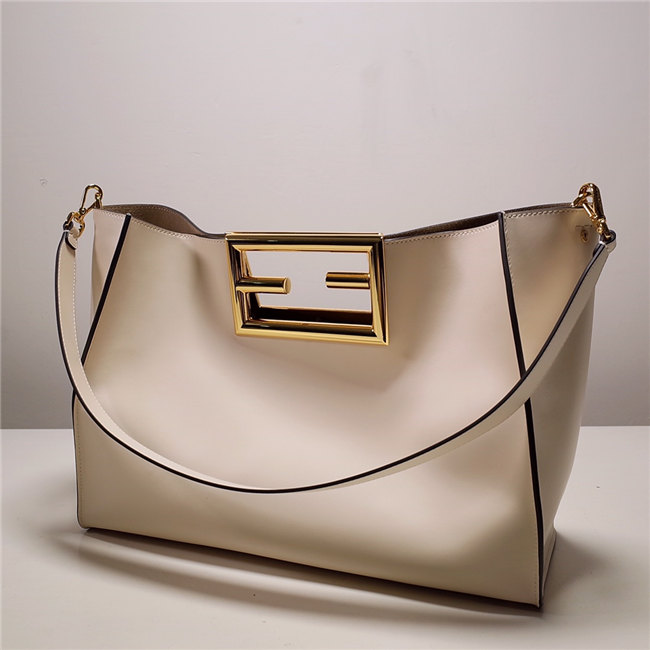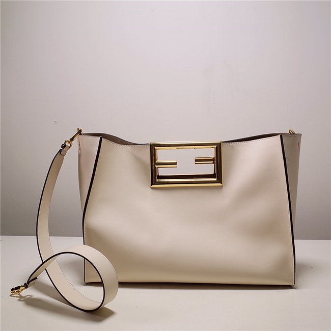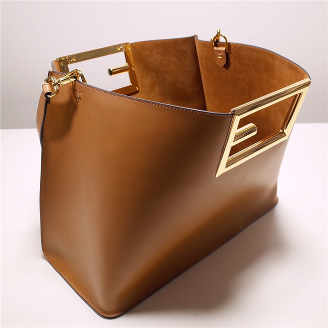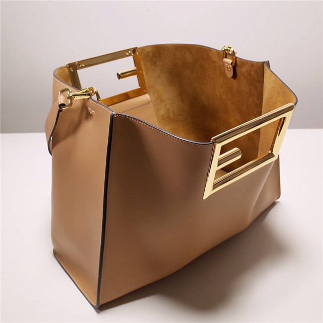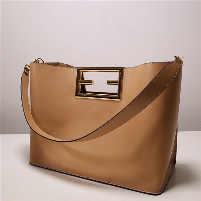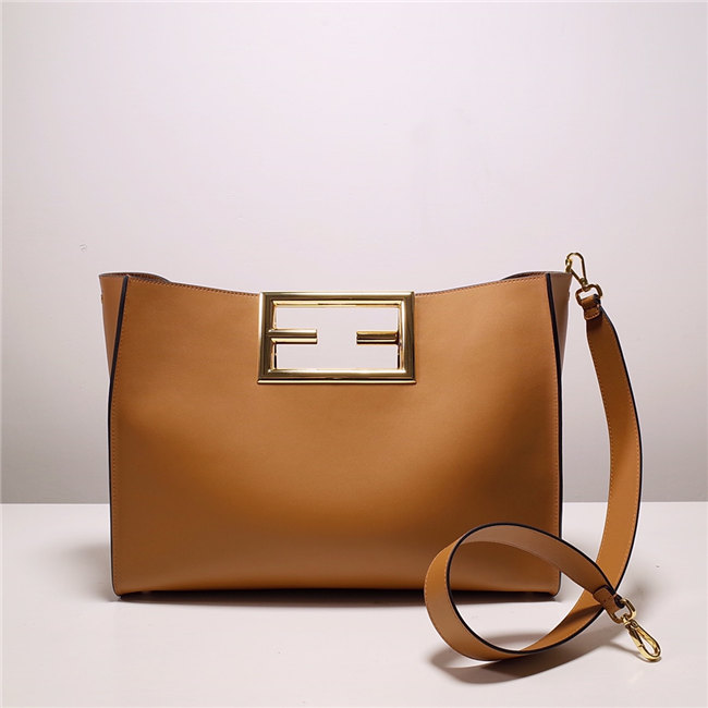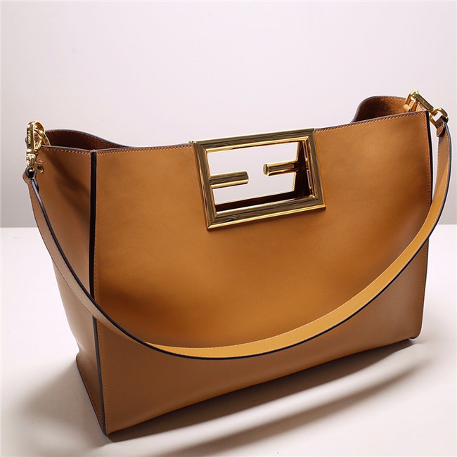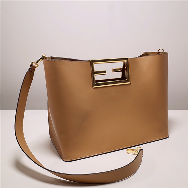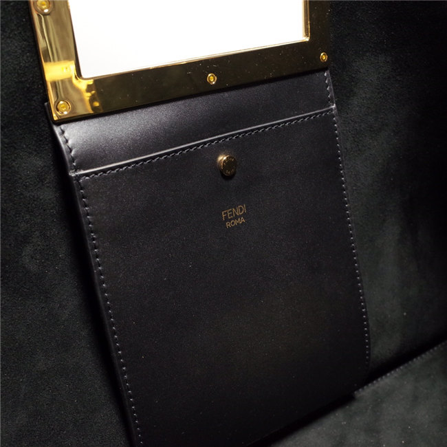 Medium Fendi Way bag made of Black-colored leather, with oversize FF logo metal handles.