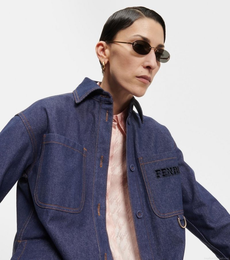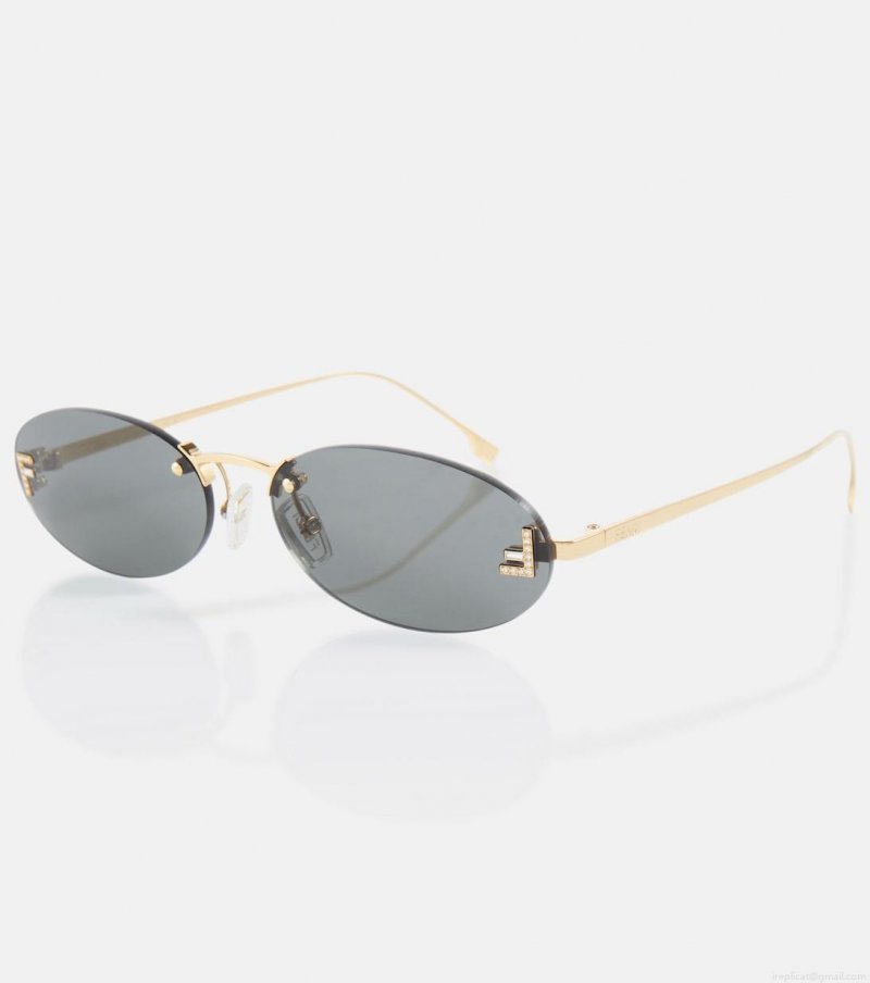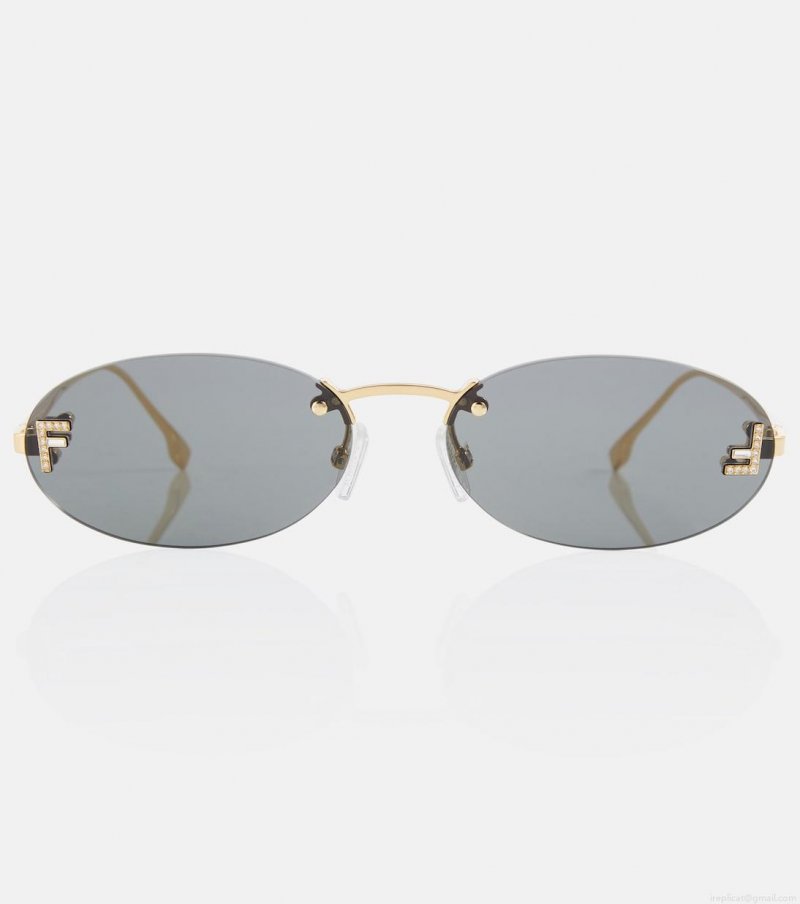 The Fendi First sunglasses from Fendi have a slim, oval shape. They're accented with crystal-embellished micro Fs at the temples.