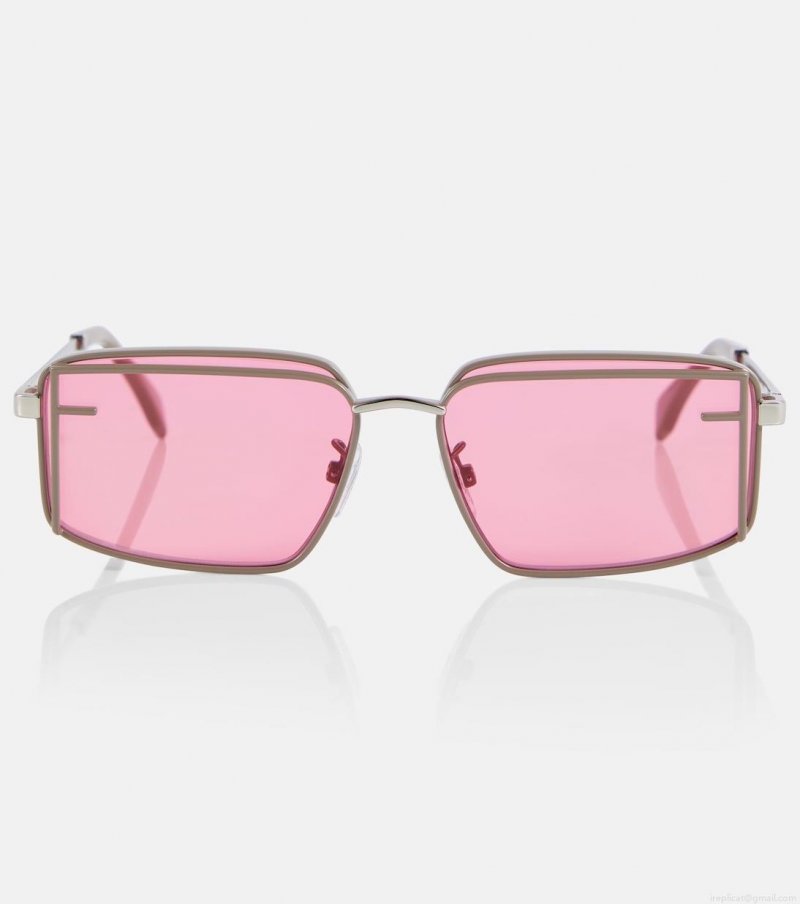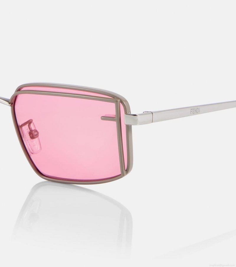 Bring a pop of color to your unique style with the Fendi First Sight sunglasses. The rectangular eyewear features palladium-effect metal temples and vibrant pink lenses framed with maxi-F motif for recognition.