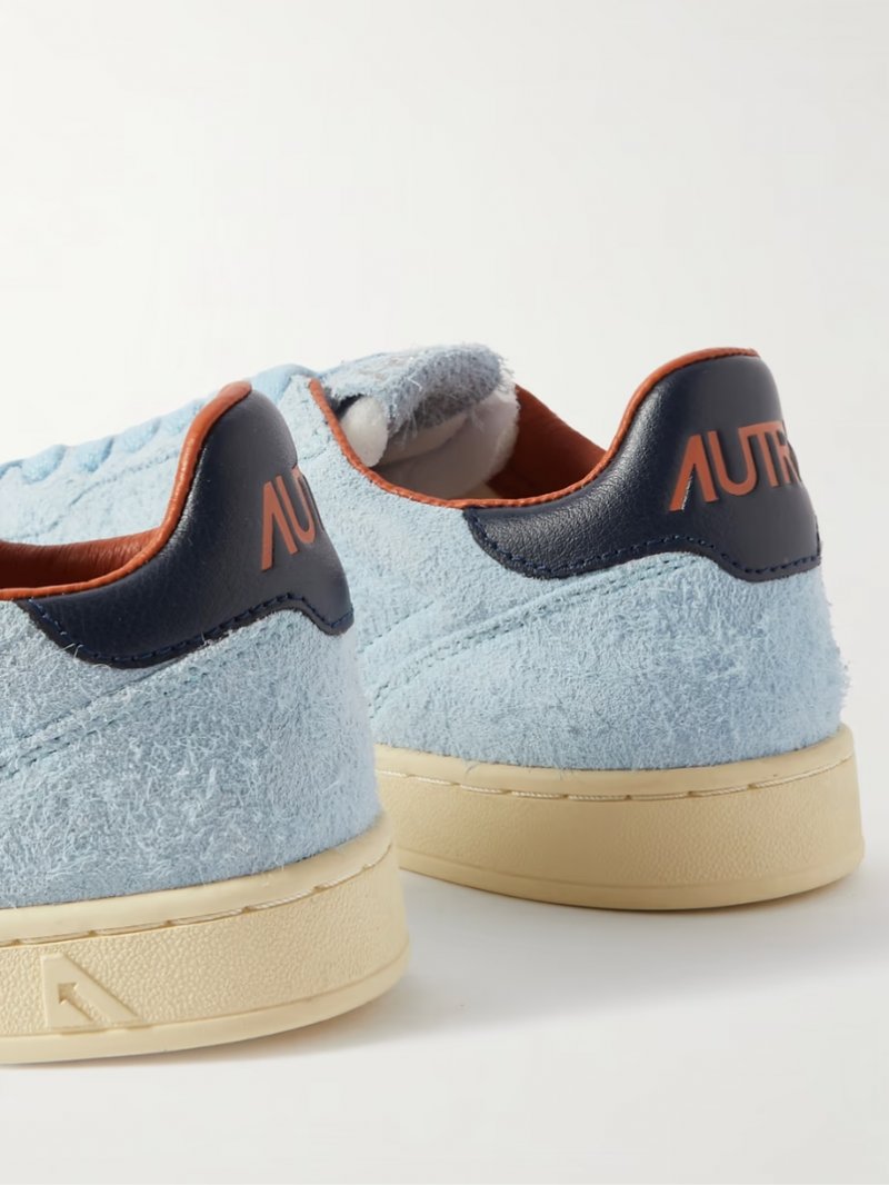- Black and orange leather, light-blue suede (Cow)