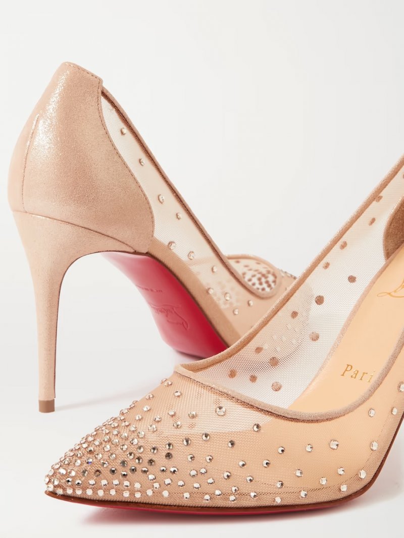 - Beige mesh and glittered-leather