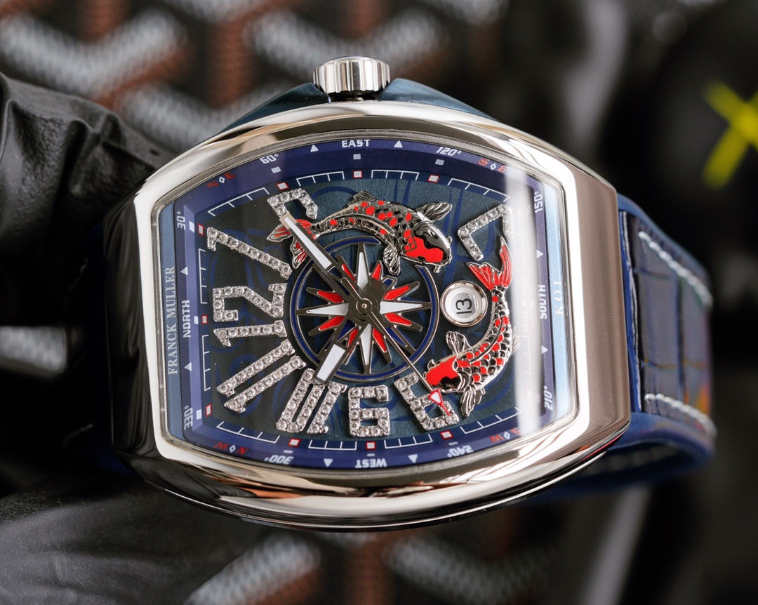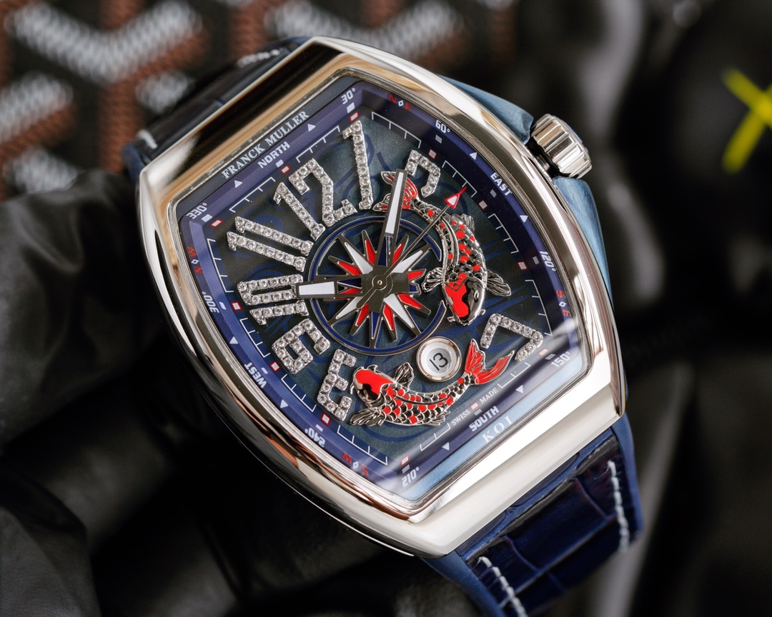 The franck Muller V45 SC DT watch is renowned for its unique design and exceptional craftsmanship. With dimensions of 54mm x 44mm, it showcases a bold and refined design style. Equipped with an automatic movement, the watch ensures precise and reliable timekeeping. The watch features hour, minute, and second functions, meeting daily usage needs. With a water resistance of 30 meters, the watch is suitable for daily activities involving water. The sapphire crystal glass dial offers excellent scratch resistance and clear time display. The folding clasp design provides convenience in wearing and adjusting the strap length, offering an enhanced wearing experience. The stainless steel case exhibits durability and a classic appearance. Paired with a leather strap, the watch is both classic and comfortable. The franck Muller V45 SC DT watch, with its unique design and exceptional quality, is an ideal choice for individuals pursuing fashion and personality.
