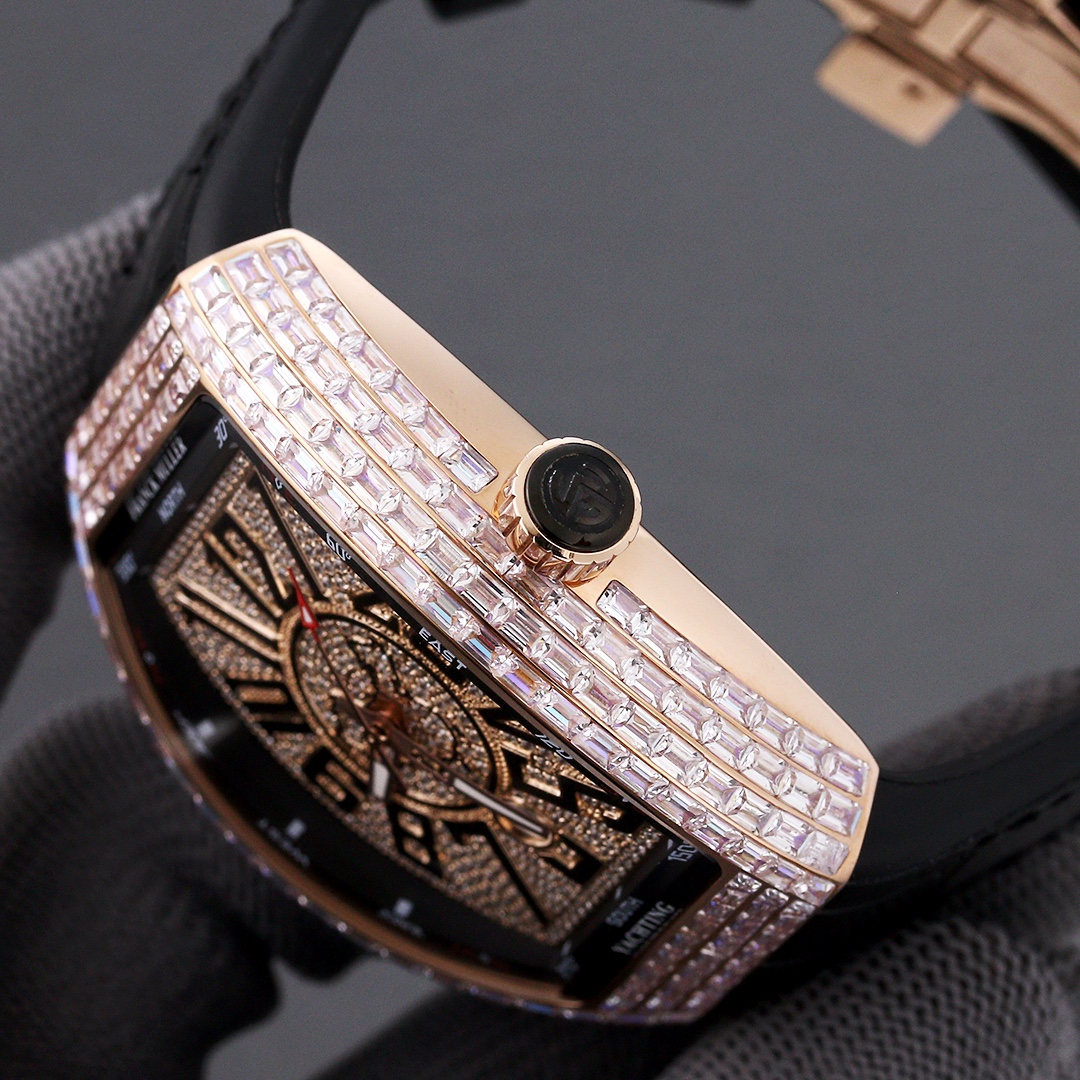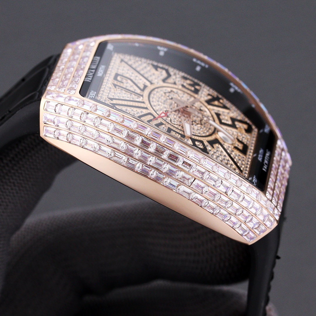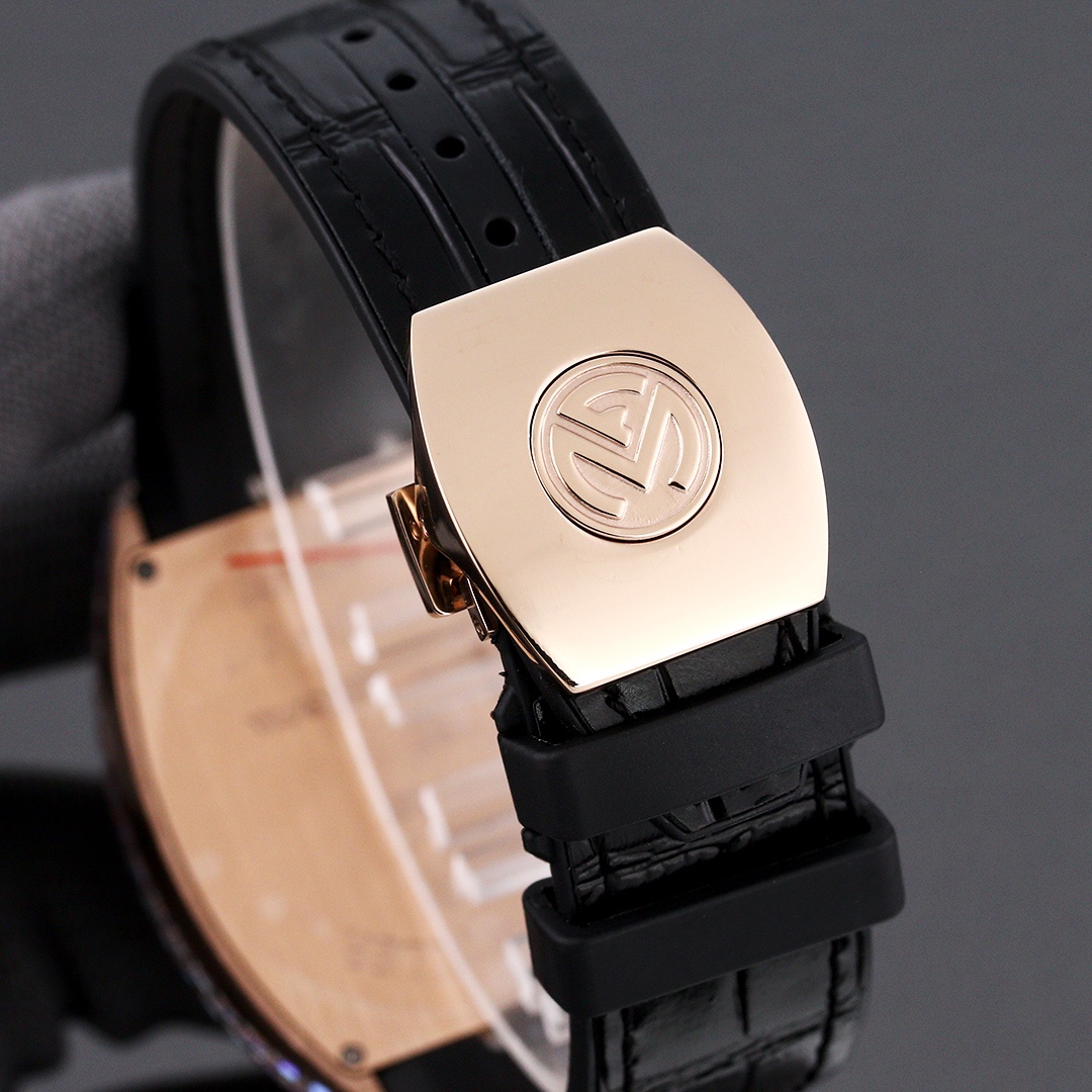 Thefranck muller V45 SC DT watch is renowned for its unique design and exceptional craftsmanship. With dimensions of 54mm x 42mm, it showcases a bold and refined design style. Equipped with an automatic movement, the watch ensures precise and reliable timekeeping. The watch features hour, minute, and second functions, meeting daily usage needs. With a water resistance of 30 meters, the watch is suitable for daily activities involving water. The sapphire crystal glass dial offers excellent scratch resistance and clear time display. The folding clasp design provides convenience in wearing and adjusting the strap length, offering an enhanced wearing experience. The stainless steel case exhibits durability and a classic appearance. Paired with a leather strap, the watch is both classic and comfortable. Thefranck muller V45 SC DT watch, with its unique design and exceptional quality, is an ideal choice for individuals pursuing fashion and personality.