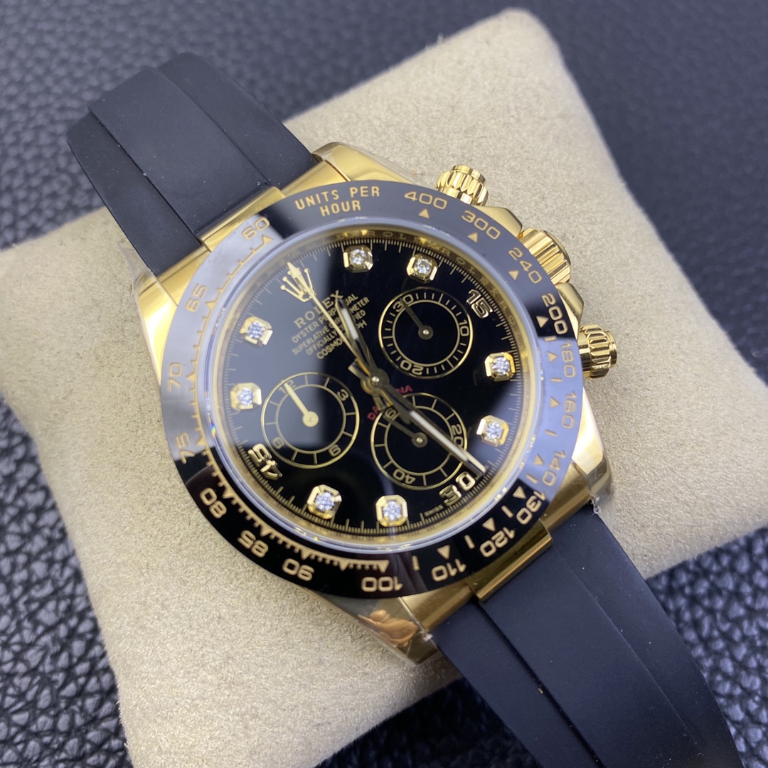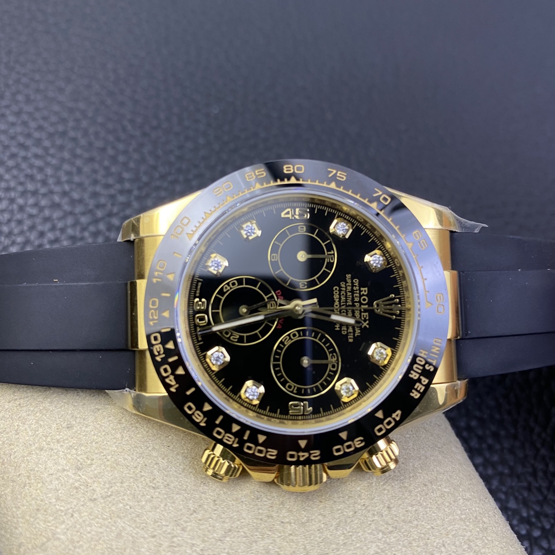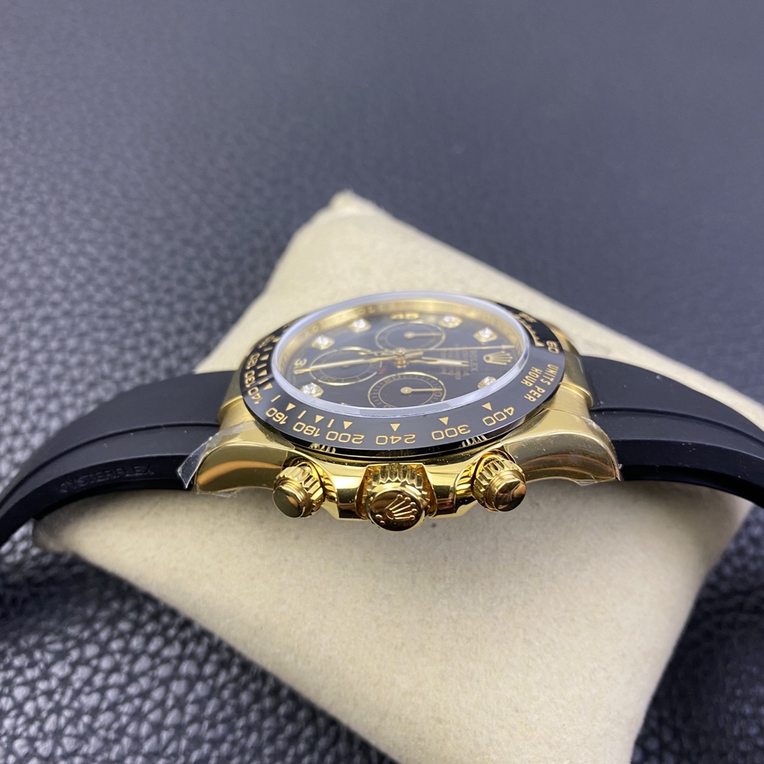 This Rolex Daytona series wristwatch showcases a sense of stability and fashion with its 40mm x 12.6mm size and classic design. Equipped with a Swiss ETA4130 automatic mechanical movement, it ensures accurate and reliable time display. The watch features hour, minute, and second functions, as well as luminescent hands and markers for clear visibility even in the dark. The sapphire crystal glass protects the dial and provides a clear view. The folding clasp design makes it convenient to wear and adjust the bracelet length, adding to the comfort of wearing. The 904L stainless steel case showcases durability and high-quality craftsmanship. Equipped with a stainless steel bracelet, it presents a harmonious aesthetic. This Rolex Daytona series wristwatch, with its sporty style and exceptional performance, is an ideal choice for fashion enthusiasts who aspire to exceptional quality and unique style.