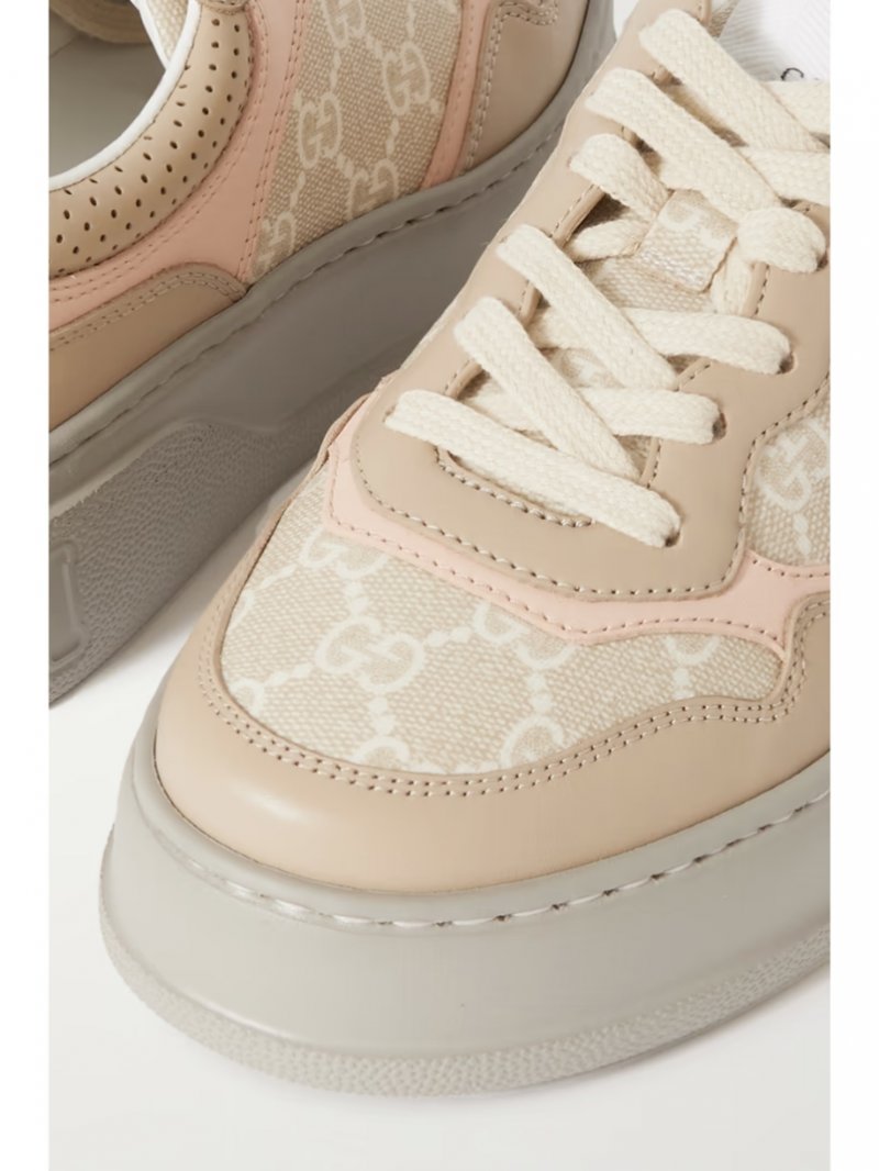 - Beige and pink leather (Calf), beige and white canvas