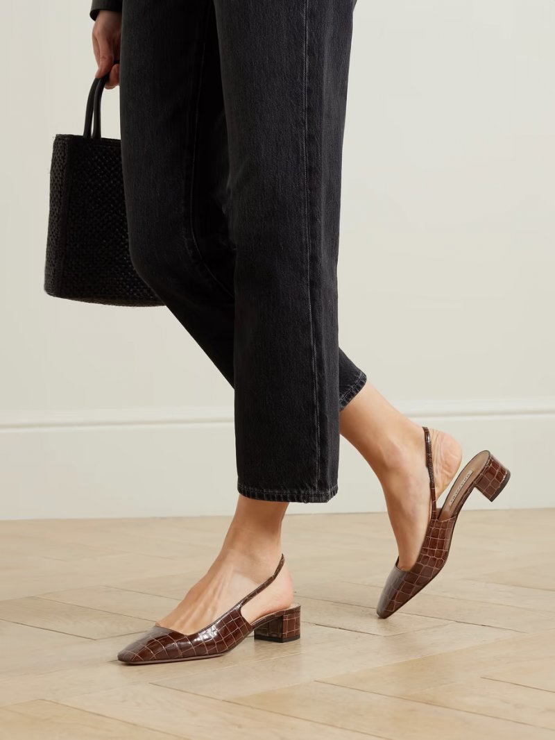 - Brown croc-effect leather (Calf)