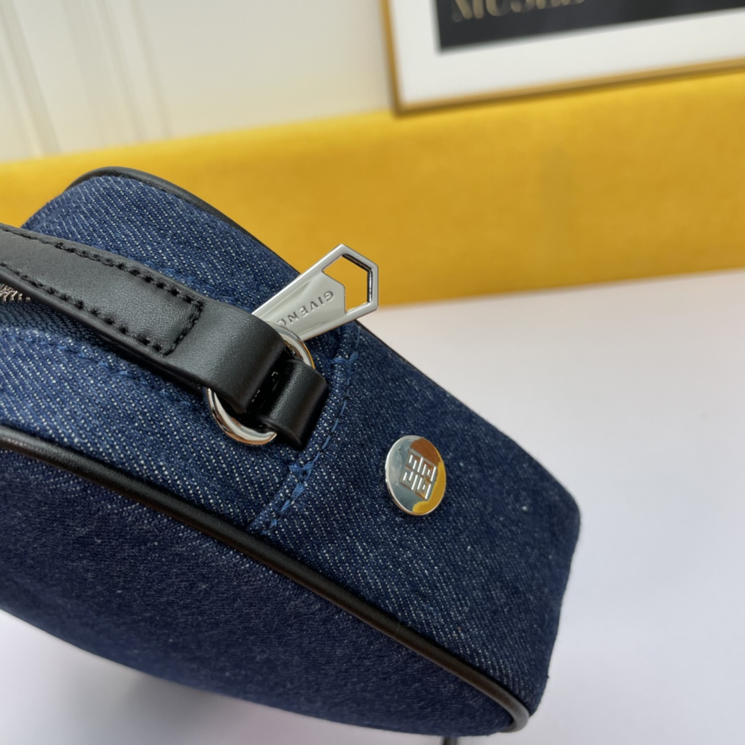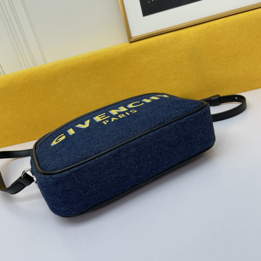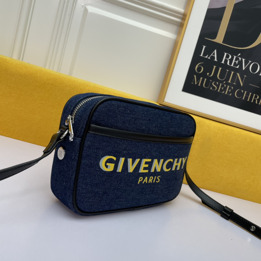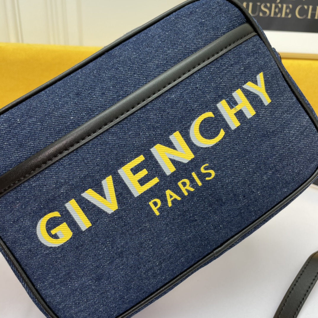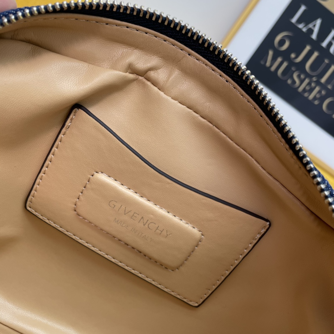 The Givenchy BOND canvas camera bag in a beige color is convenient, lightweight, and not cumbersome. It has an adjustable shoulder strap and a zipper closure, making it easy to open and close. The most considerate feature is the exterior flat pocket, which allows for convenient placement of items at any time.