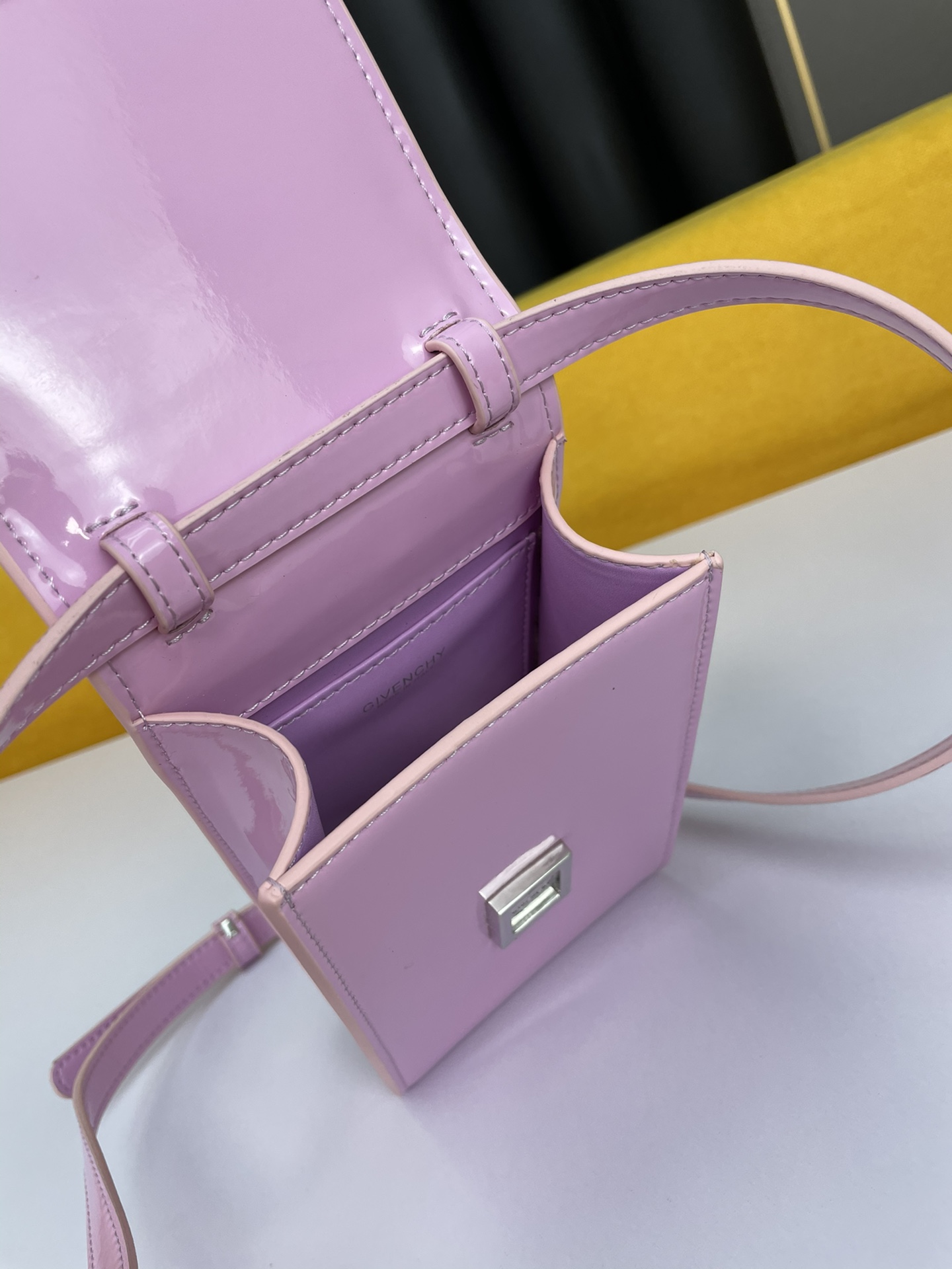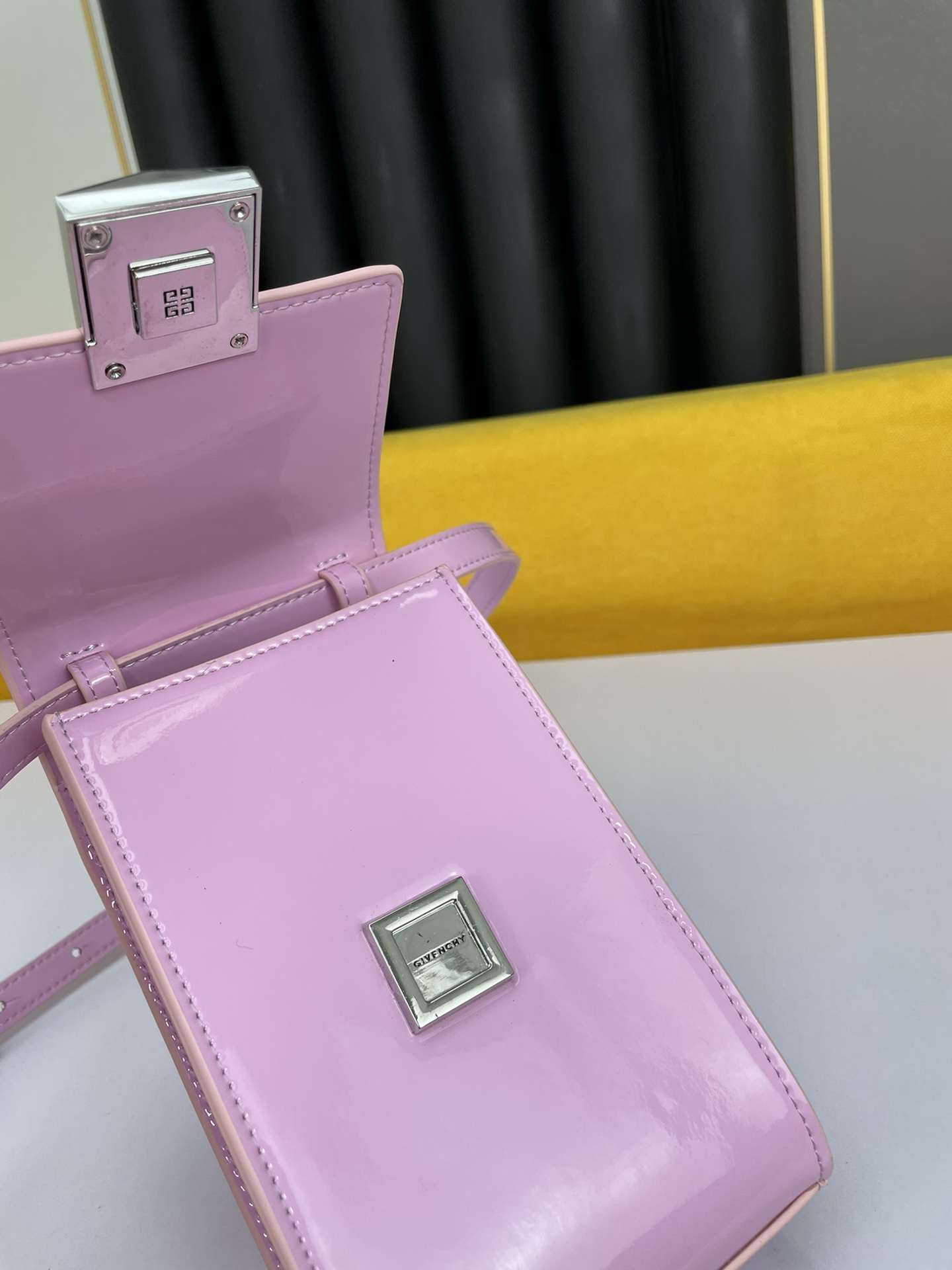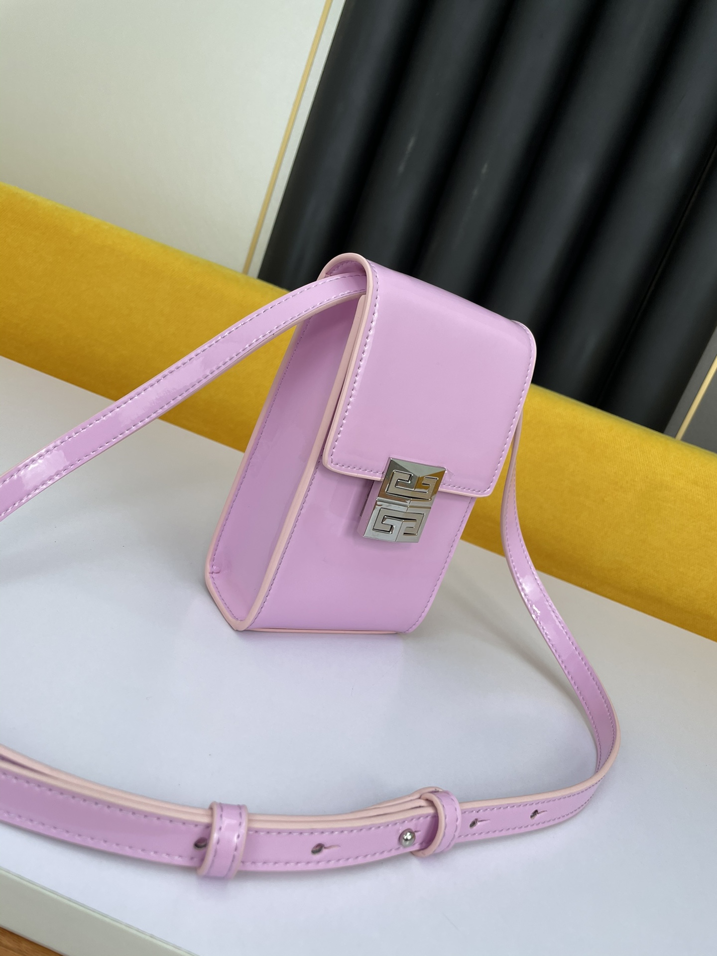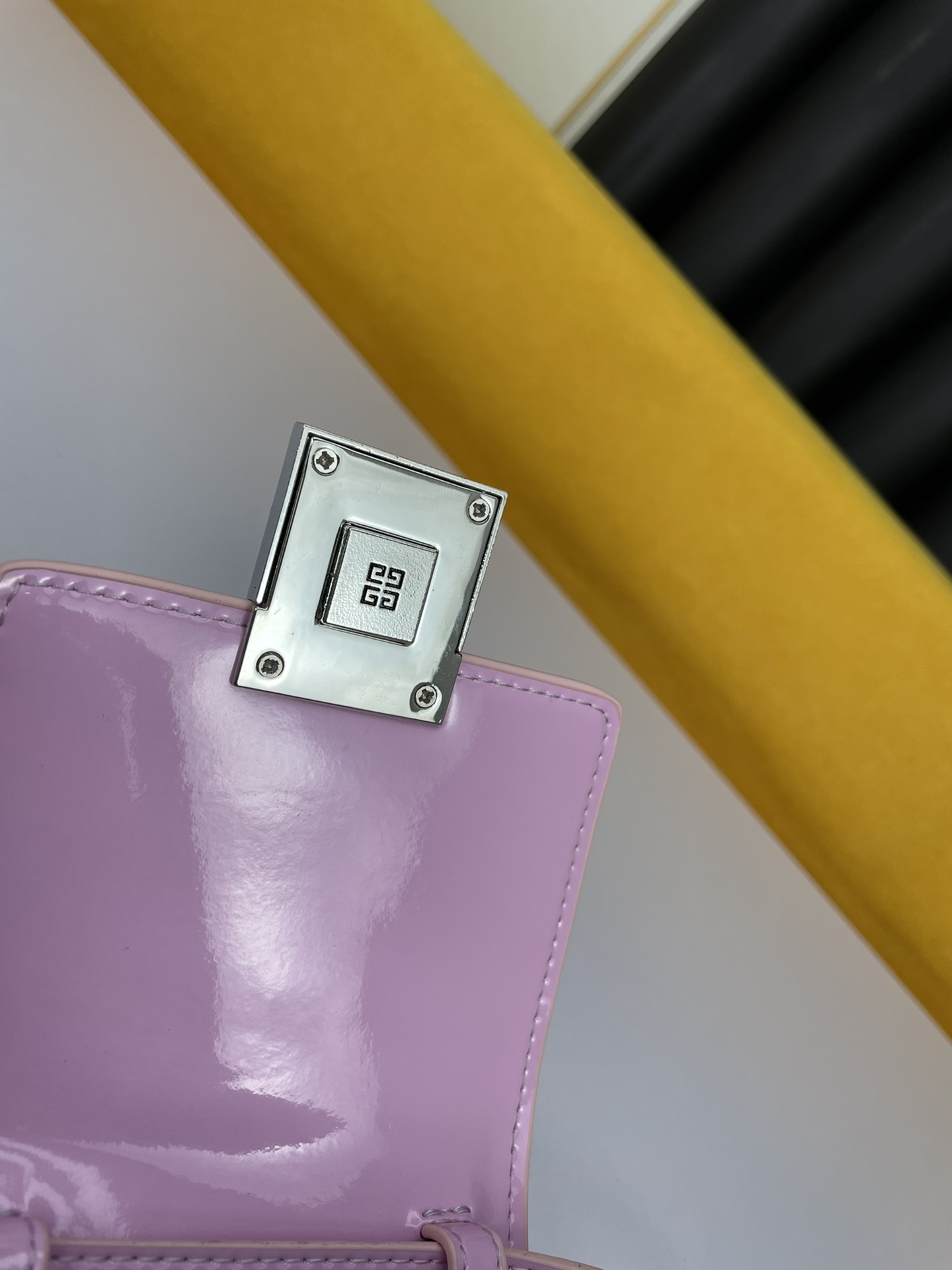 Givenchy’s popular new arrival – a crossbody bag with a metal magnetic flap closure. The shoulder strap is adjustable in length. The metal accessories are engraved with the GIVENCHY logo.