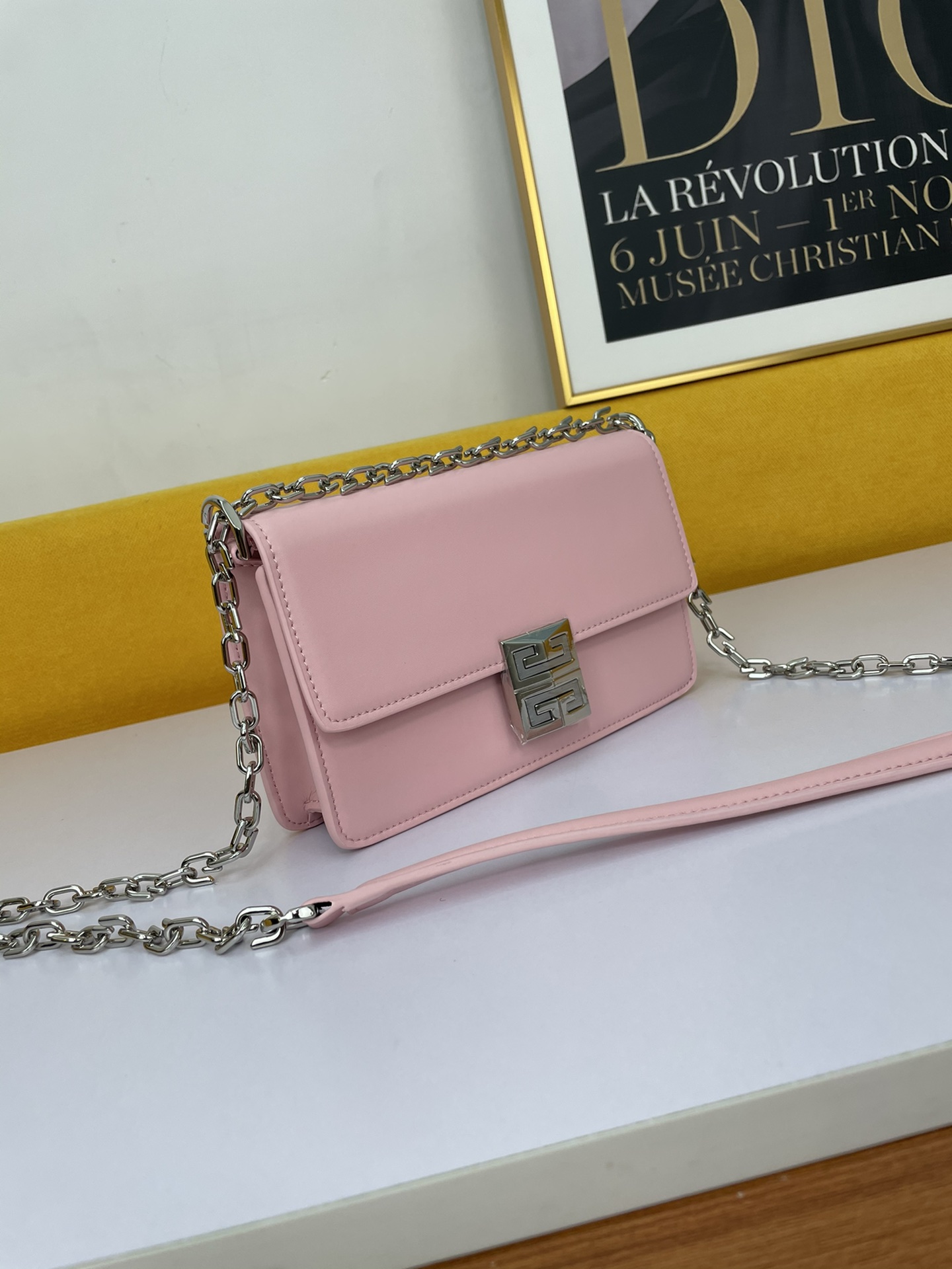 Givenchy’s star-studded popular style is back in stock. It features a 4G metal magnetic flap closure and an adjustable and detachable shoulder strap with leather support. The shoulder strap is adorned with metal chain links.