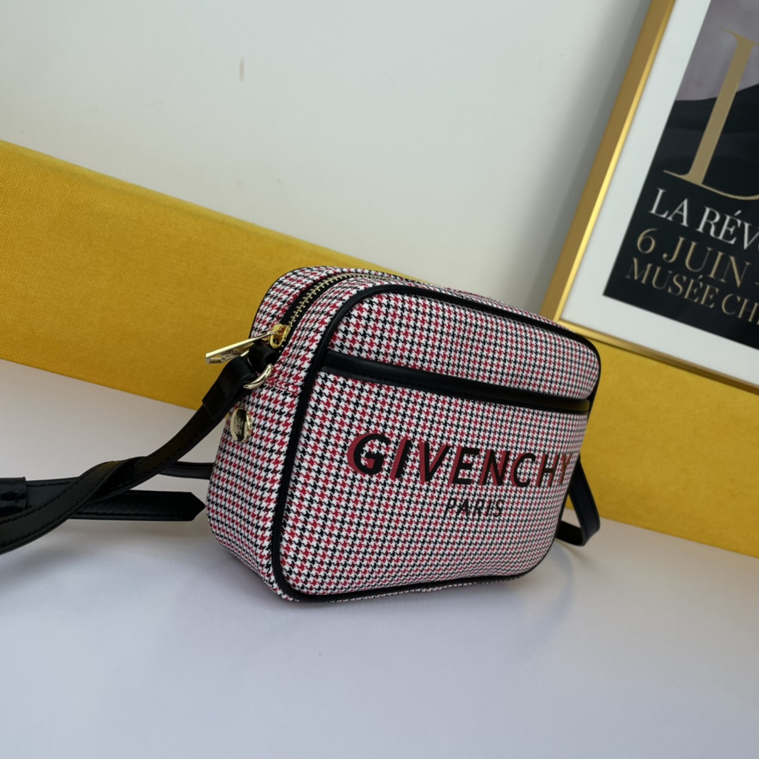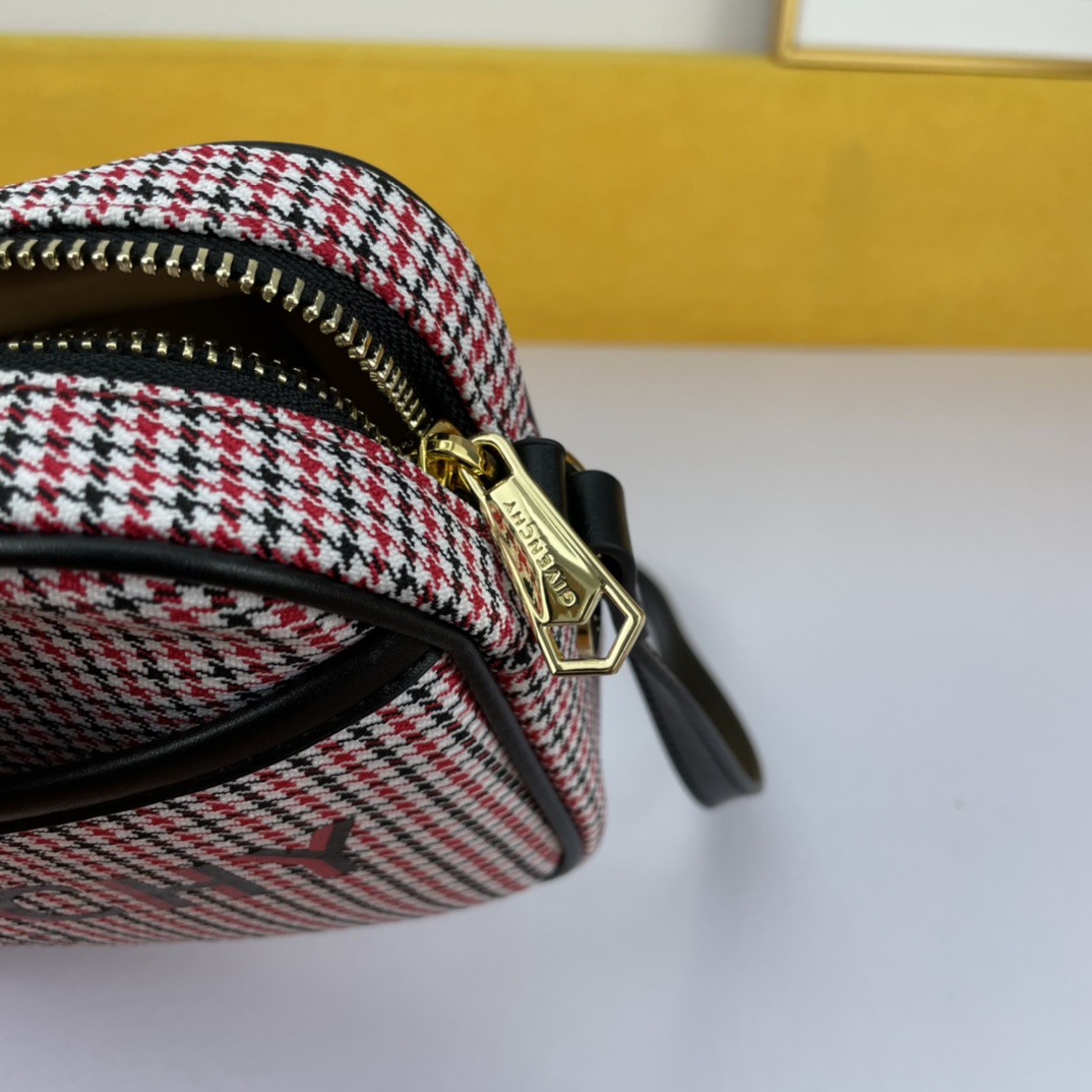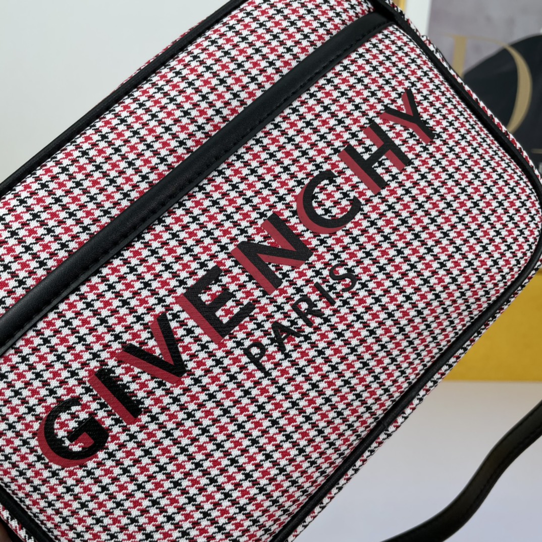 Givenchy’s canvas camera bag in a beige color is convenient, lightweight, and not bulky. It features an adjustable shoulder strap and a zippered closure for easy access. The most thoughtful aspect is the exterior flat pocket, allowing for convenient storage of items at any time.