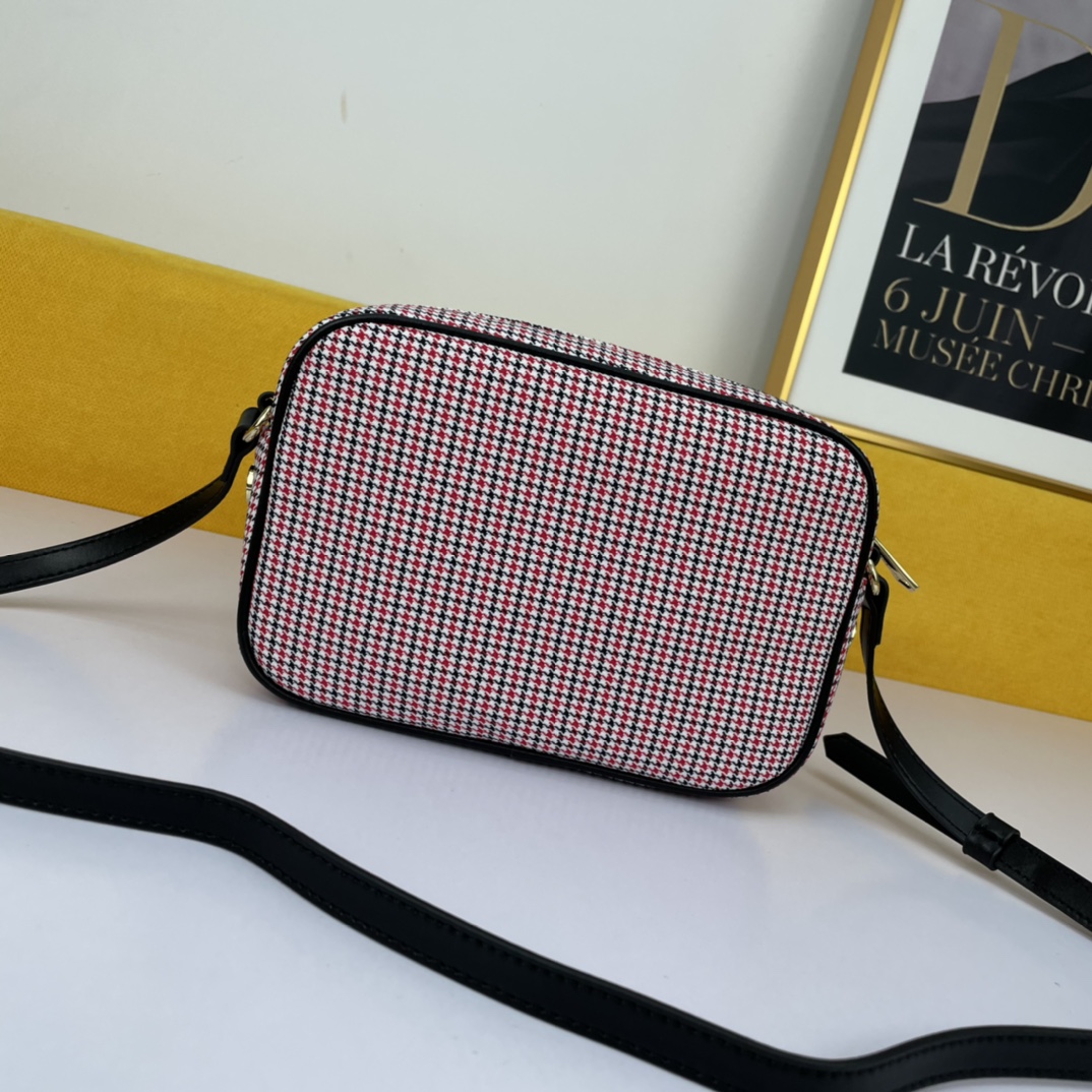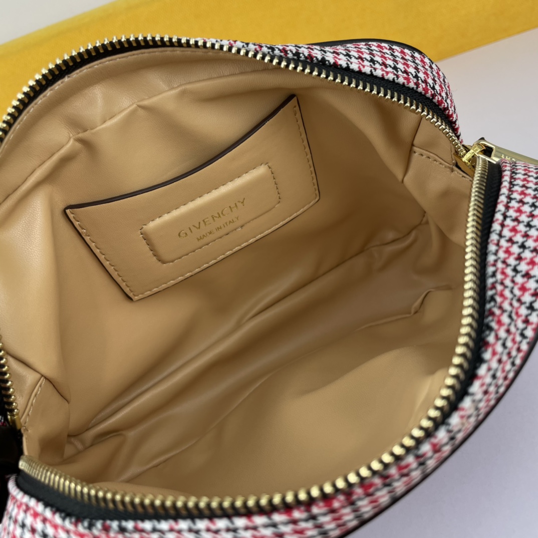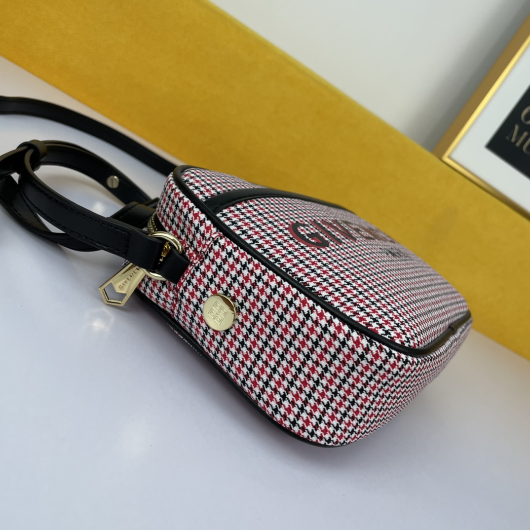Givenchy’s canvas camera bag in a beige color is convenient, lightweight, and not bulky. It features an adjustable shoulder strap and a zippered closure for easy access. The most thoughtful aspect is the exterior flat pocket, allowing for convenient storage of items at any time.