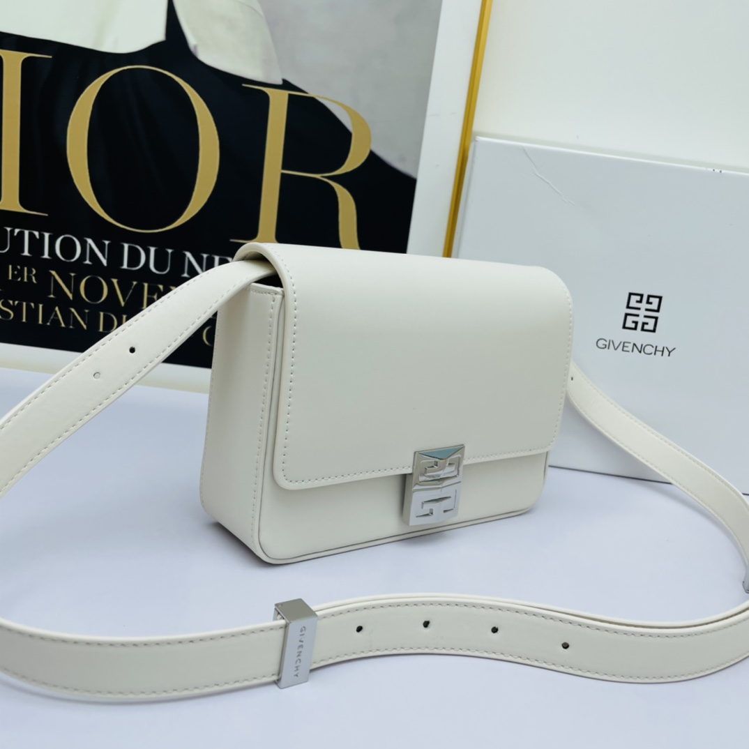 It features a 4G metal magnetic buckle for easy flip opening and closing, adjustable and detachable straps, and metal accessories engraved with the GIVENCHY LOGO.