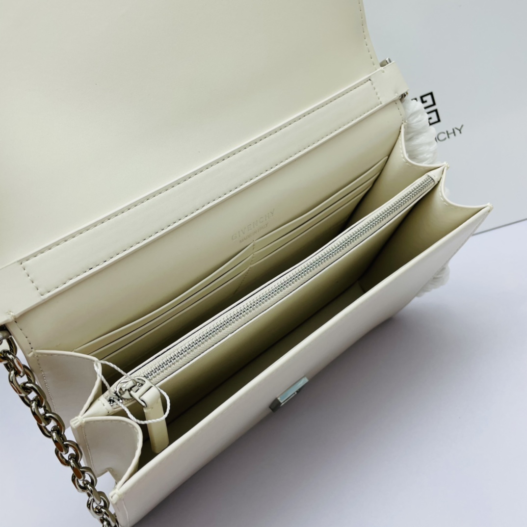 Givenchy’s iconic restocked item.It features a 4G metal magnetic buckle for easy flip opening and closing, an adjustable and detachable metal chain strap with leather support.