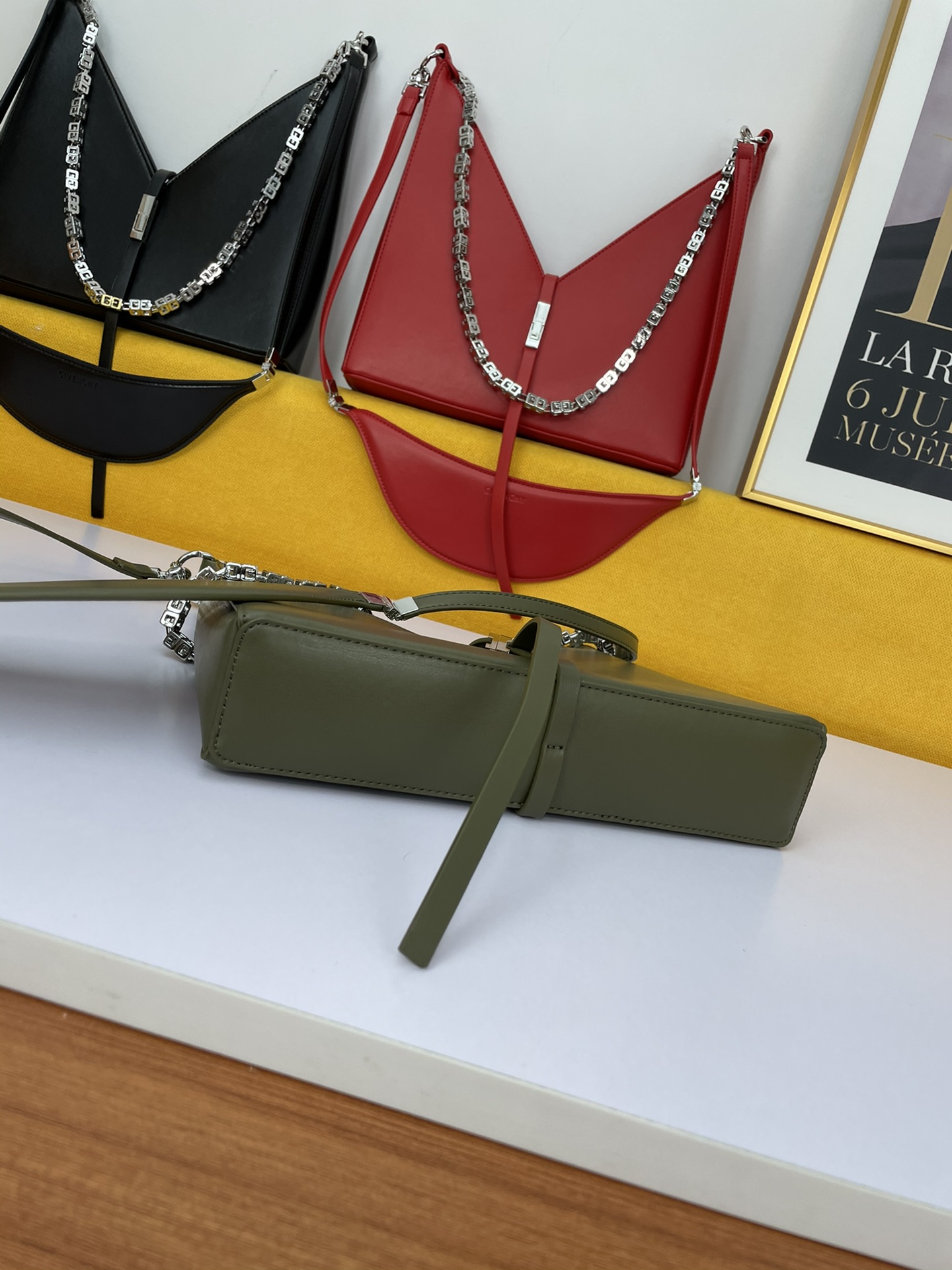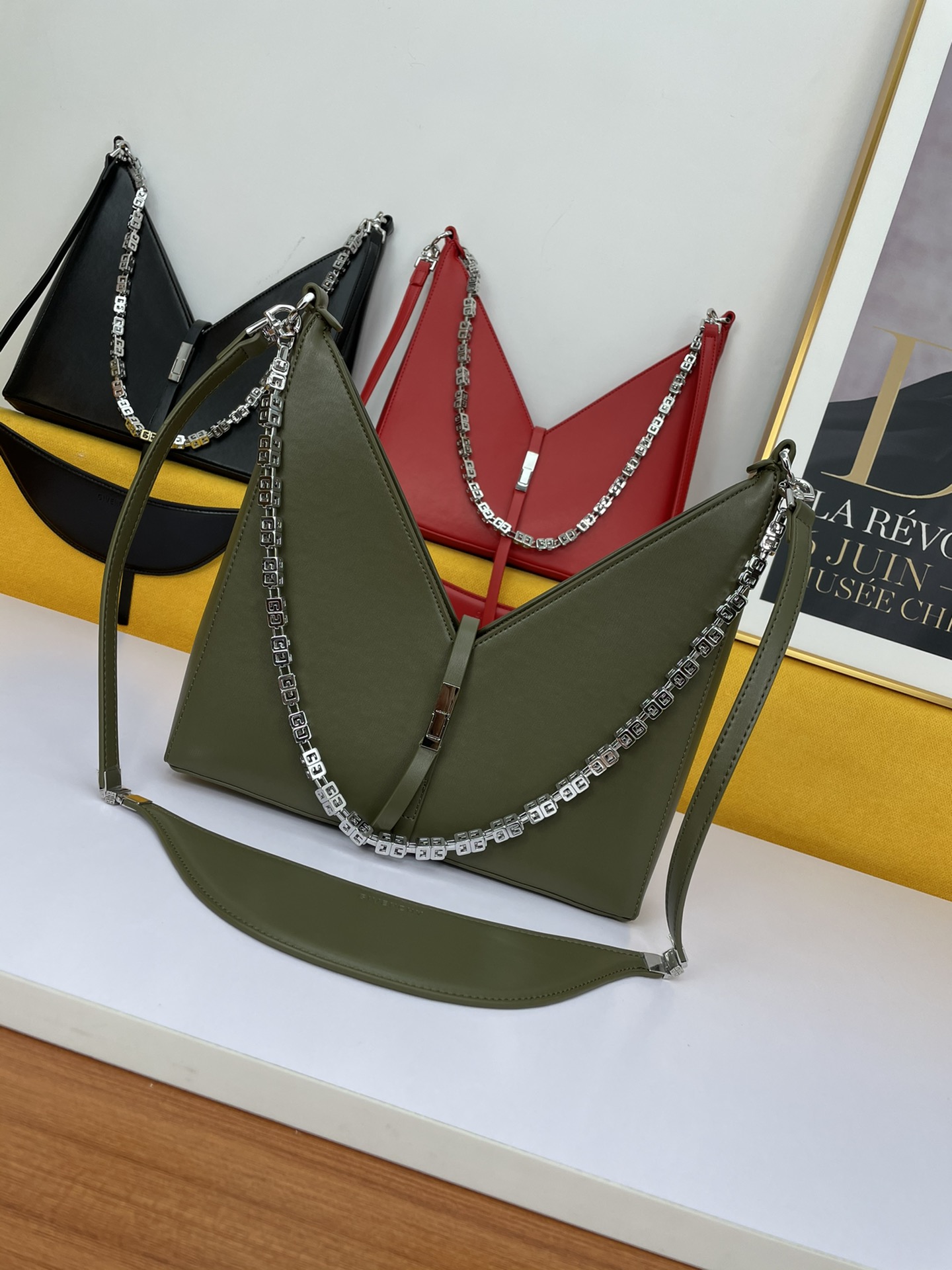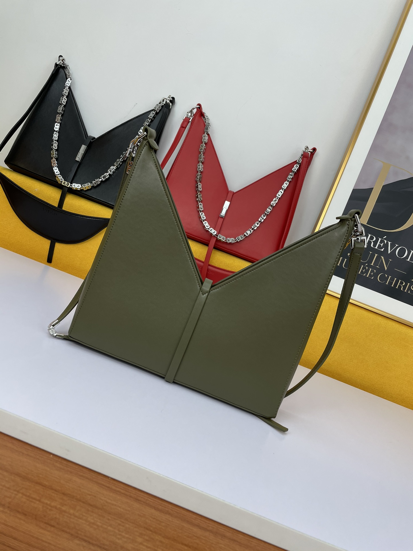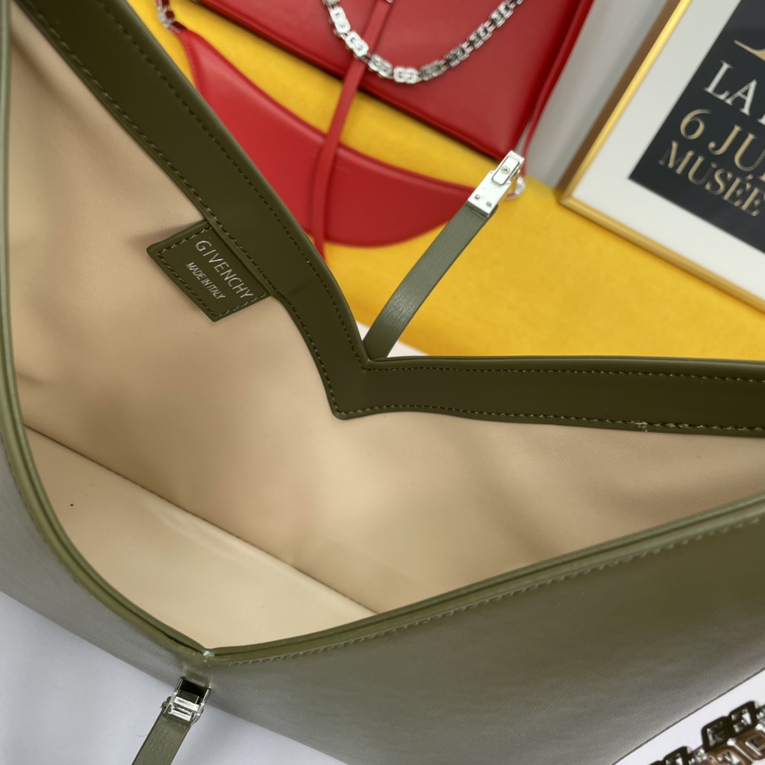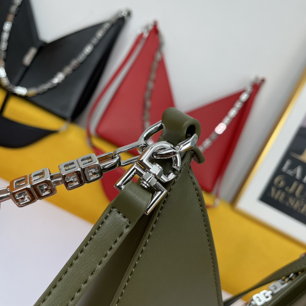 Givenchy’s new release, the V-shaped Cut Out handbag, is a unique and stylish design from the renowned French brand. Made of genuine leather and featuring original hardware, it is paired with a cast copper 4G metal chain.