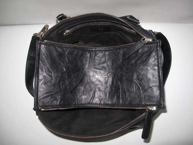 The mythical Pandora”s box should have been left unopened, but you won”t be able to resist peeking inside this Givenchy bag. An angled, two-zipper top gives it a one-of-a-kind silhouette. Pair it with other Givenchy pieces or add dark romance to tamer looks.
