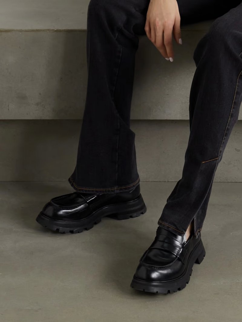 - Black glossed-leather (Calf)