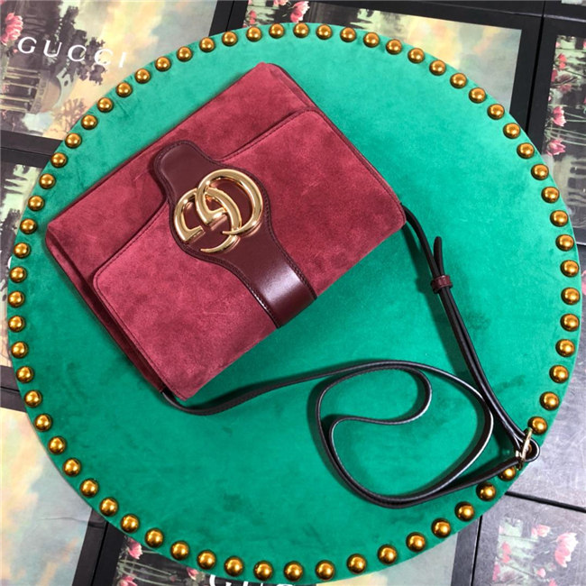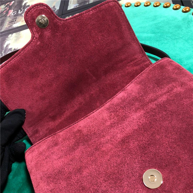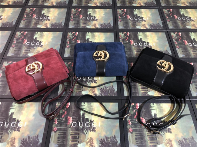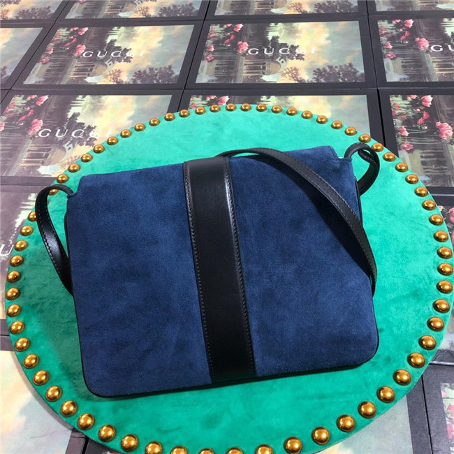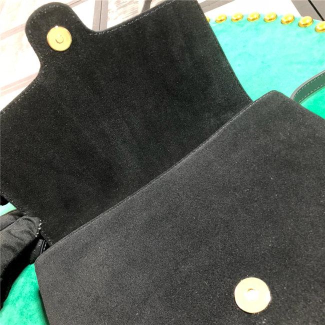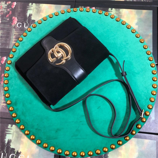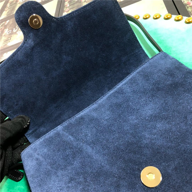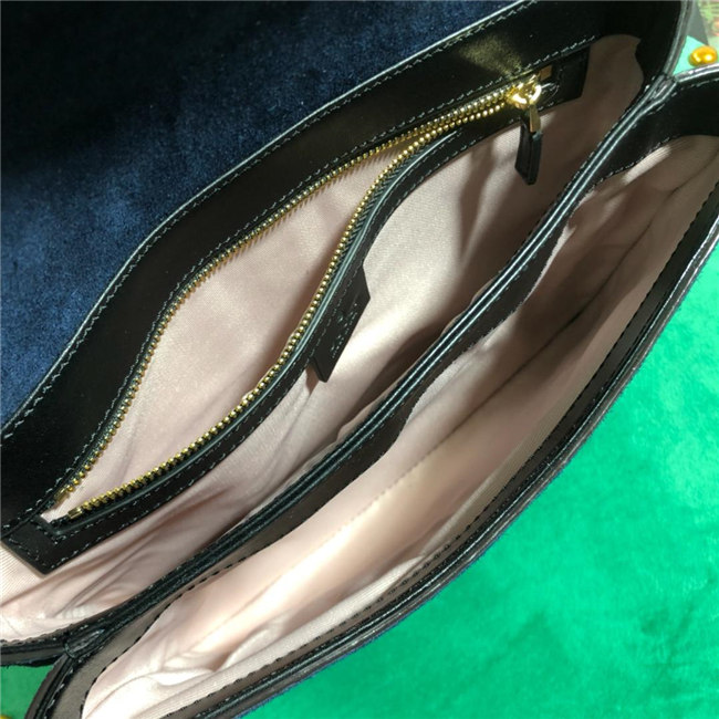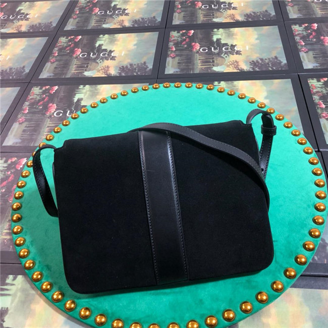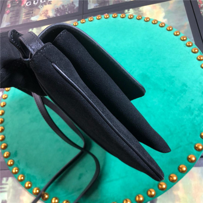 Brought back from the 1970s archives, the Double G hardware defines a new line of shoulder bags, designed with double gussets and an exaggerated flap. Here, the combination of black suede and leather details enhances the silhouette”s vintage feel. The accessory was presented in the Cruise 2019 collection, revealed in the evocative setting of the Promenade des Alyscamps, an ancient Roman necropolis in the French town of Arles—which gives the name to the line.