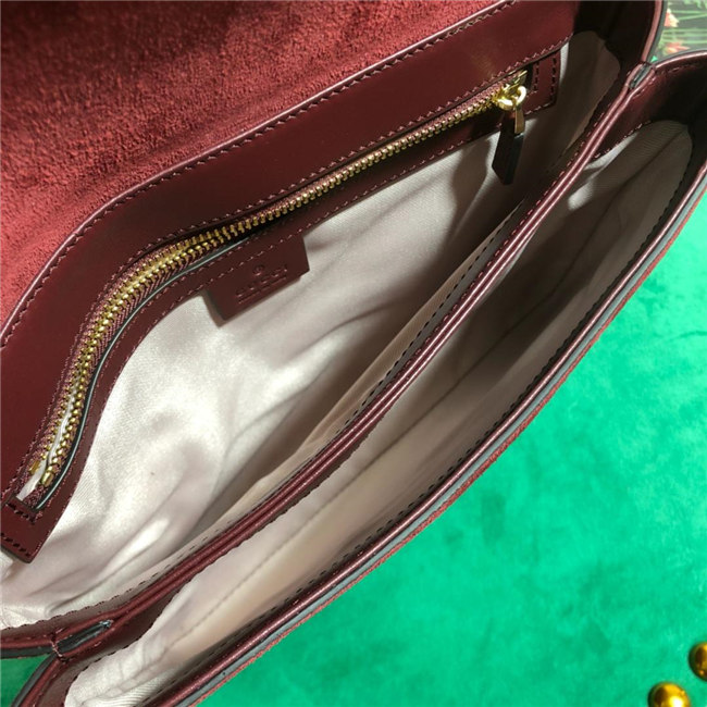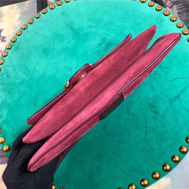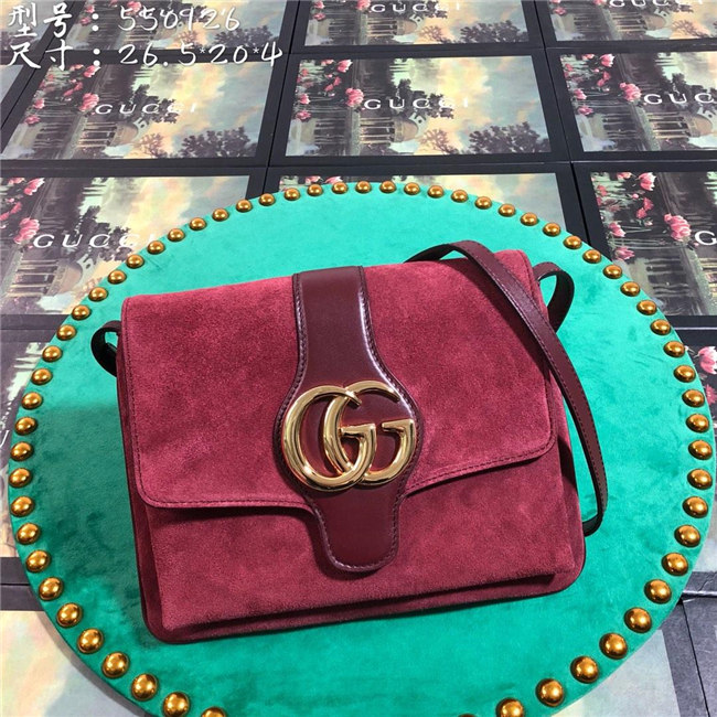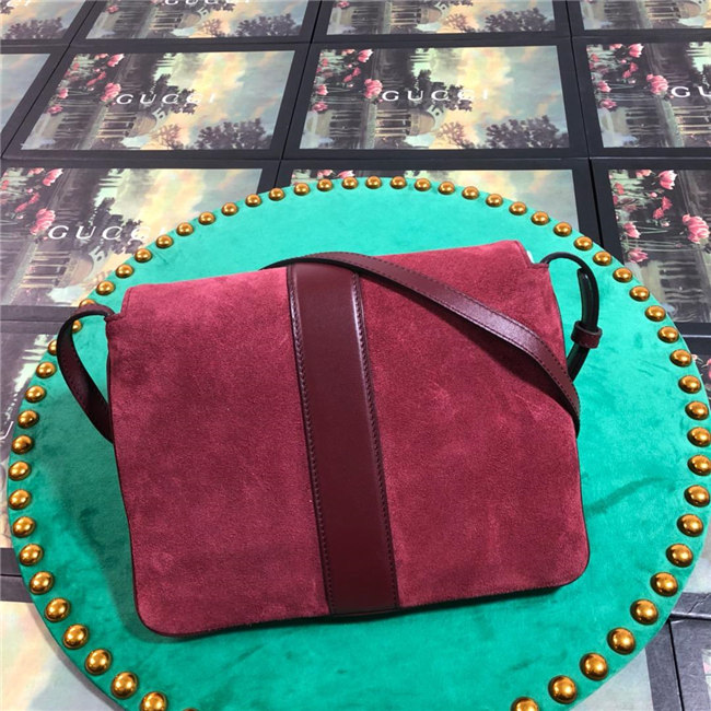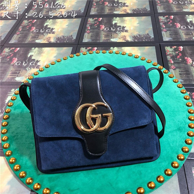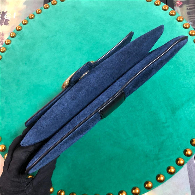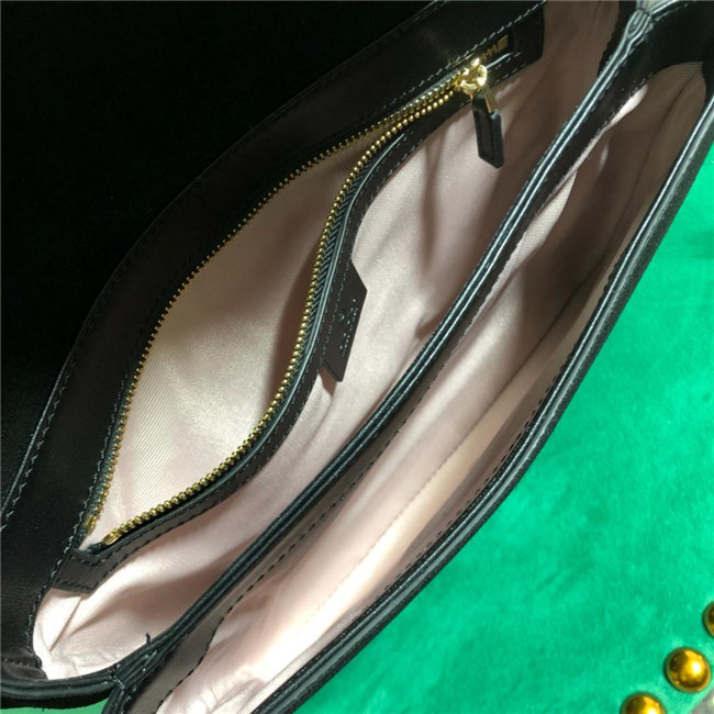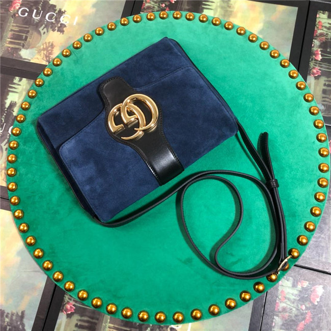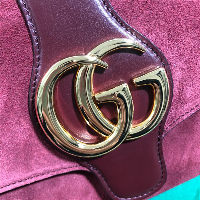 Brought back from the 1970s archives, the Double G hardware defines a new line of shoulder bags, designed with double gussets and an exaggerated flap. Here, the combination of black suede and leather details enhances the silhouette”s vintage feel. The accessory was presented in the Cruise 2019 collection, revealed in the evocative setting of the Promenade des Alyscamps, an ancient Roman necropolis in the French town of Arles—which gives the name to the line.