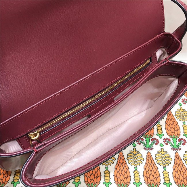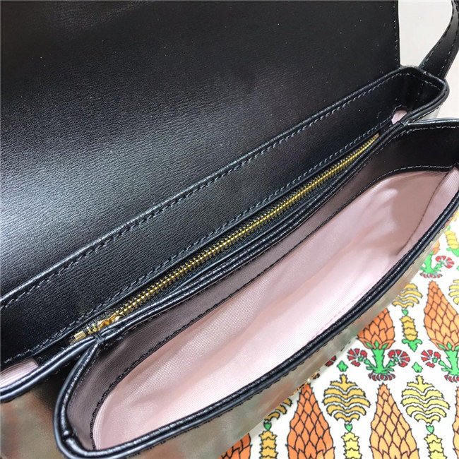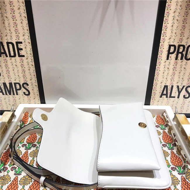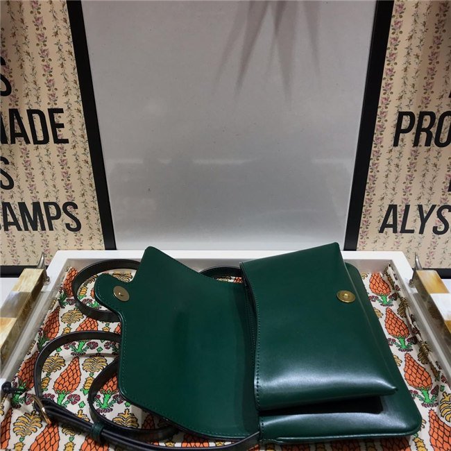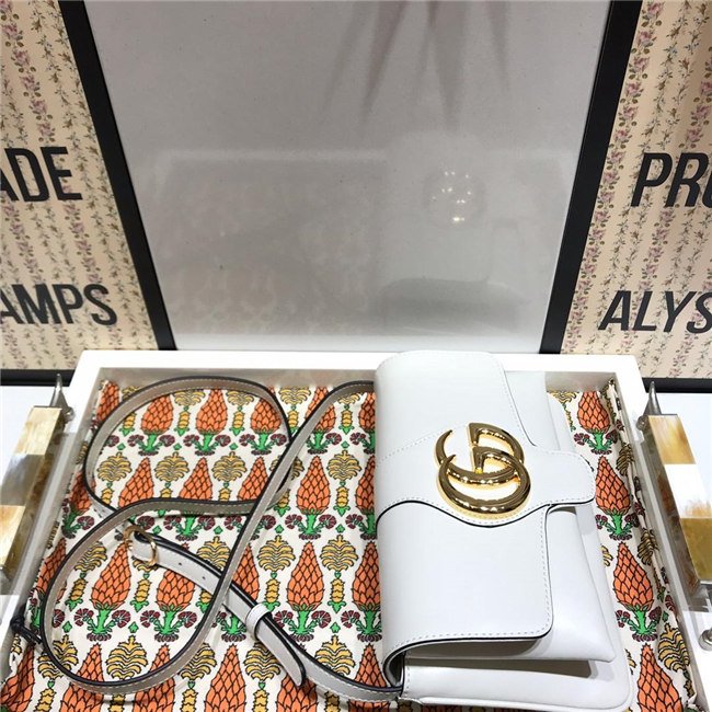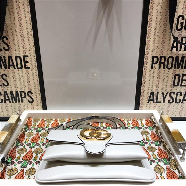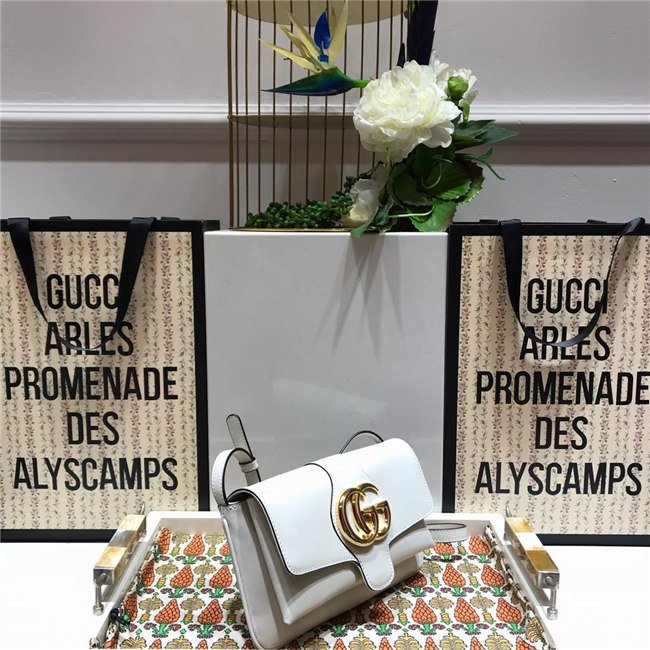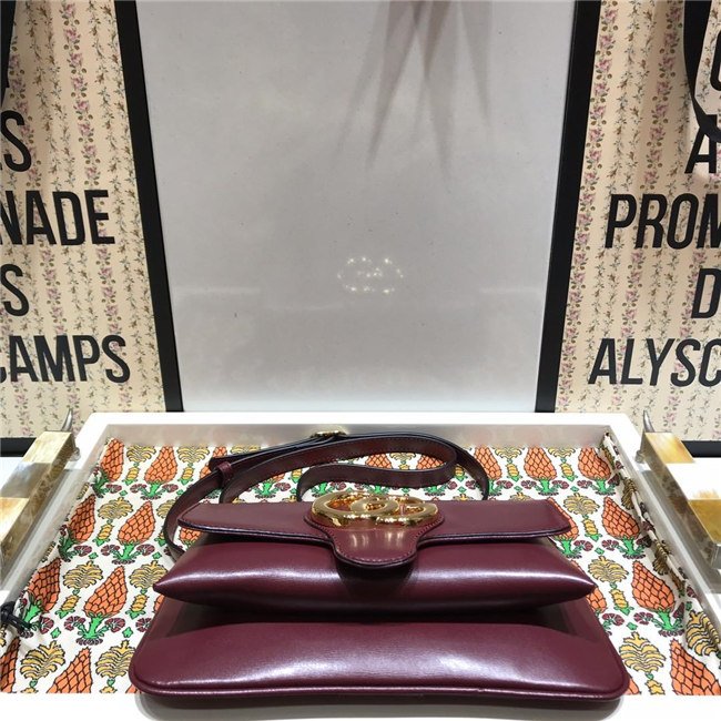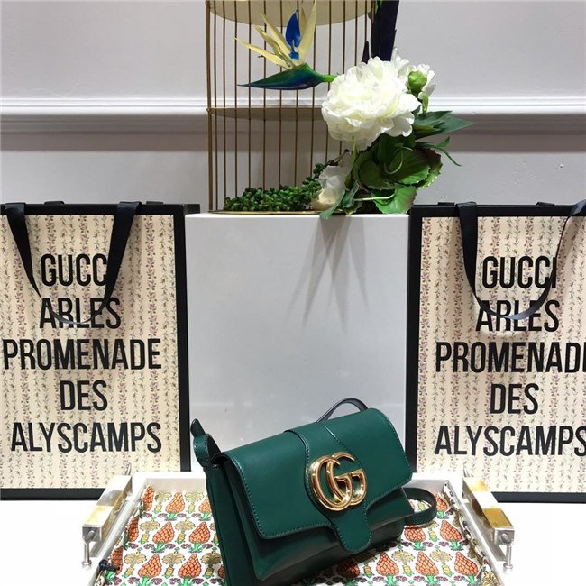 Brought back from the 1970s archives, the Double G hardware defines a new line of shoulder bags. The oversize emblem decorates the exaggerated flap closure of a small shoulder bag. The silhouette has a vintage feel with an adjustable shoulder strap, crafted in black leather with a rich softness and shiny look. The accessory was first presented in the Cruise 2019 collection, revealed in the evocative setting of the Promenade des Alyscamps, an ancient Roman necropolis in the French town of Arles—which gives the name to the line.