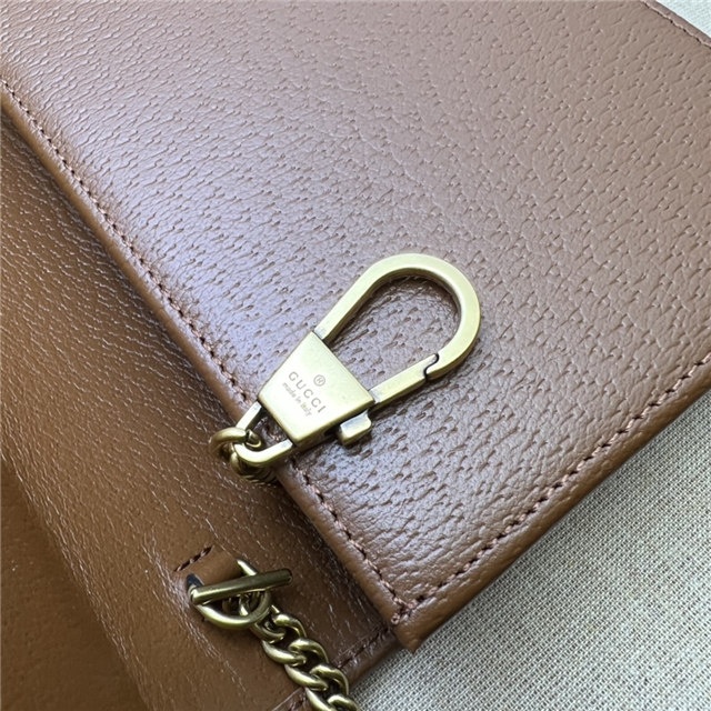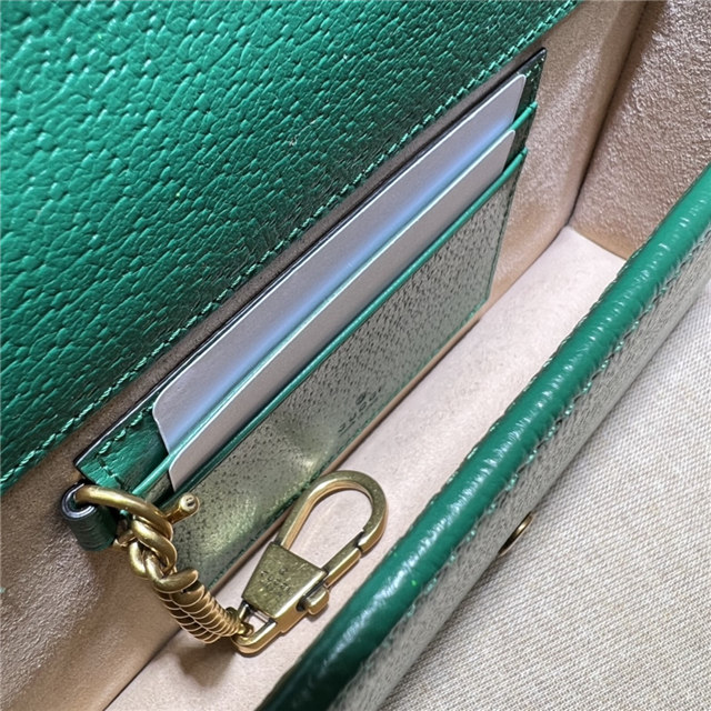 Crafted from matelassé leather, the mini bag has a vertical design with a zipper closure and interior card slots. Part of the GG Marmont collection, the chain strap bag is defined by the emblematic Double G hardware—a contemporary take on a Gucci archival belt buckle from the ”70s that has become a hallmark of the House.