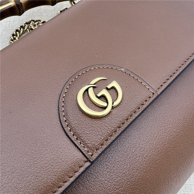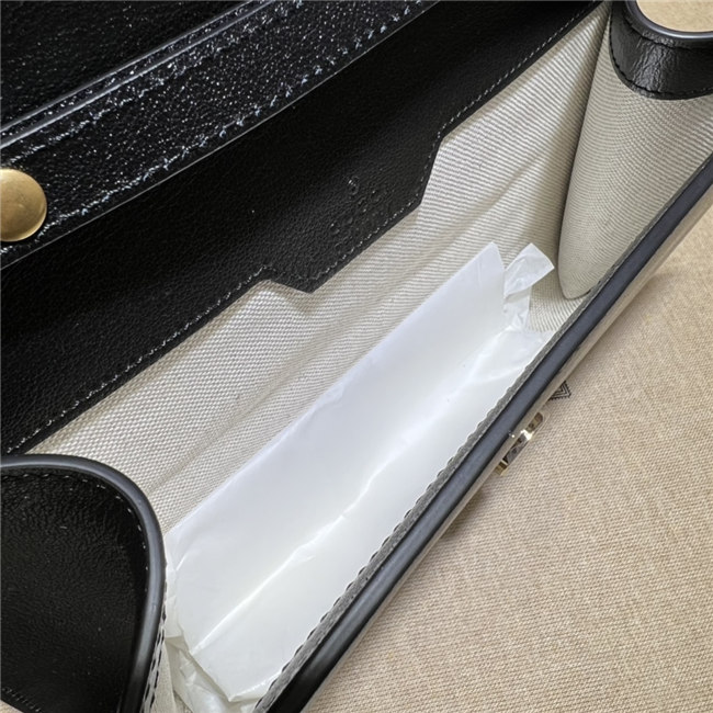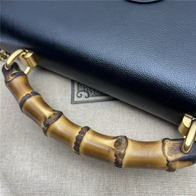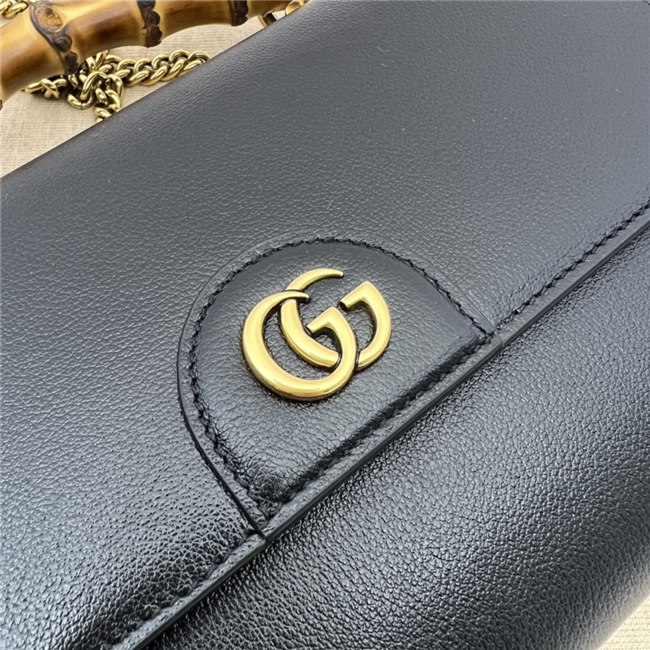 Inspired by a bamboo tote bag from the ’90s, the Gucci Diana speaks to the narrative of evolution and reinvention that runs through the House’s design. Crafted with hardware in the same emblematic material, the design is imagined as a black leather shoulder bag as a part of The Gucci Aria collection.