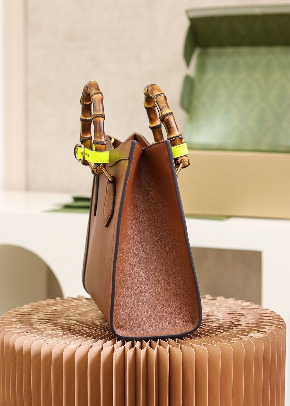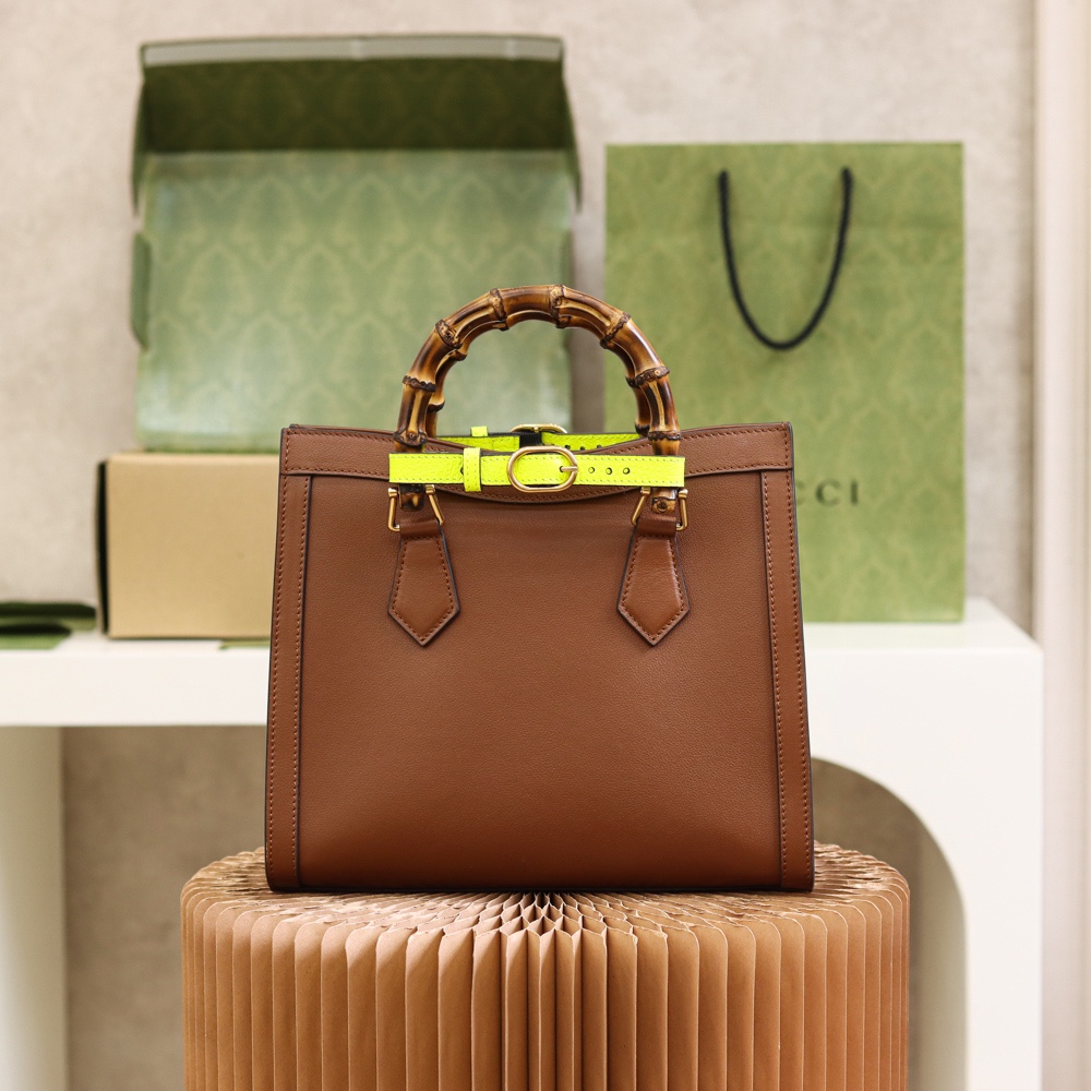 The concept of reinvention continues to shape the House’s designs. An evolution of a bamboo handle tote first introduced in 1991, the Gucci Diana represents the notion of style in constant evolution. The design plays with traditional details and renews them new meaning. Playing with this idea, the functional bands used to keep bamboo handles in shape are reimagined as playful leather belts.