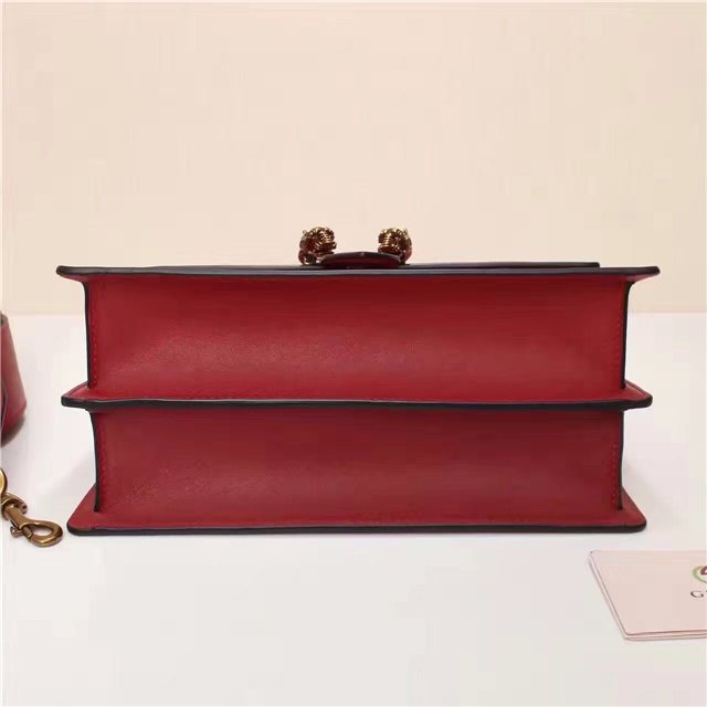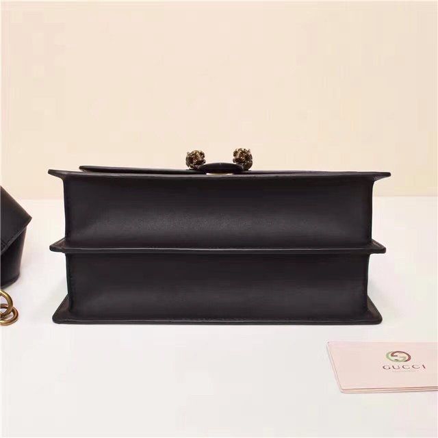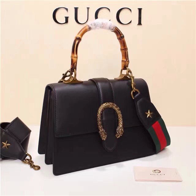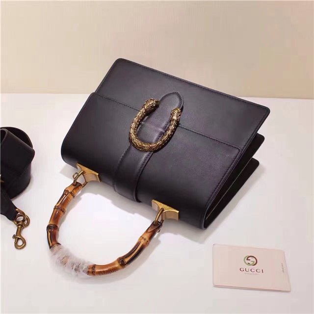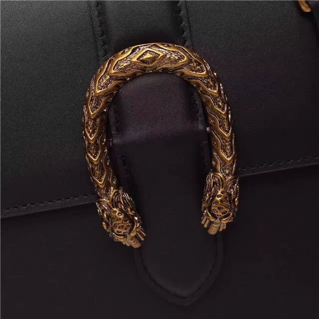 A structured Dionysus bag in leather with textured tiger head spur closure-a unique detail referencing the Greek god Dionysus, who in myth is said to have crossed the river Tigris on a tiger sent to him by Zeus. The closure is further enhanced with black Swarovski crystals. Made in resistant, textured leather. Made in fine grain leather, noted for its shine and softness.