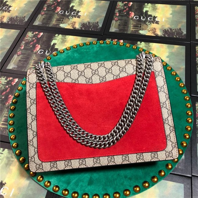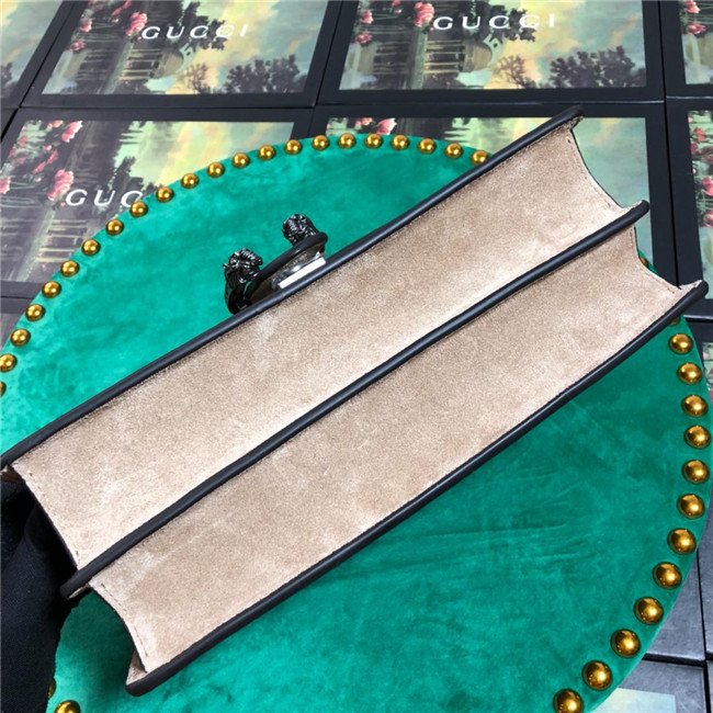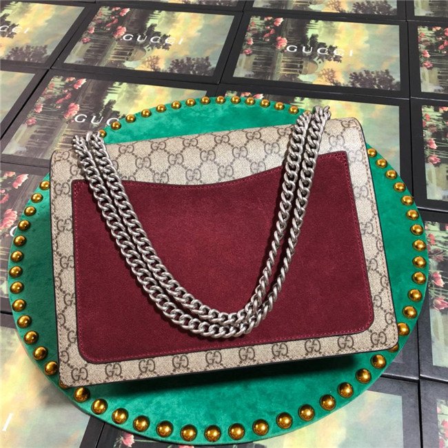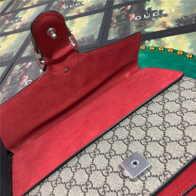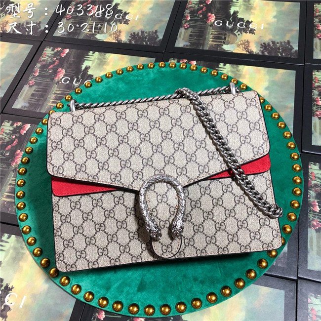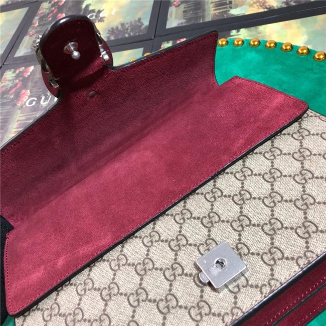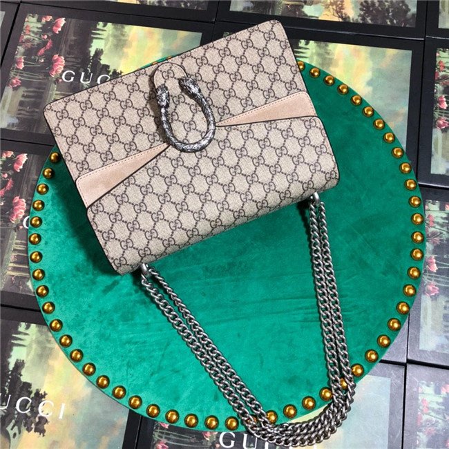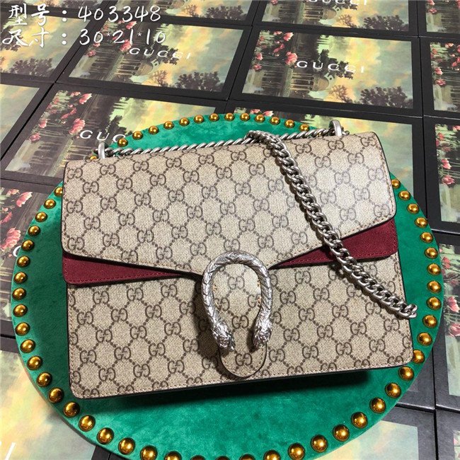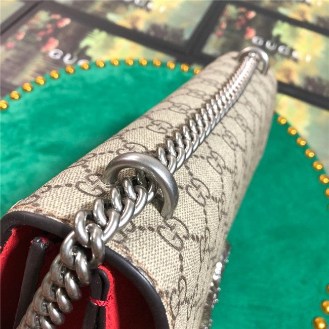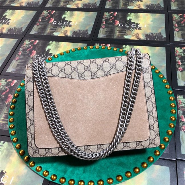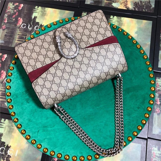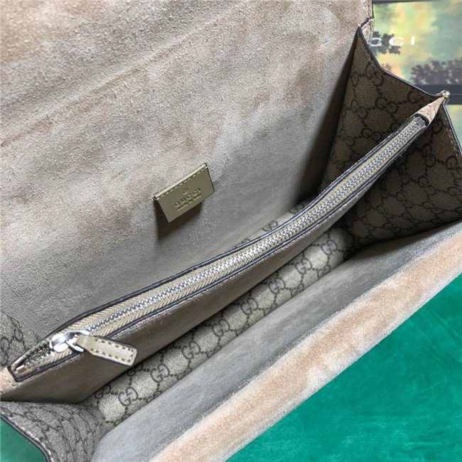 A structured GG Supreme canvas bag with our textured tiger head closure-a unique detail referencing the Greek god Dionysus, who in myth is said to have crossed the river Tigris on a tiger sent to him by Zeus. The sliding chain strap can be worn multiple ways, changing between a shoulder and a top handle bag.