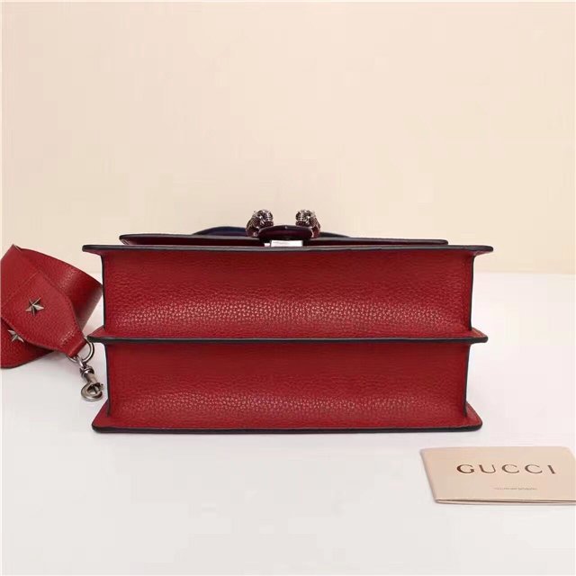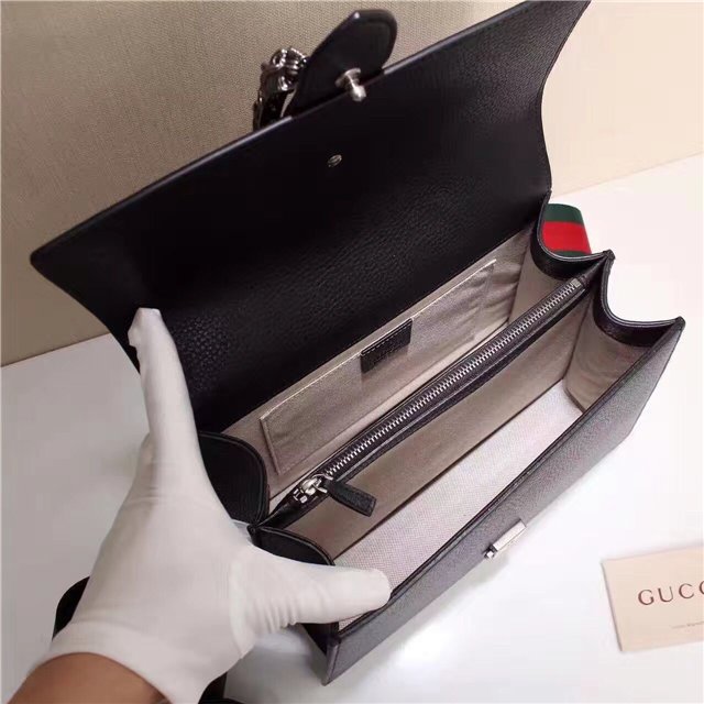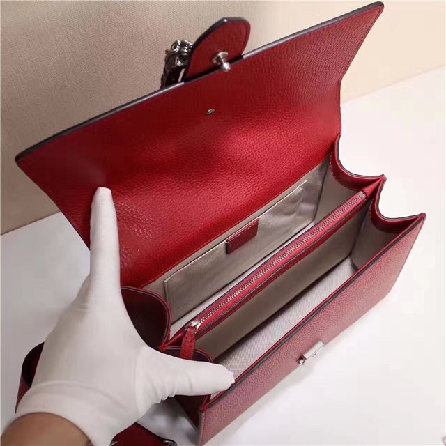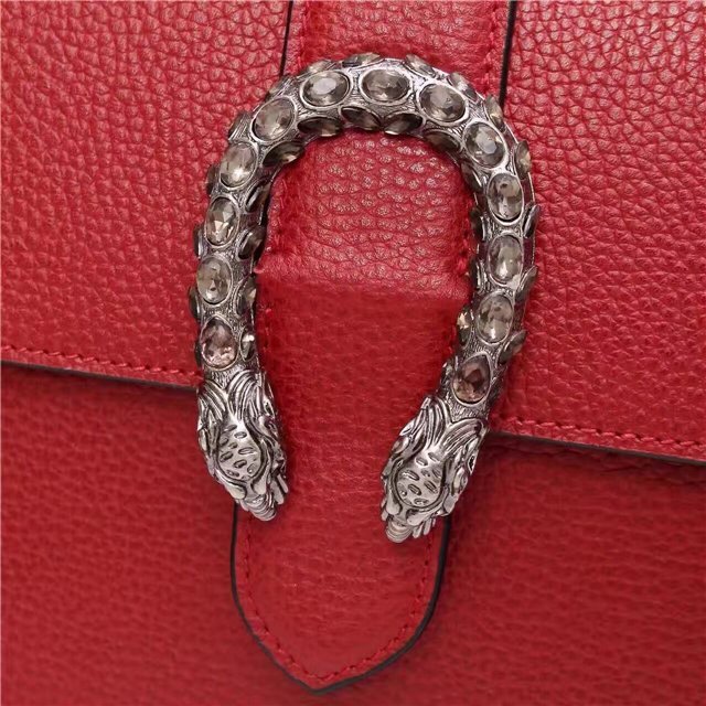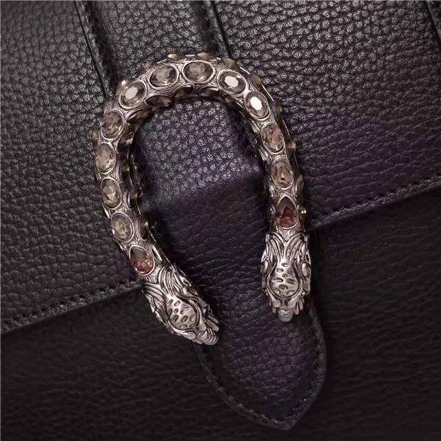 A structured contrast Dionysus bag in leather with the textured tiger head spur closure-a unique detail referencing the Greek god Dionysus, who in myth is said to have crossed the river Tigris on a tiger sent to him by Zeus.