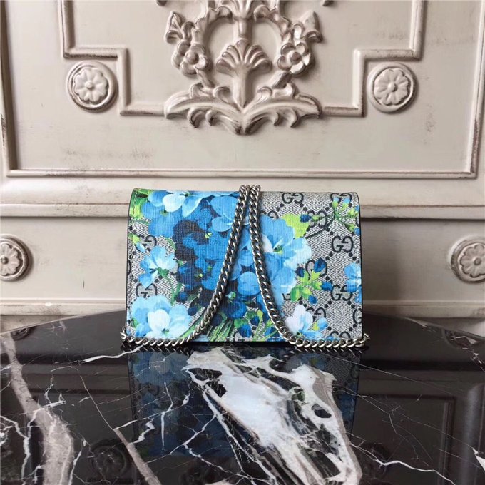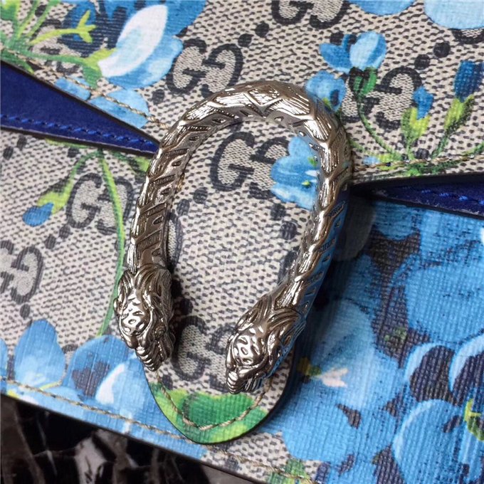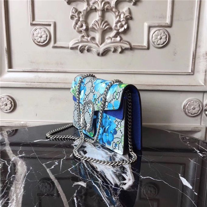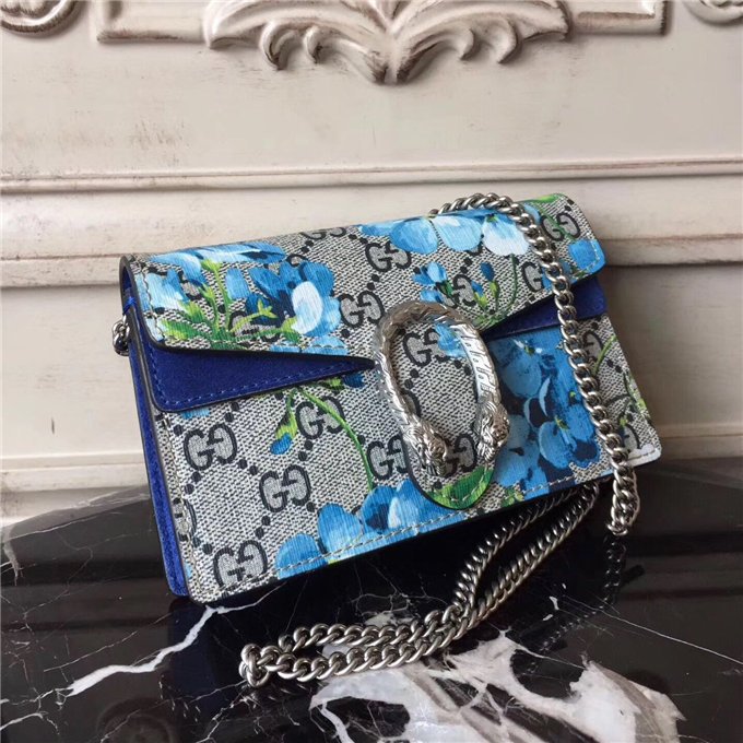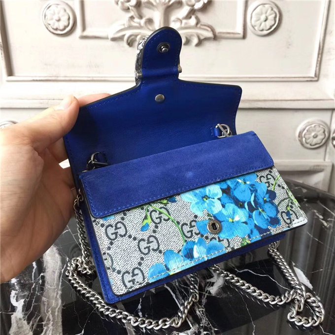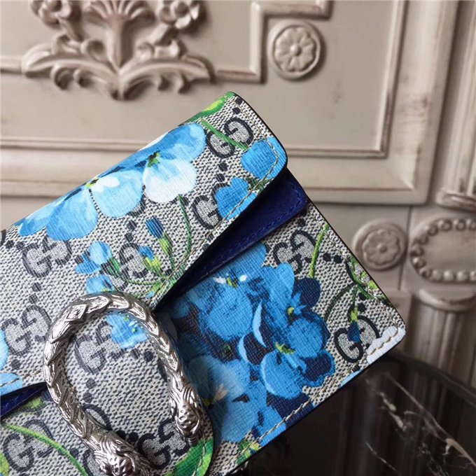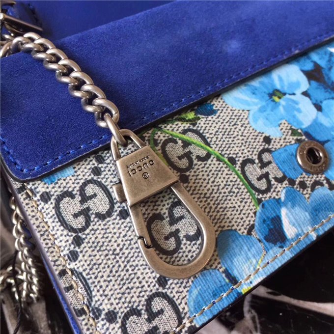 Blooms print GG Supreme canvas, a material with low environmental impact, with Blue suede detail