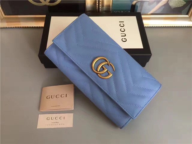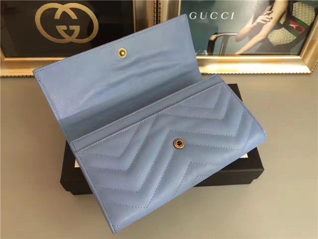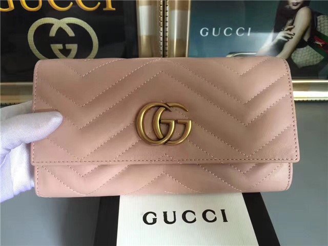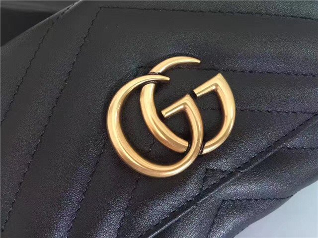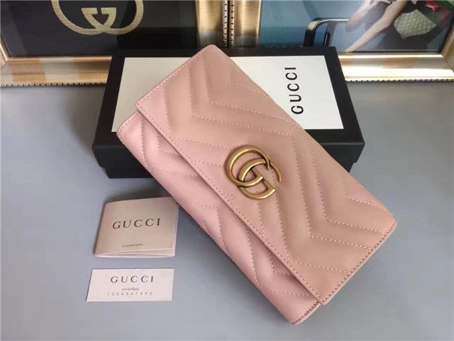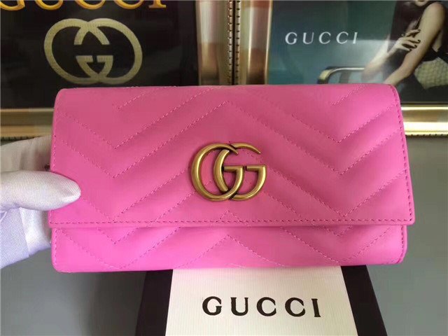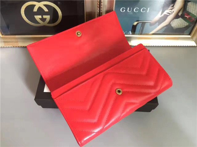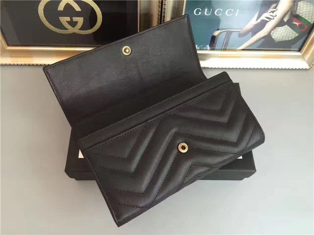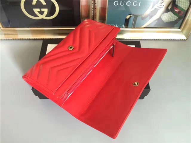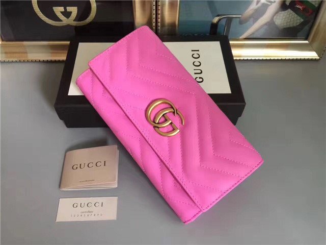 A GG Marmont continental wallet made in matelasse leather with a chevron design and GG on the back.