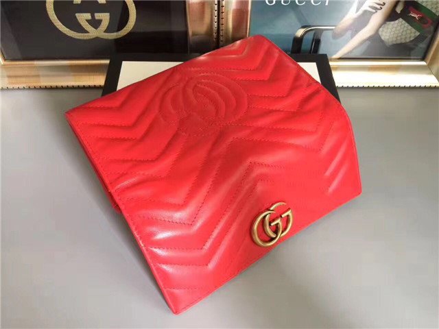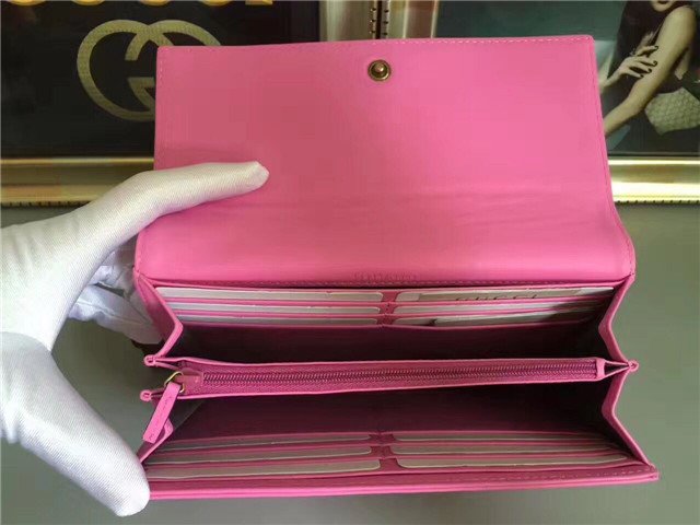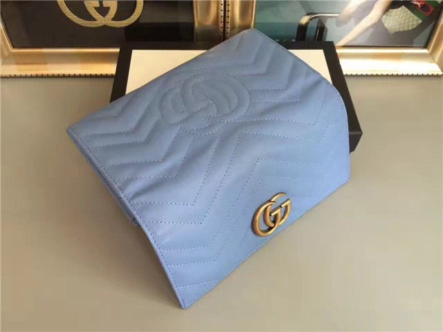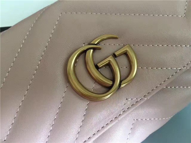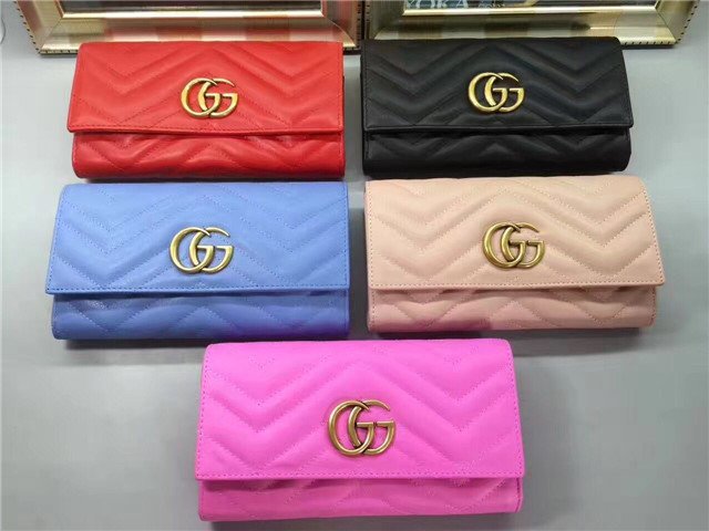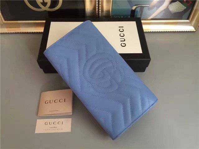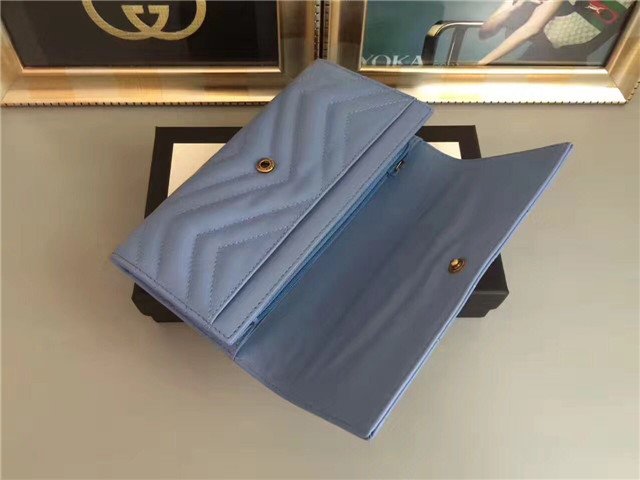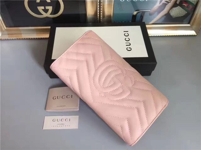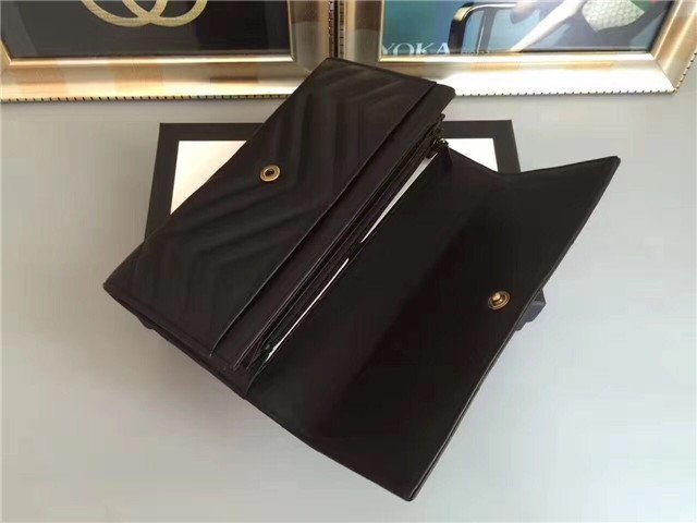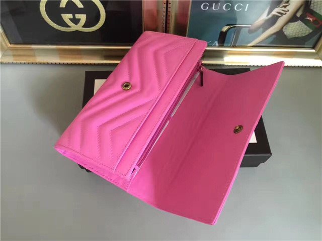 A GG Marmont continental wallet made in matelasse leather with a chevron design and GG on the back.