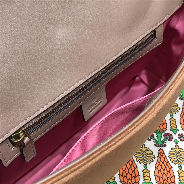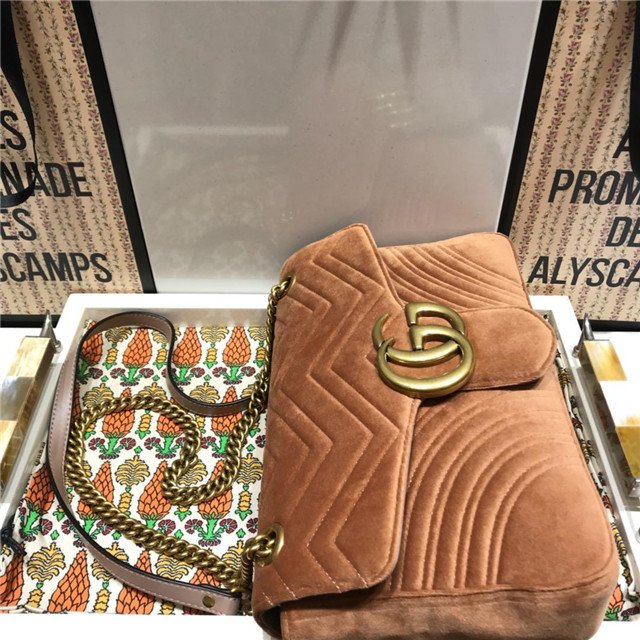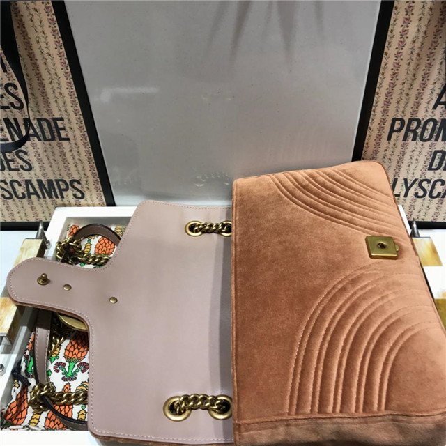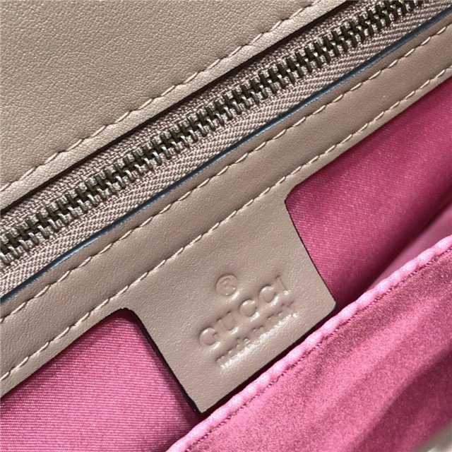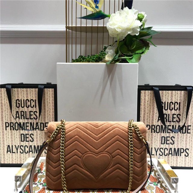 The medium GG Marmont chain shoulder bag has a softly structured shape and an oversized flap closure with Double G hardware. The sliding chain strap can be worn multiple ways, changing between a shoulder and a top handle bag. Made in matelassé chevron velvet with a heart on the back.
