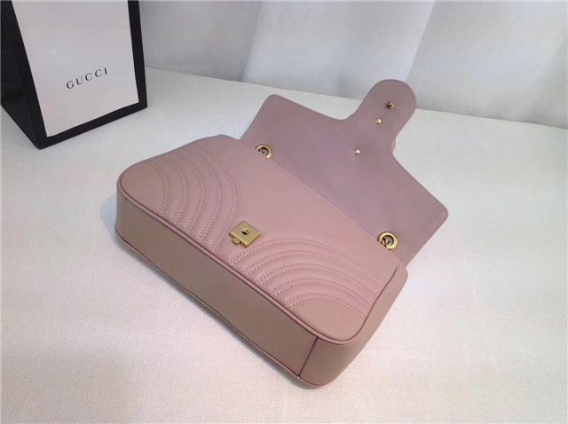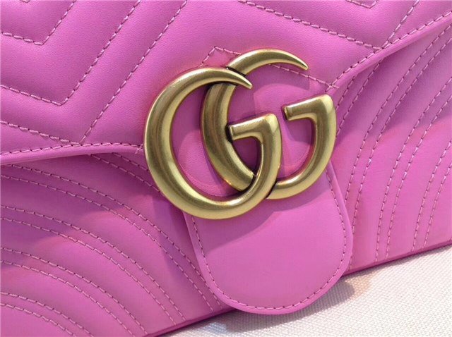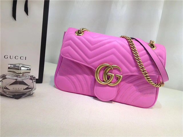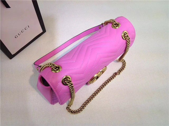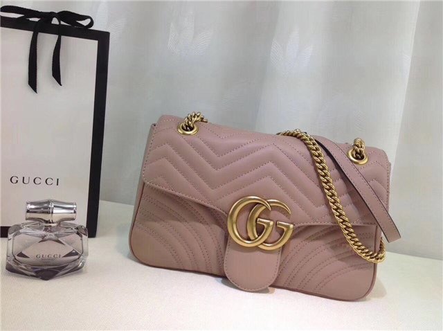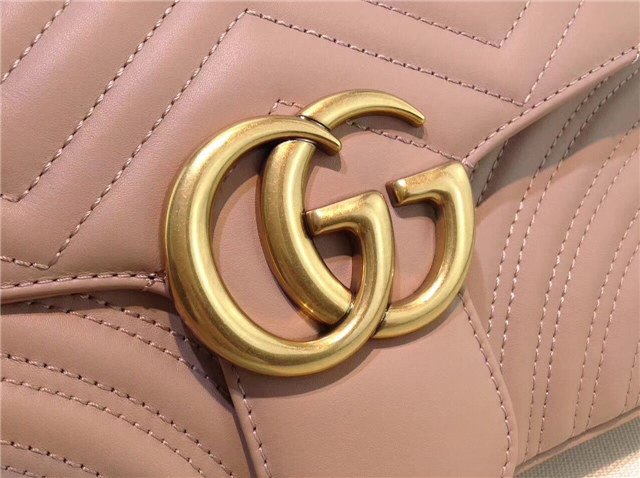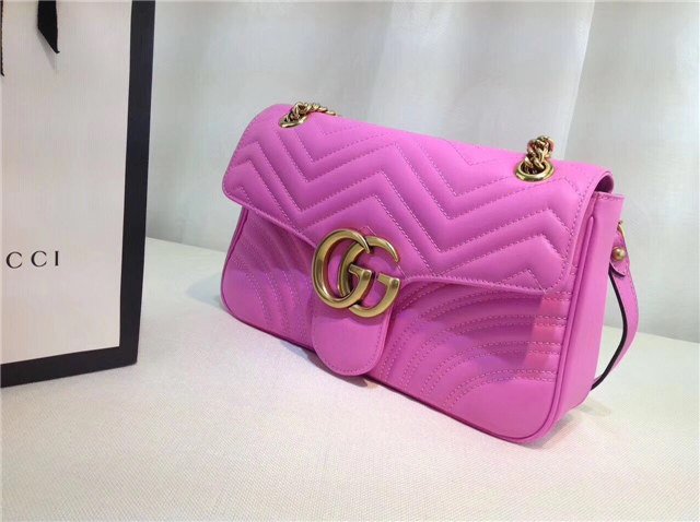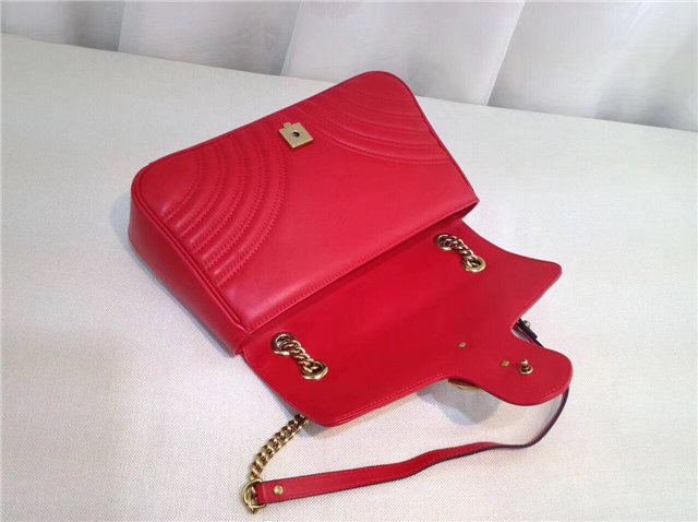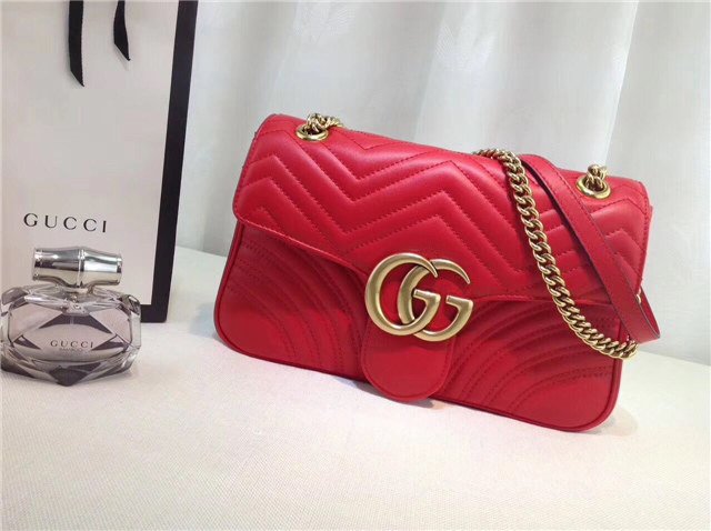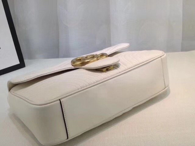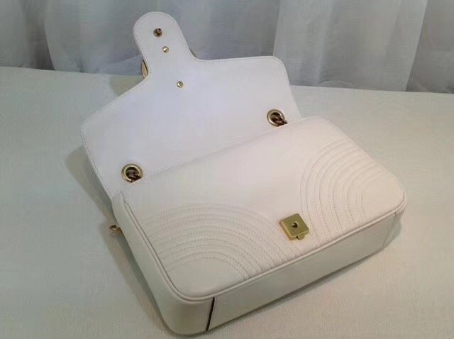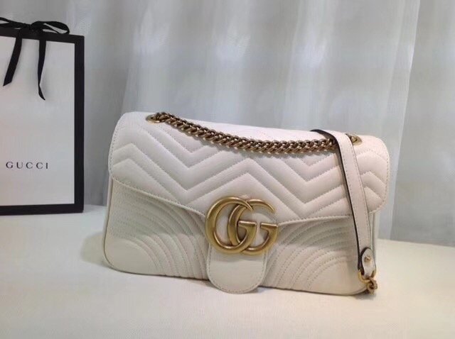 The Large GG Marmont chain shoulder bag has a softly structured shape and an oversized flap closure with Double G hardware. The sliding chain strap can be worn multiple ways, changing between a shoulder and a top handle bag. Made in matelasse chevron leather with a heart on the back.