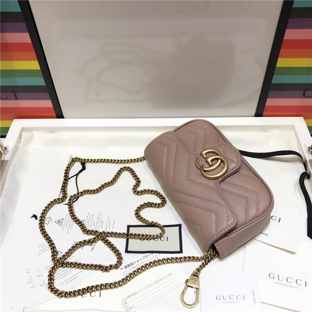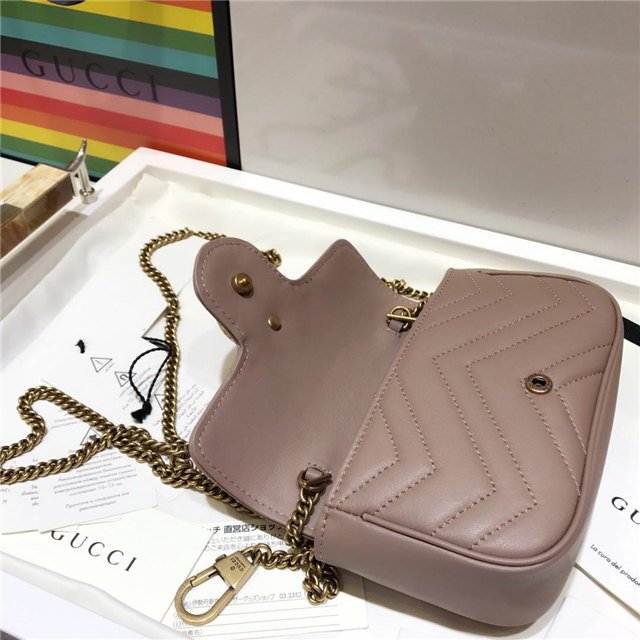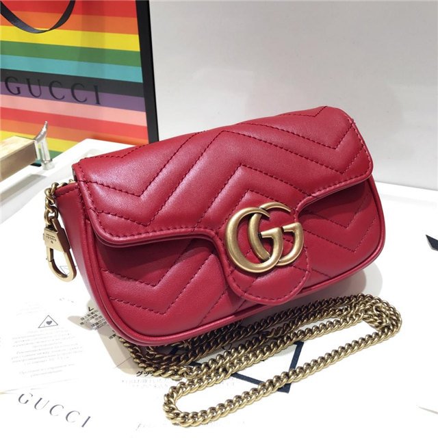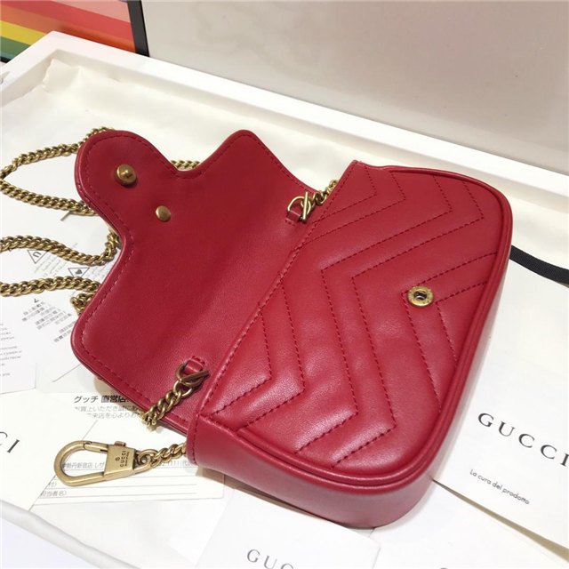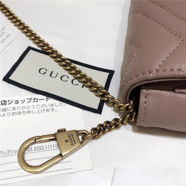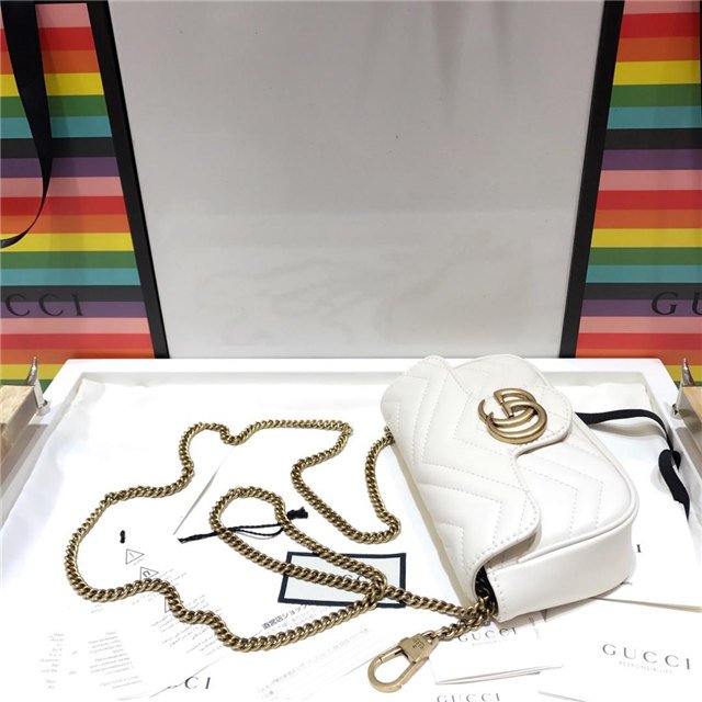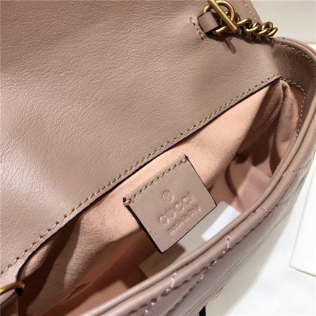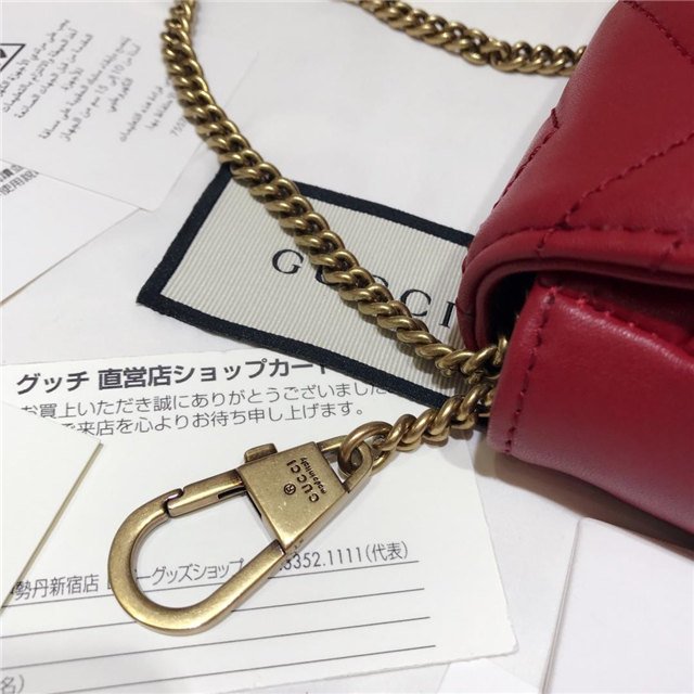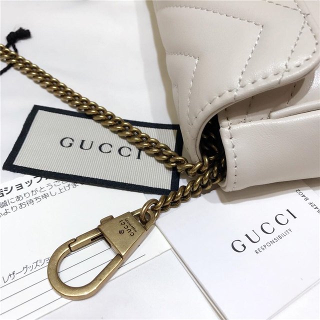 The GG Marmont mini bag has a key ring that can be used to attach it to a separate larger bag. It has a softly structured shape and a flap closure with Double G hardware. The hardware is inspired by an archival design from the ’70s. Made in matelasse chevron leather.