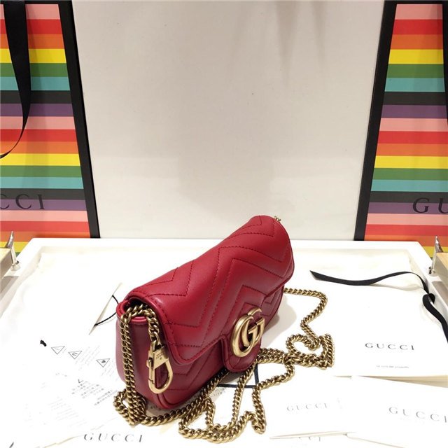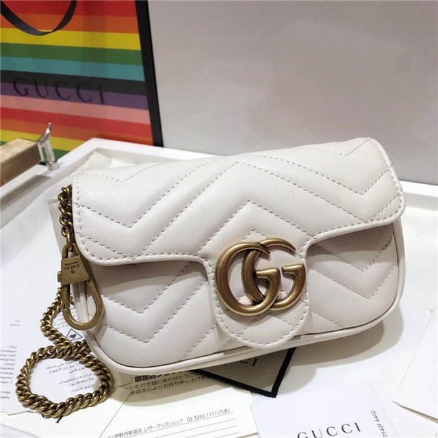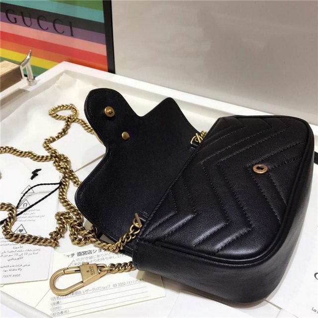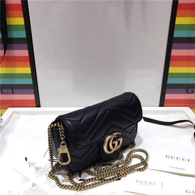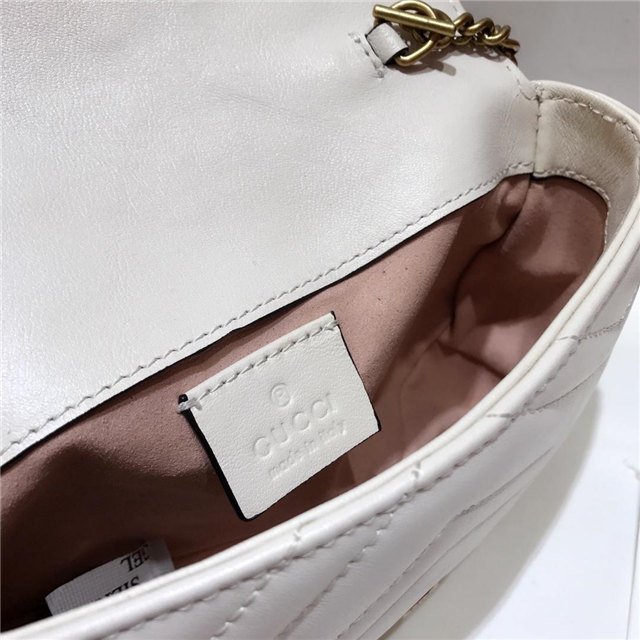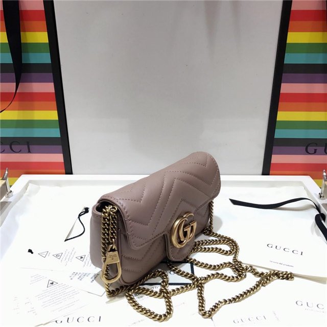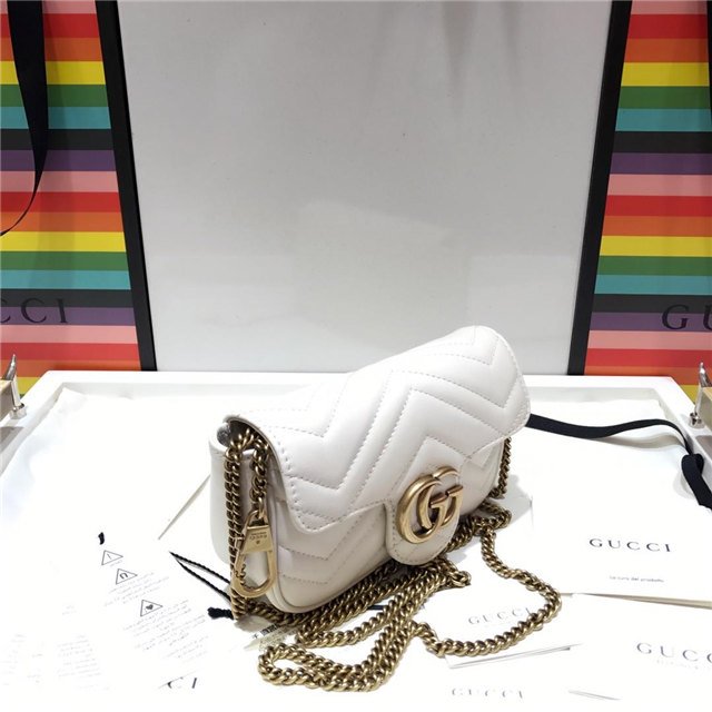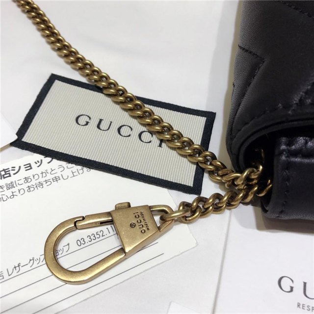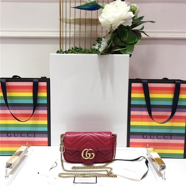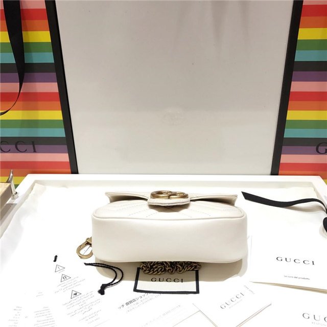 The GG Marmont mini bag has a key ring that can be used to attach it to a separate larger bag. It has a softly structured shape and a flap closure with Double G hardware. The hardware is inspired by an archival design from the ’70s. Made in matelasse chevron leather.