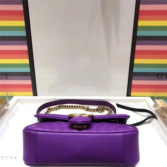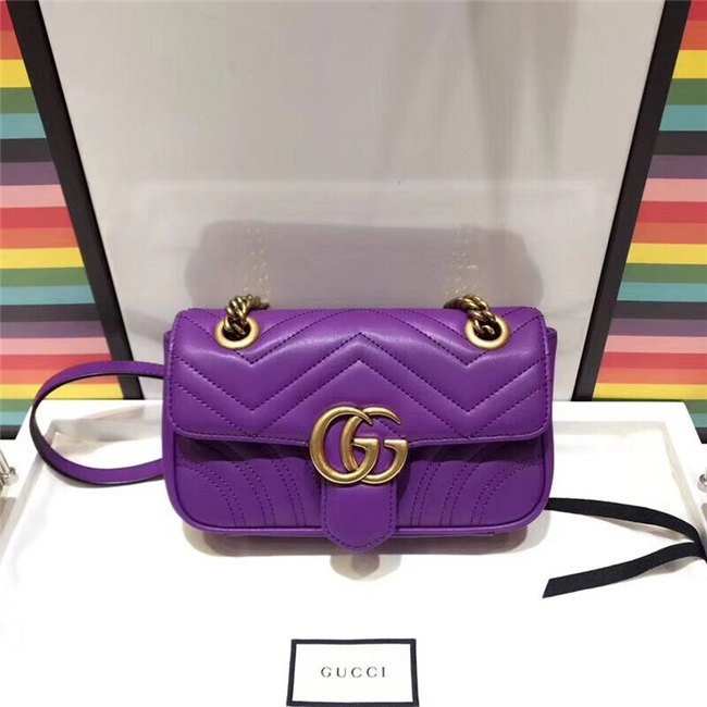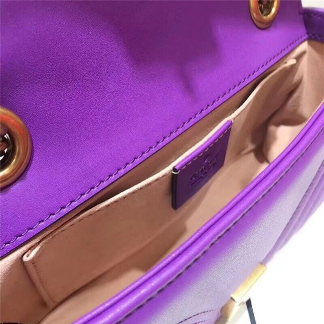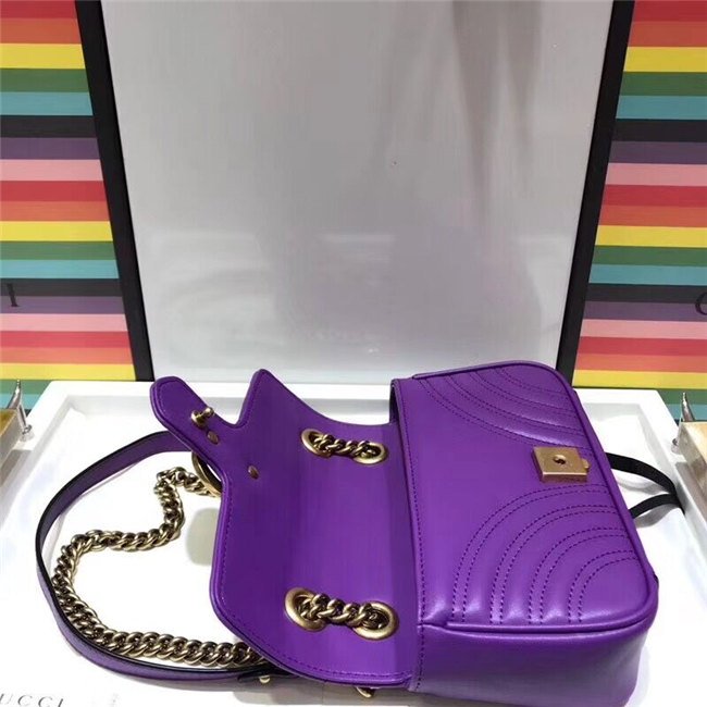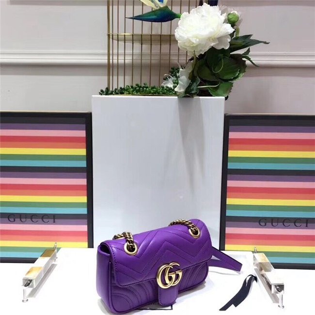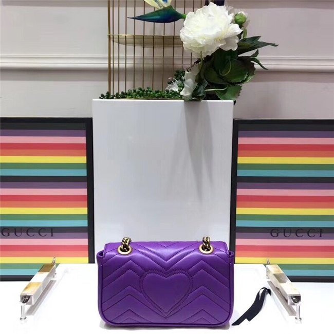 The small GG Marmont chain shoulder bag has a softly structured shape and an oversized flap closure with Double G hardware. The sliding chain strap can be worn multiple ways, changing between a shoulder and a top handle bag. Made in matelasse chevron leather with a heart on the back.