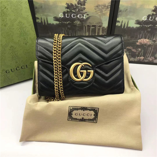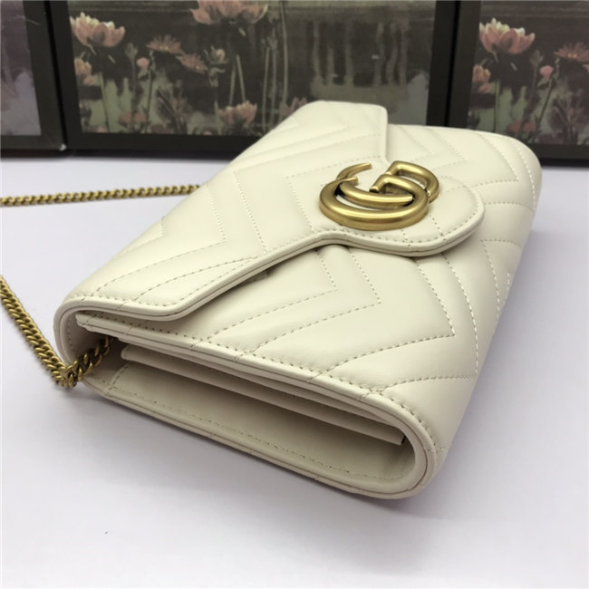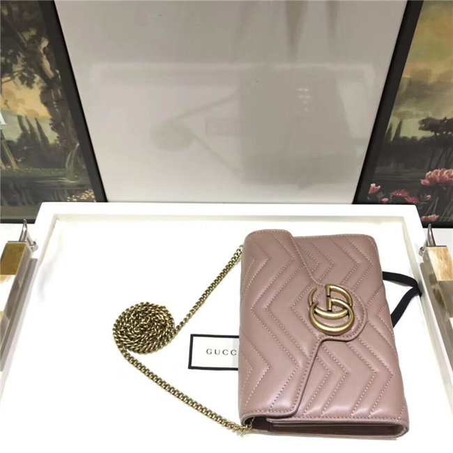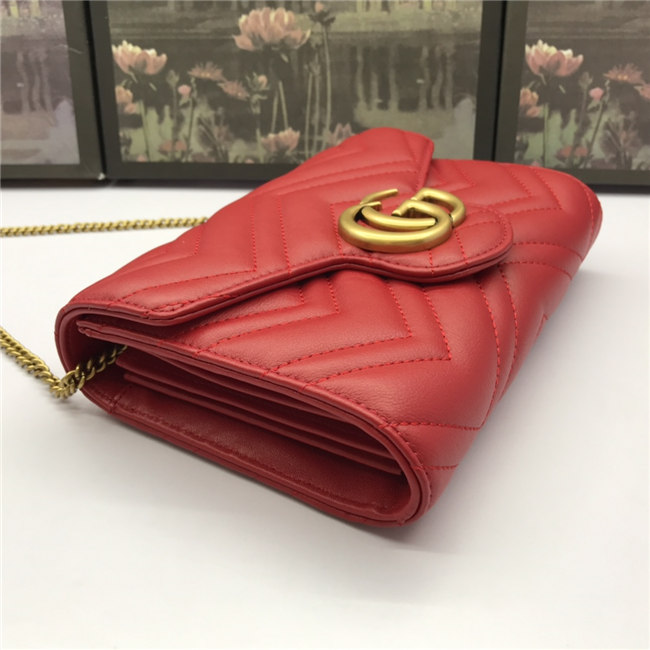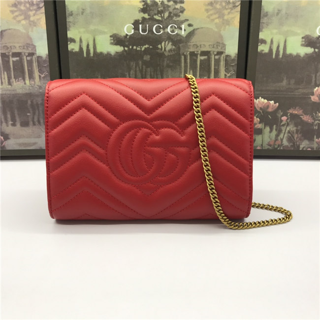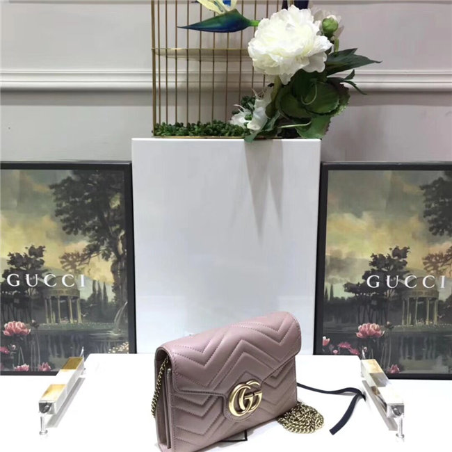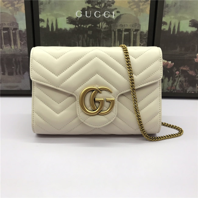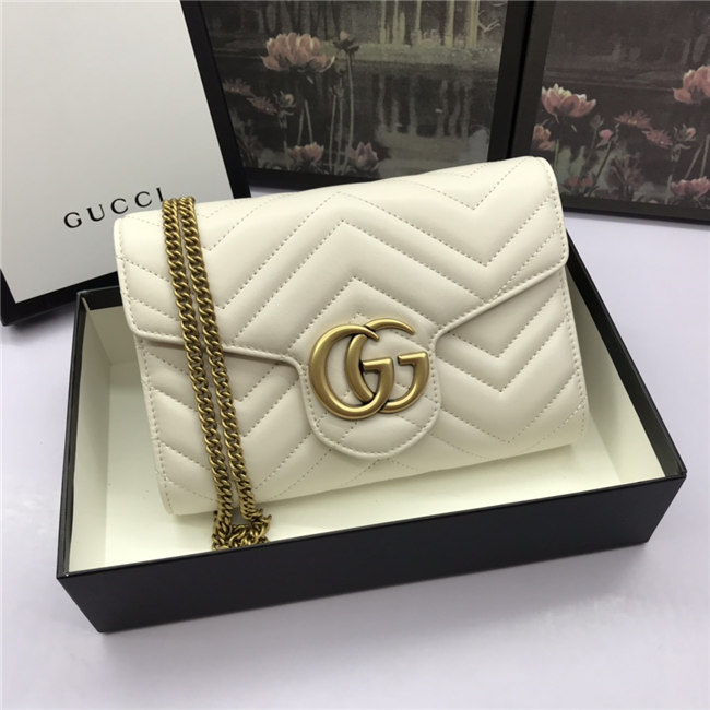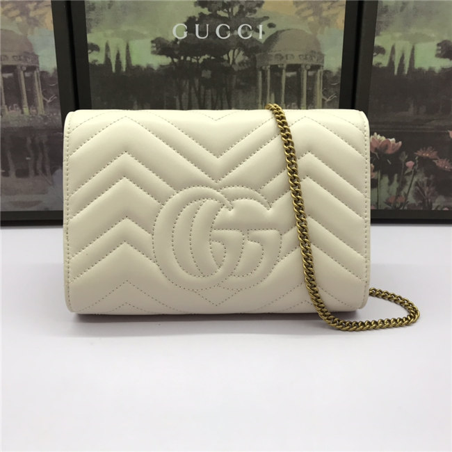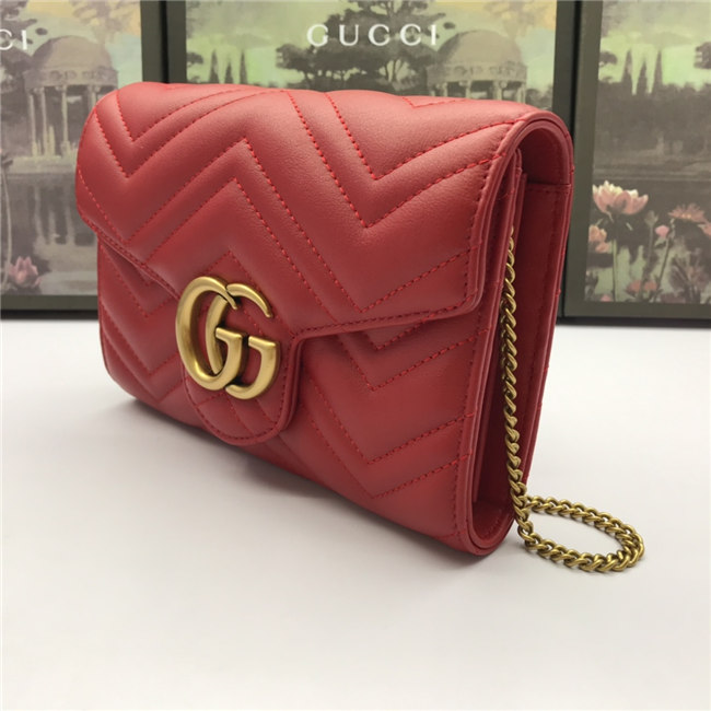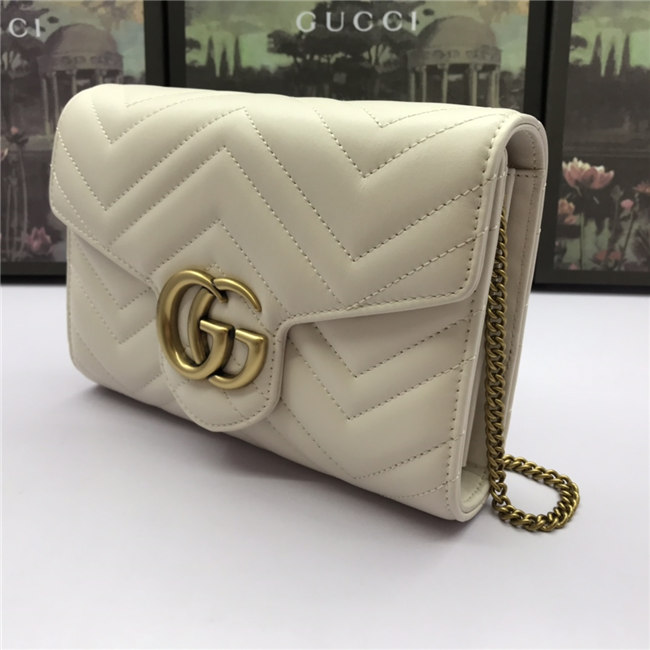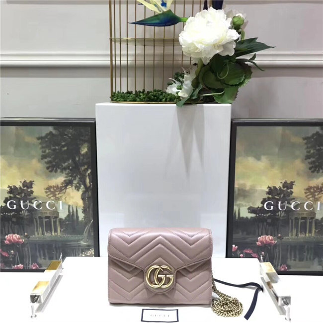 The GG Marmont chain mini bag has a softly structured shape and a flap closure with Double G hardware. The hardware is inspired by an archival desLS