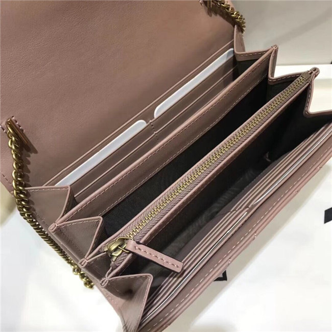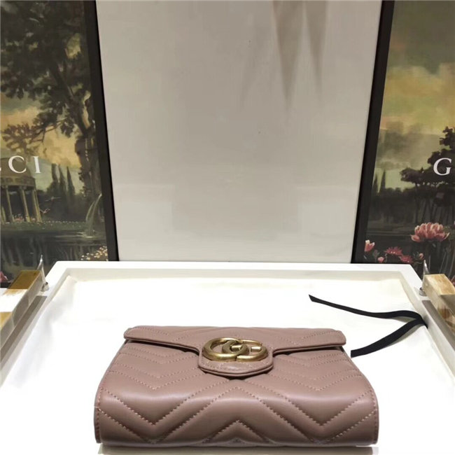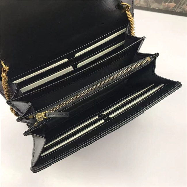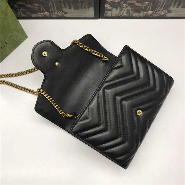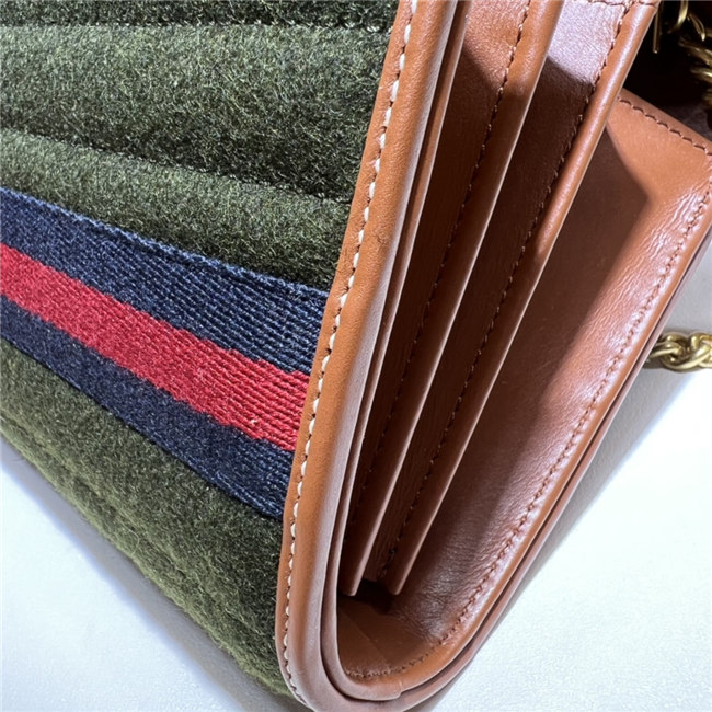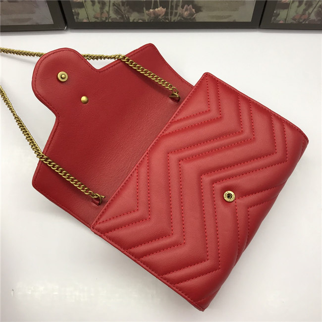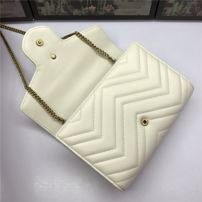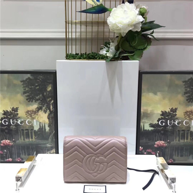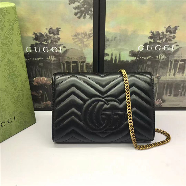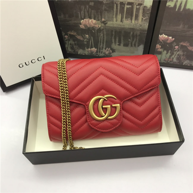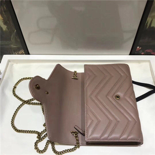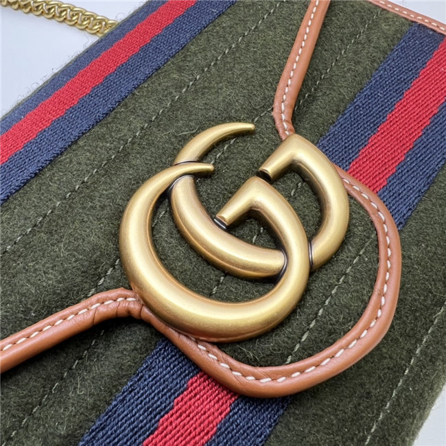 The GG Marmont chain mini bag has a softly structured shape and a flap closure with Double G hardware. The hardware is inspired by an archival desLS