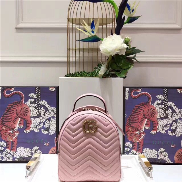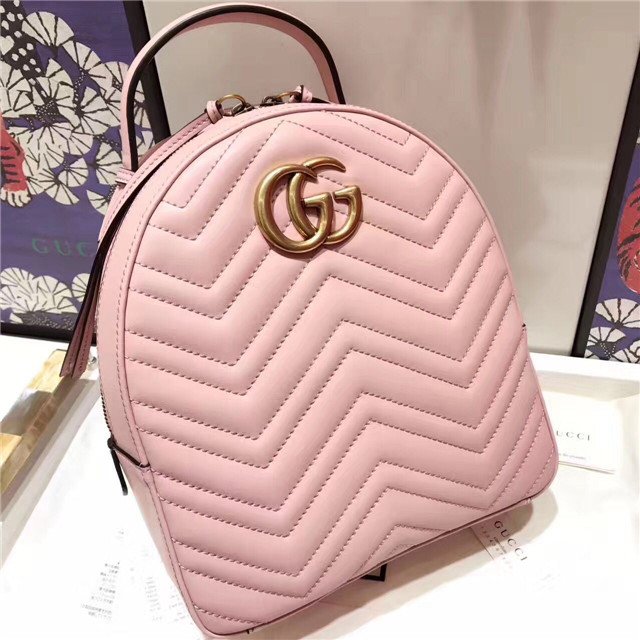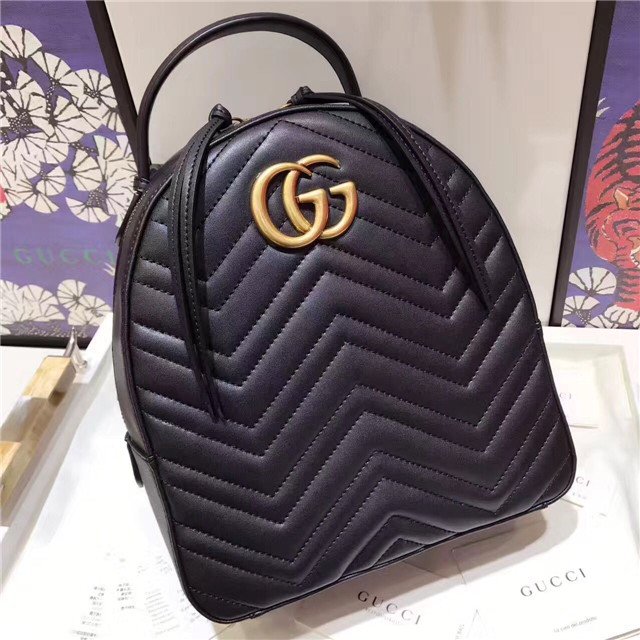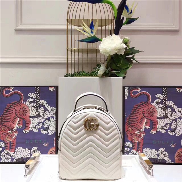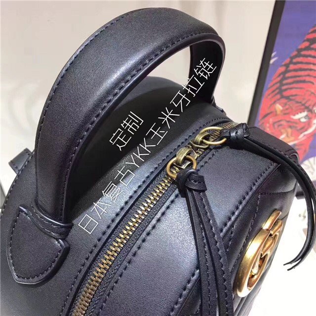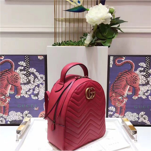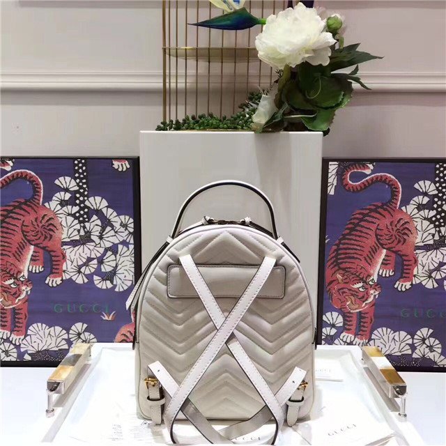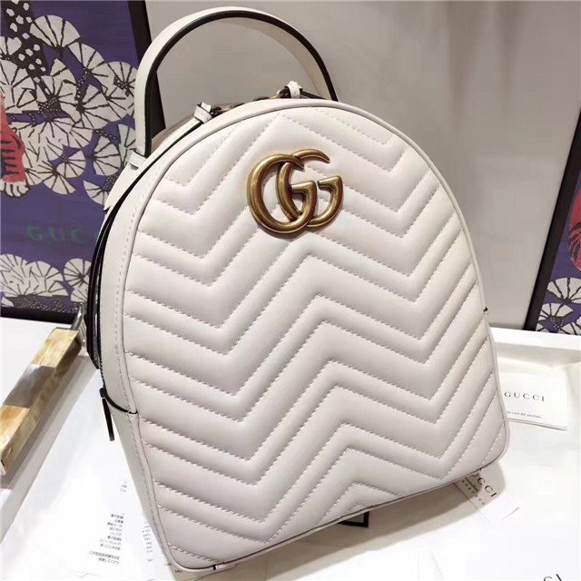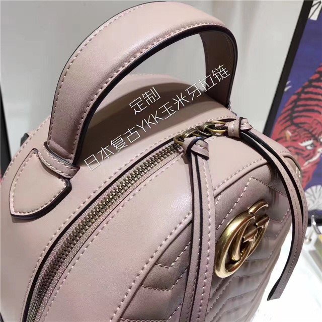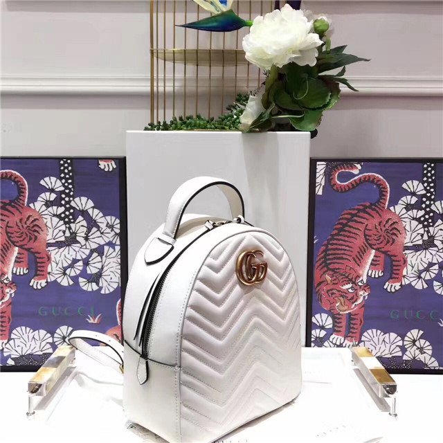 The GG Marmont backpack has a softly structured shape and Double G hardware, inspired by an archival design. The double zip leather pulls are exaggerated and add an unexpected touch. Made in soft matelasse chevron quilted leather. Retail price $1860.00