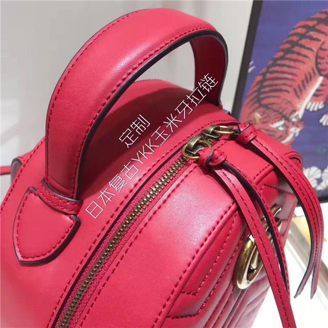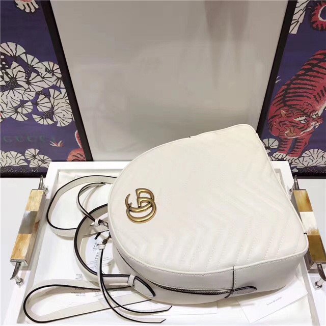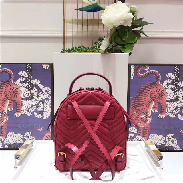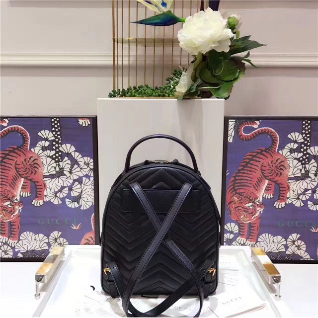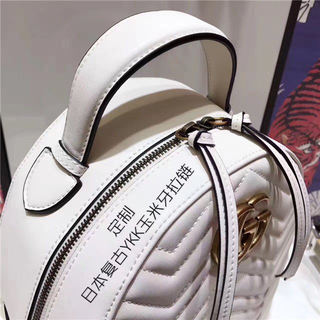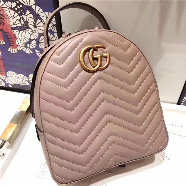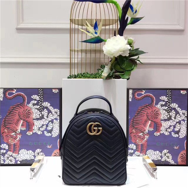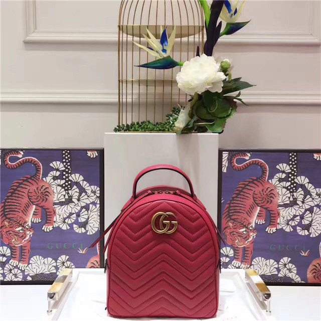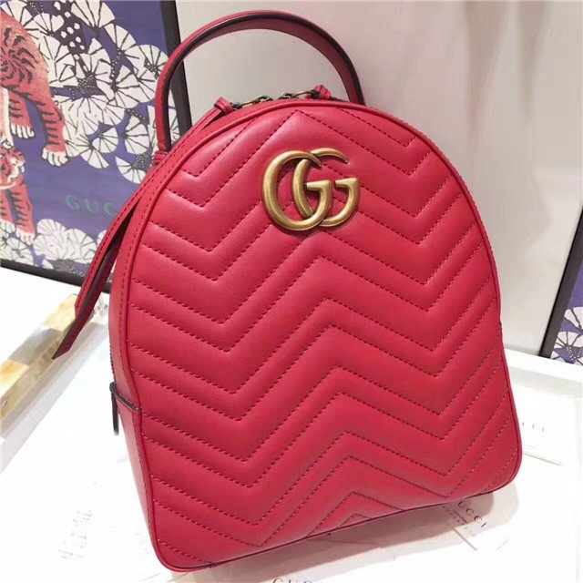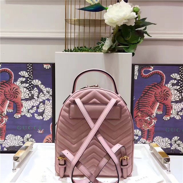The GG Marmont backpack has a softly structured shape and Double G hardware, inspired by an archival design. The double zip leather pulls are exaggerated and add an unexpected touch. Made in soft matelasse chevron quilted leather. Retail price $1860.00