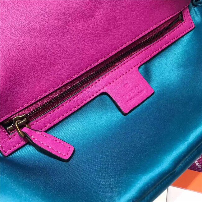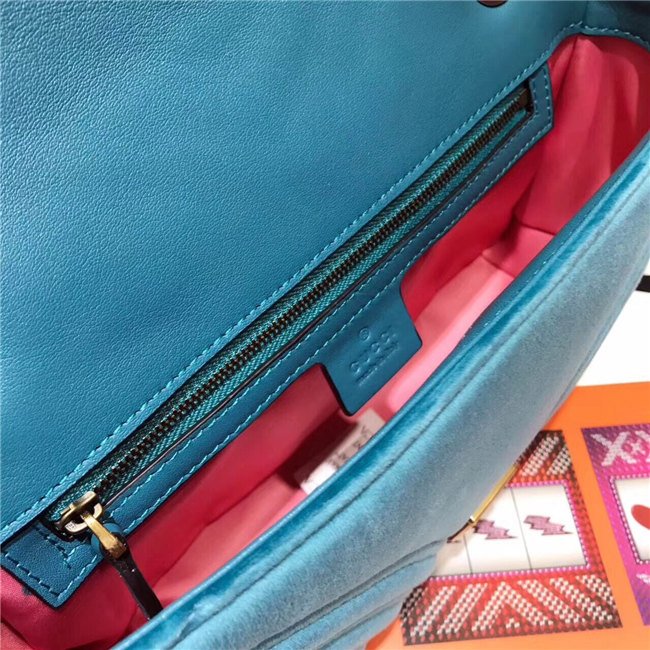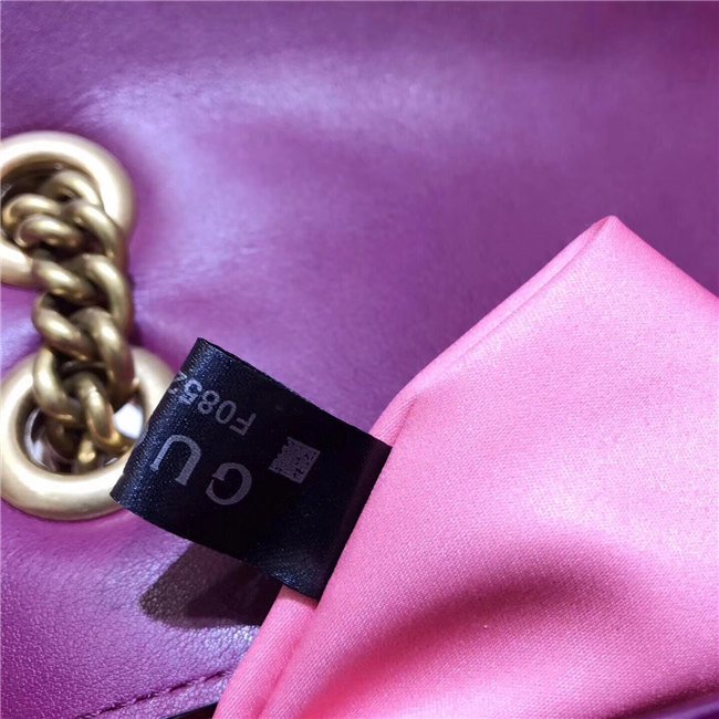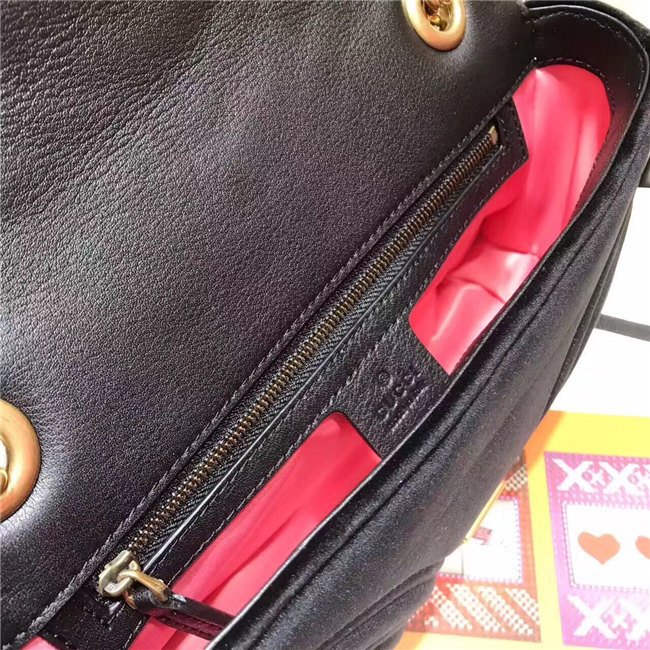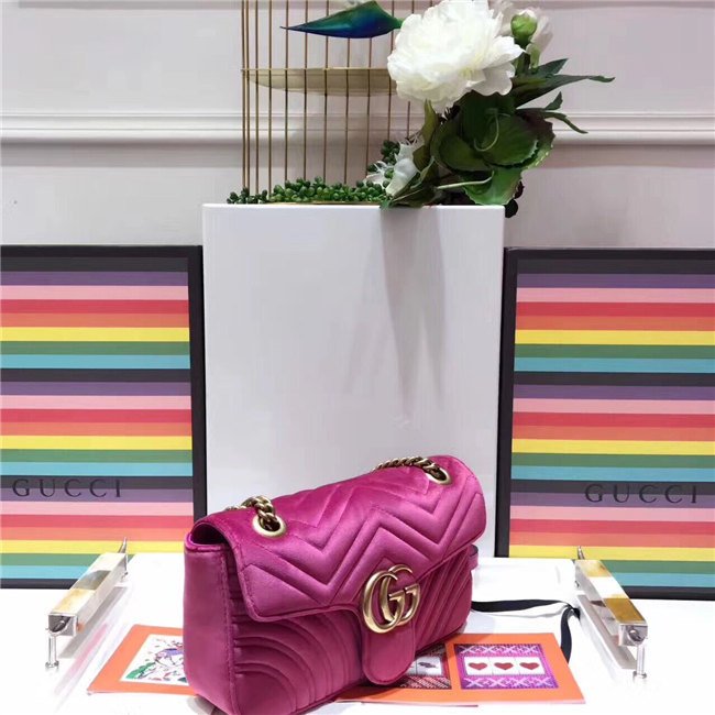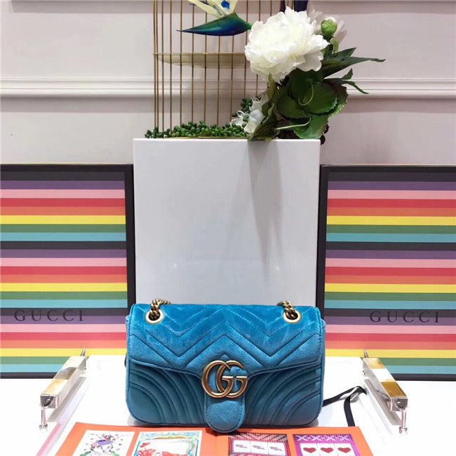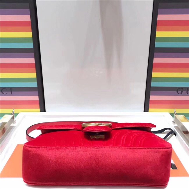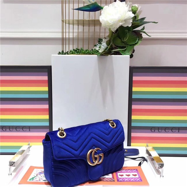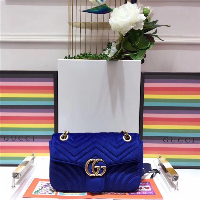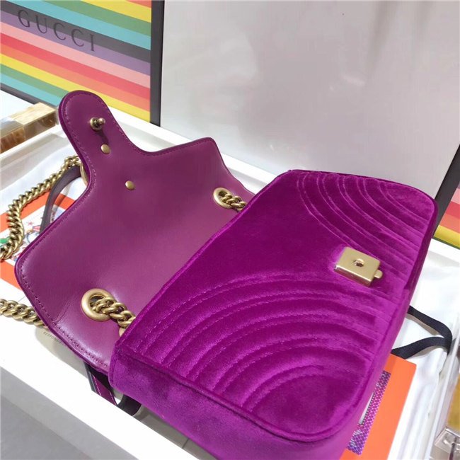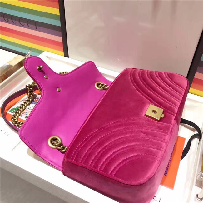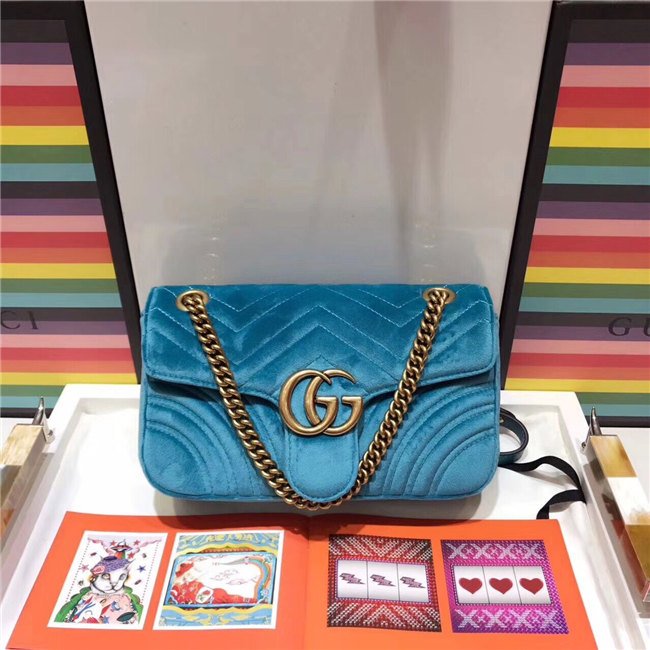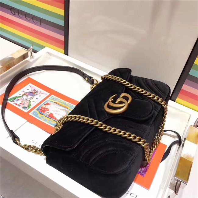 The small GG Marmont chain shoulder bag has a softly structured shape and an oversized flap closure with Double G hardware. The sliding chain strap can be worn multiple ways, changing between a shoulder and a top handle bag. Made in embroidered chevron velvet with a heart on the back.