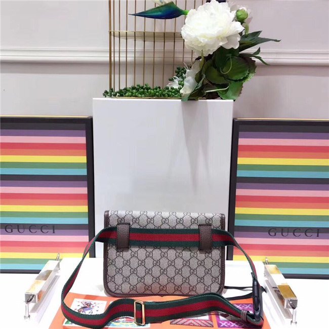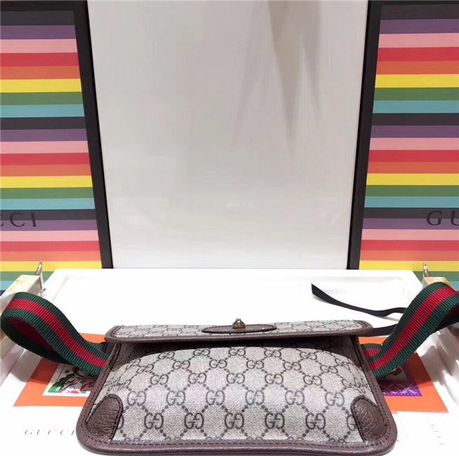 The belt bag in GG Supreme has a retro influenced design. Trimmed with leather, the style is meant to be worn along the waist, securing with a Web strap and buckle closure.