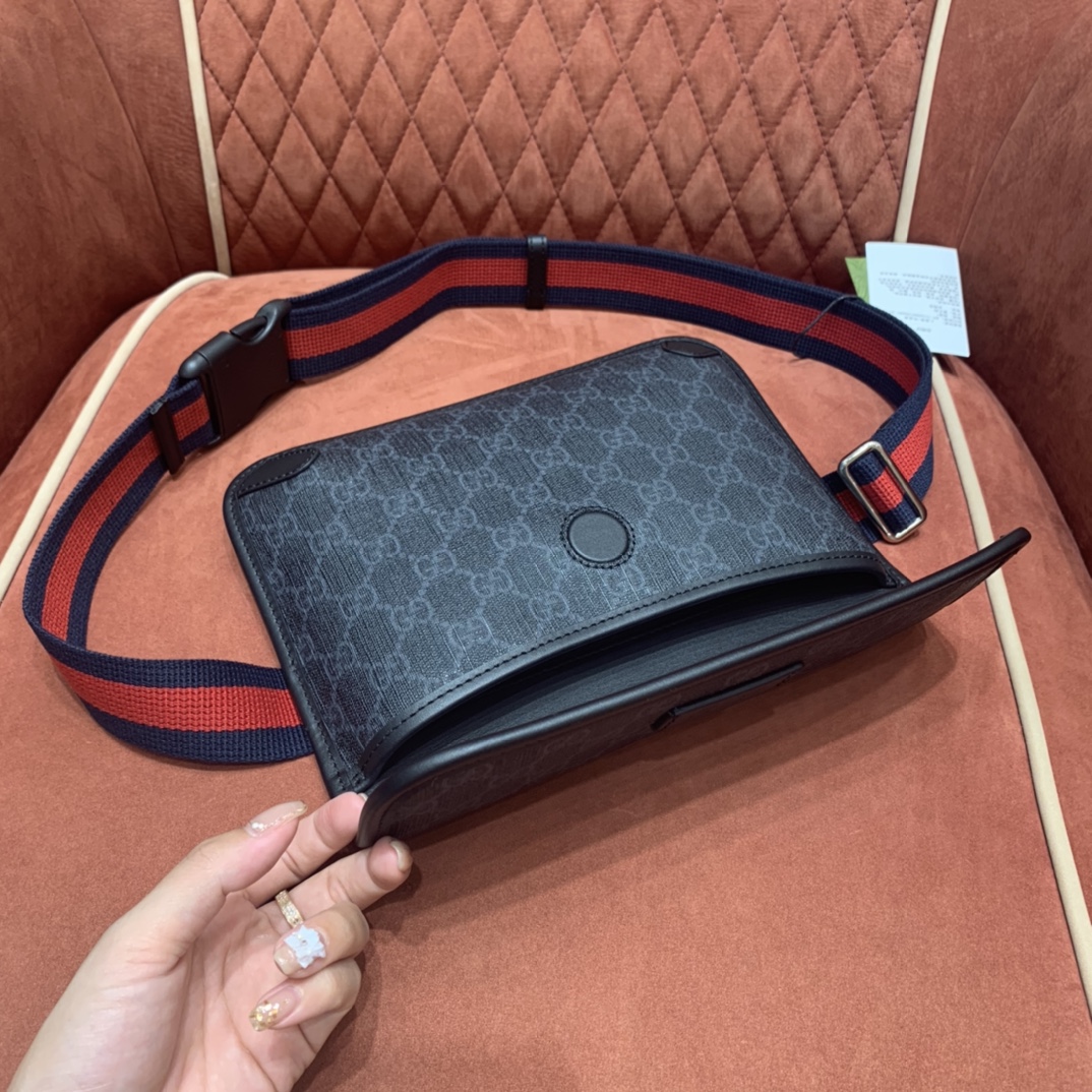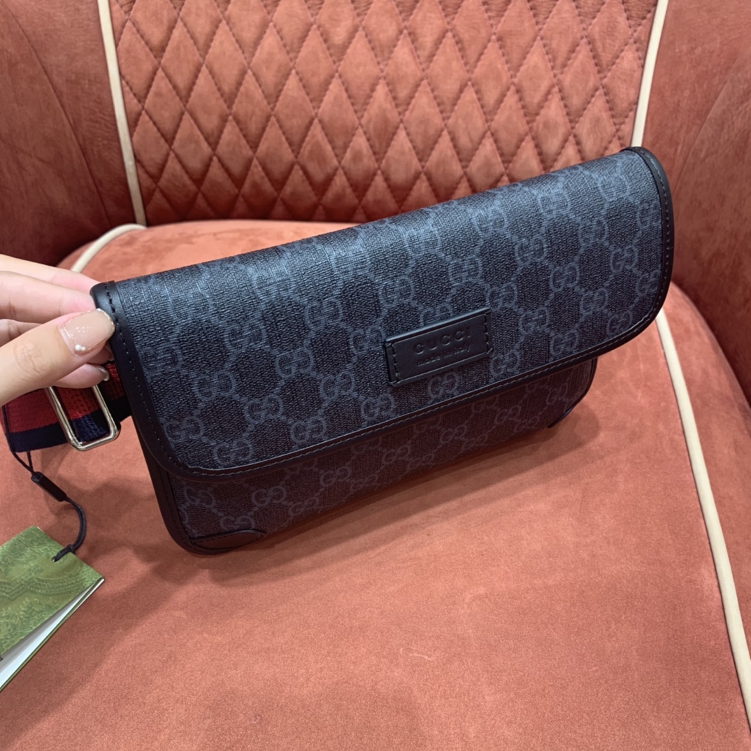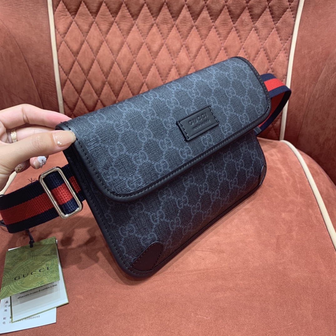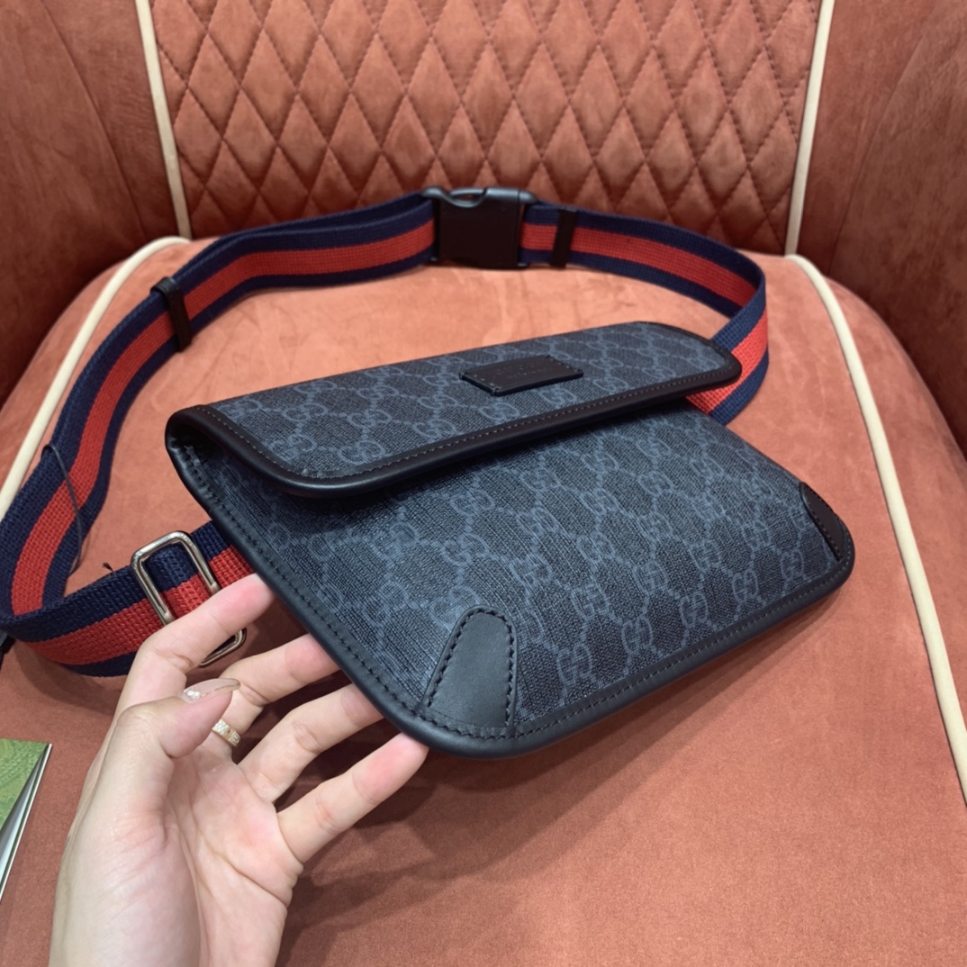 Presented in a black and grey combination, the GG motif takes on a contemporary look in a slim belt bag.