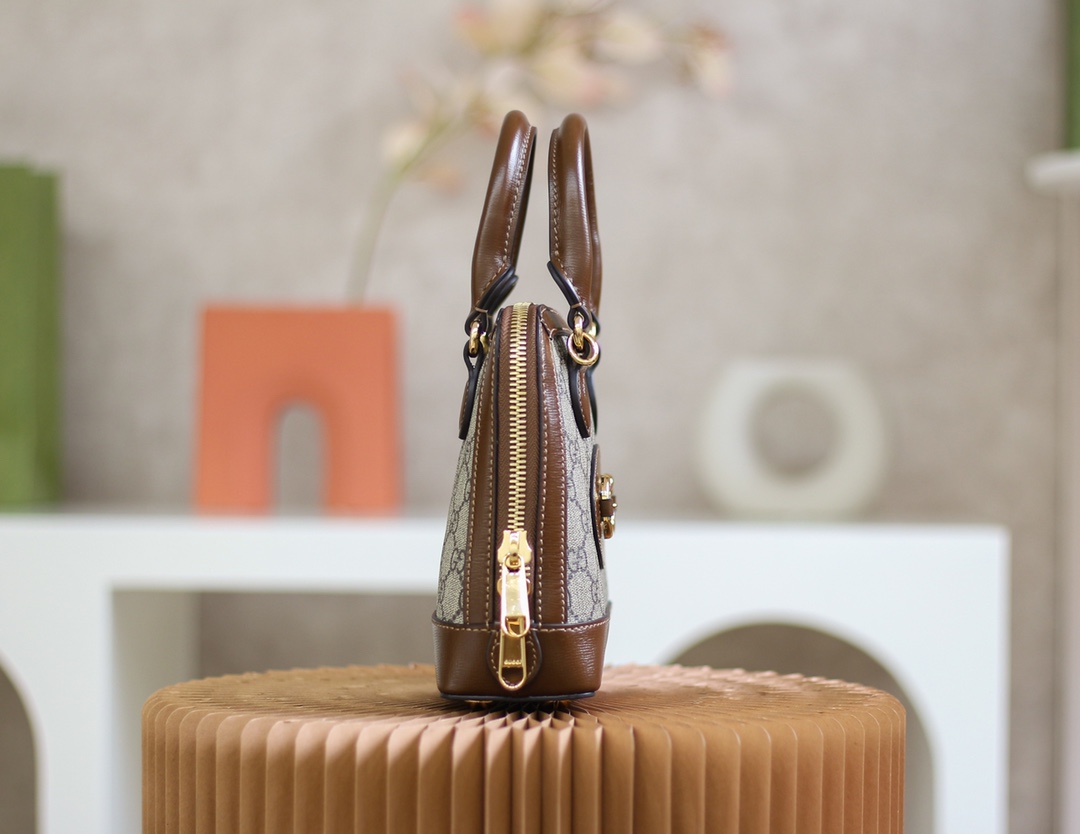 A new introduction to the Gucci Horsebit 1955 line, the mini top handle is crafted from the House’s monogram canvas with contrasting brown leather details. The collection unifies details first introduced on the original bag that inspired the line from over six decades ago with a modern spirit, highlighting the Horsebit. Part of Gucci’s genetic code, the double ring and bar design has been established as one of the most distinctive elements among the House symbols borrowed from the equestrian world.