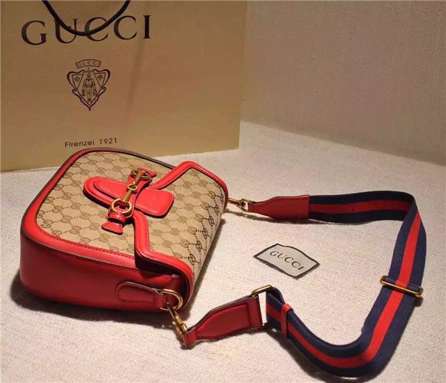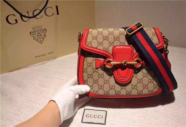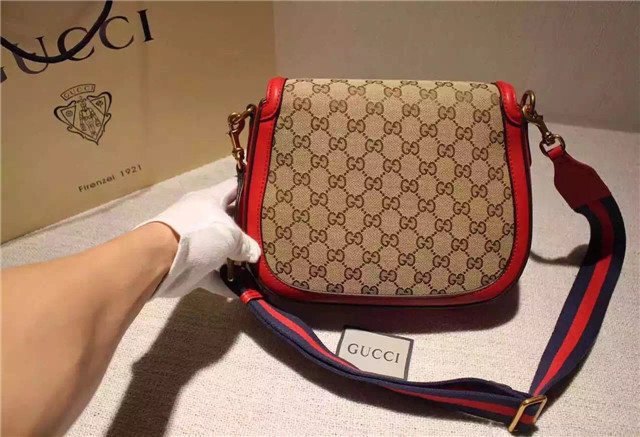The Lady Web shoulder bag in our Original GG canvas with leather trim and a web nylon shoulder strap.