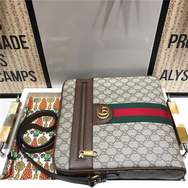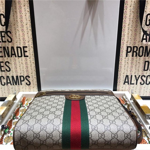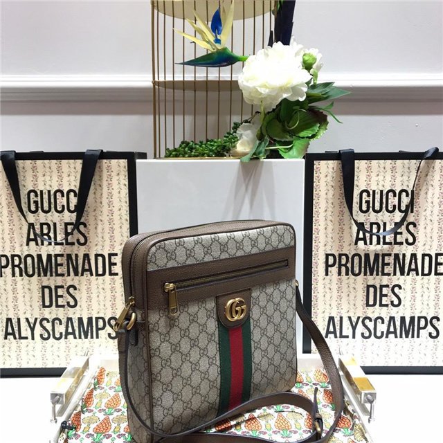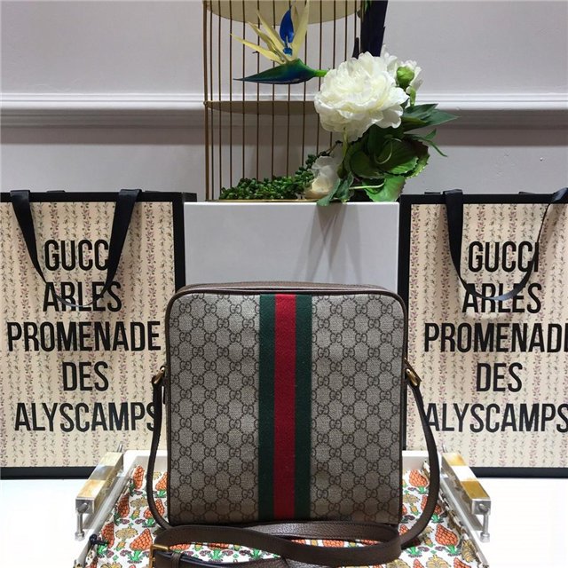 A classic combination of the House”s most recognizable elements—the GG motif and Web stripe—the world of Ophidia continues to evolve, incorporating new shapes and silhouettes. A versatile design originally inspired by mail carriers, postmen, and bicycle couriers, the messenger bag became a popular item in ”80s urban streetwear. Here, the crossbody bag is crafted in GG Supreme canvas trimmed with textured leather and topped with Double G hardware.