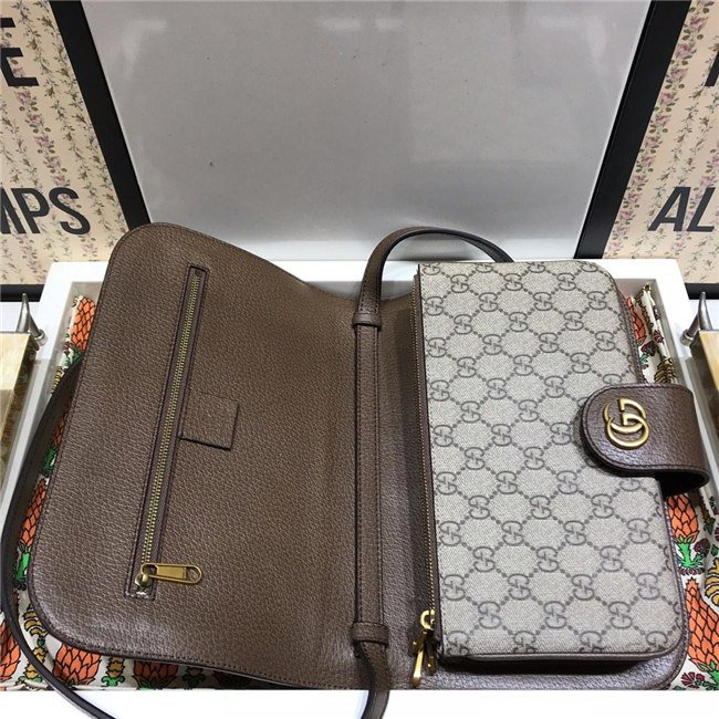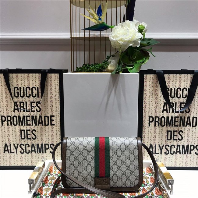 A classic combination of the House”s most recognizable elements—the GG motif and Web stripe—the world of Ophidia continues to evolve, incorporating new shapes and silhouettes. A versatile shape originally inspired by mail carriers, postmen, and bicycle couriers, the messenger bag became a popular item in ”80s urban streetwear. Here, the crossbody bag is crafted in GG Supreme canvas trimmed with textured leather and topped with Double G hardware.