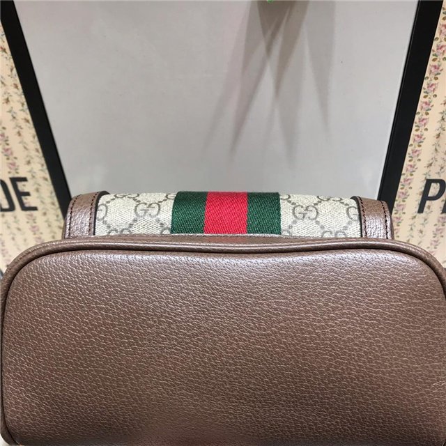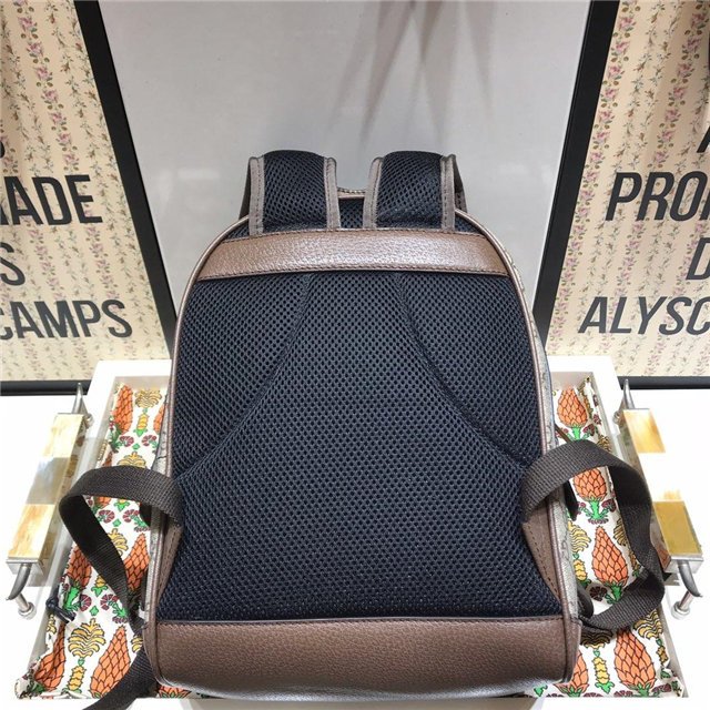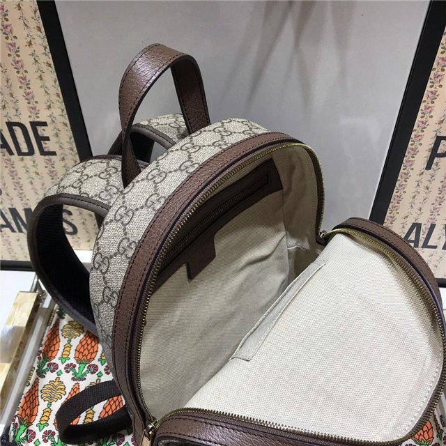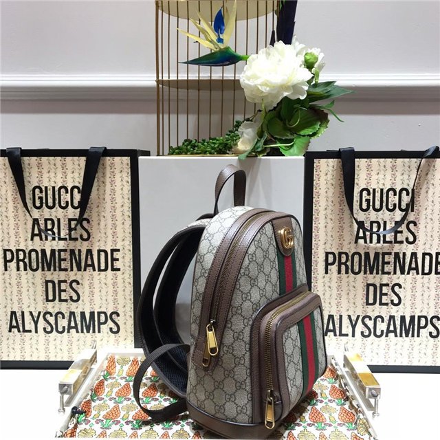 The backpack continues to be an important silhouette in the world of Gucci, offered in a variety of sizes and interpretations. Part of the ever-expanding world of Ophidia, it”s crafted in GG Supreme canvas with textured leather trim. The inlaid green and red Web detail and Double G hardware are steeped in the House”s rich history, referencing symbols incorporated in Gucci collections since the ”50s.