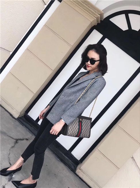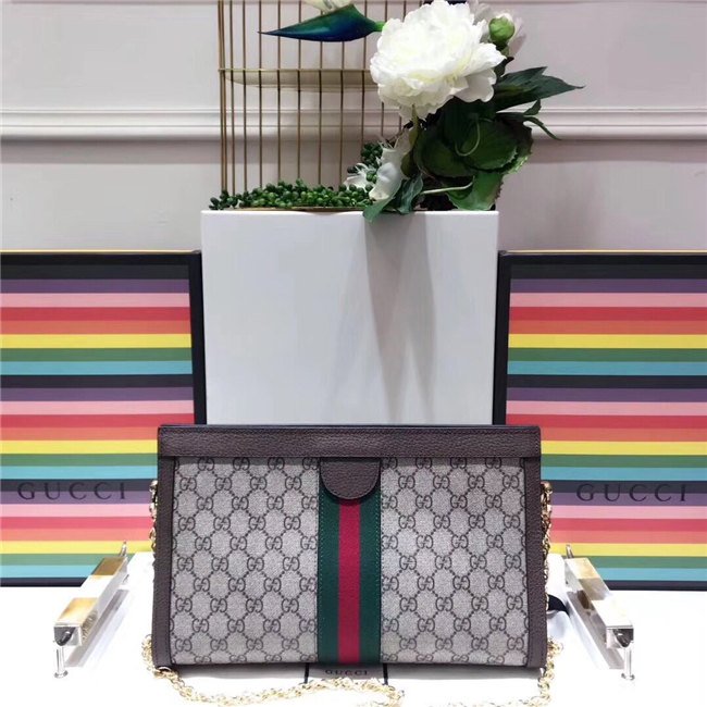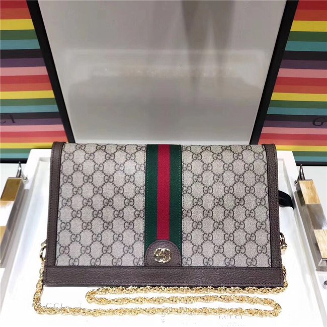Crafted in GG Supreme canvas with inlaid Web stripe detail, the chain strap shoulder bag boasts a vintage inspired design. The structured shape secures with a magnetic closure, trimmed with leather and Double G hardware: an archival detail.